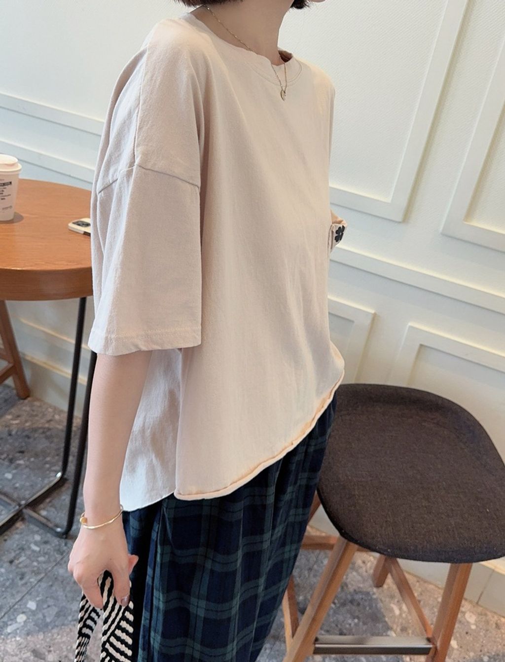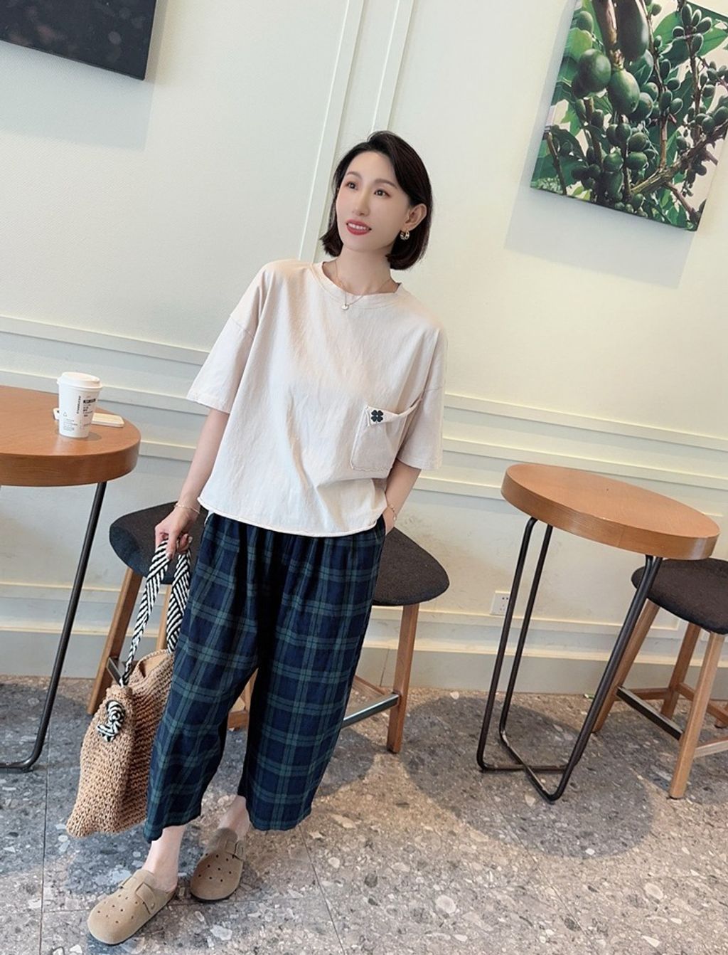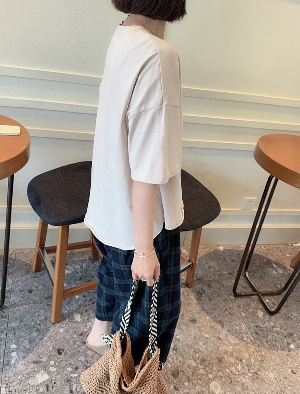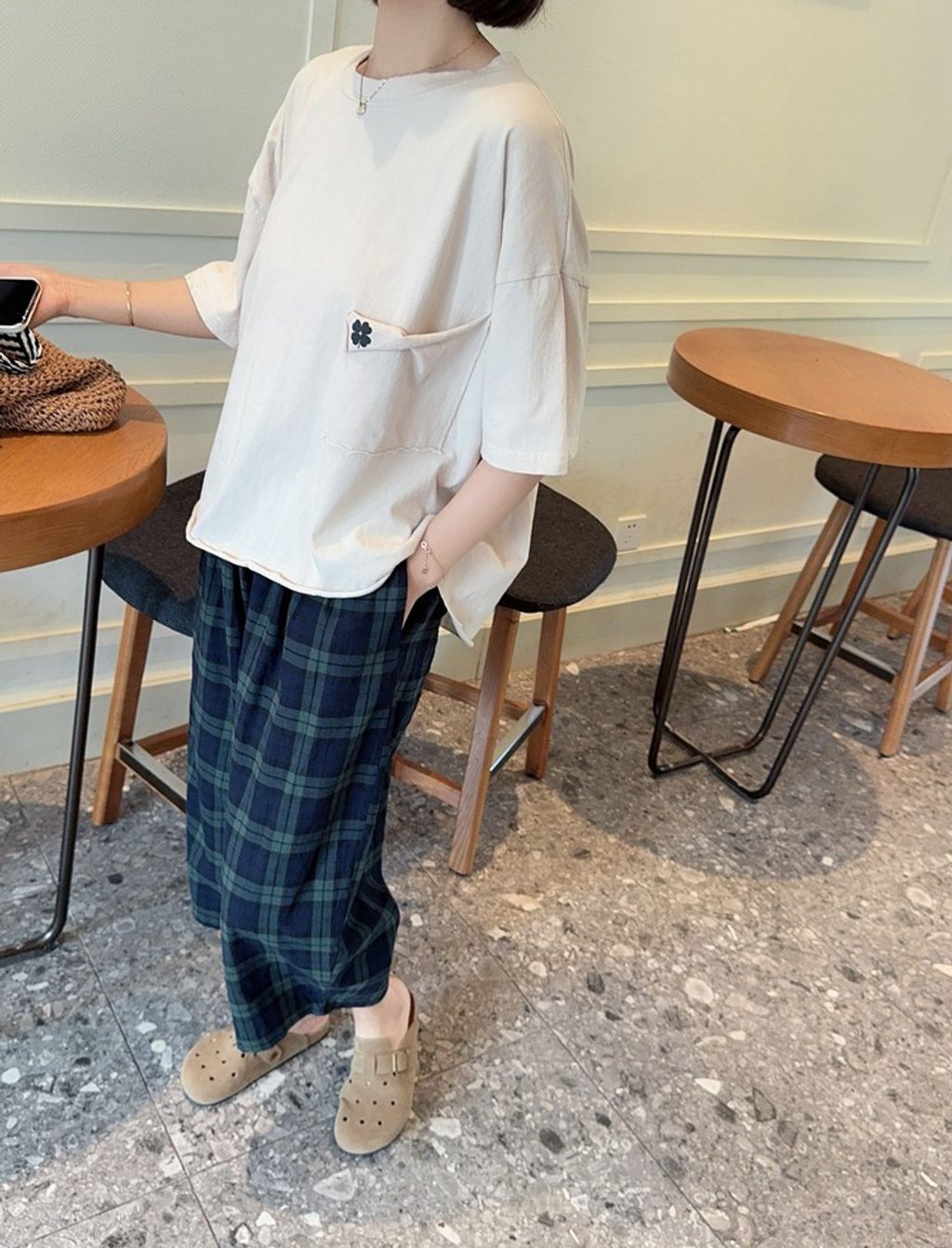 正韓 可愛幸運草口袋設計寬鬆感短T*米白*【N0731-94】