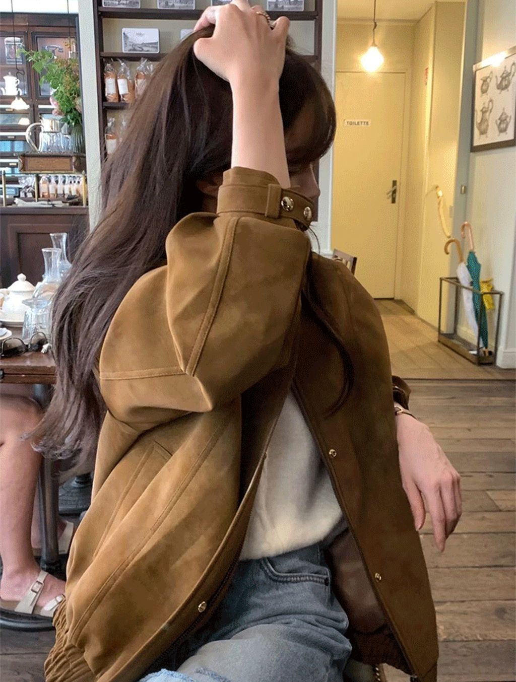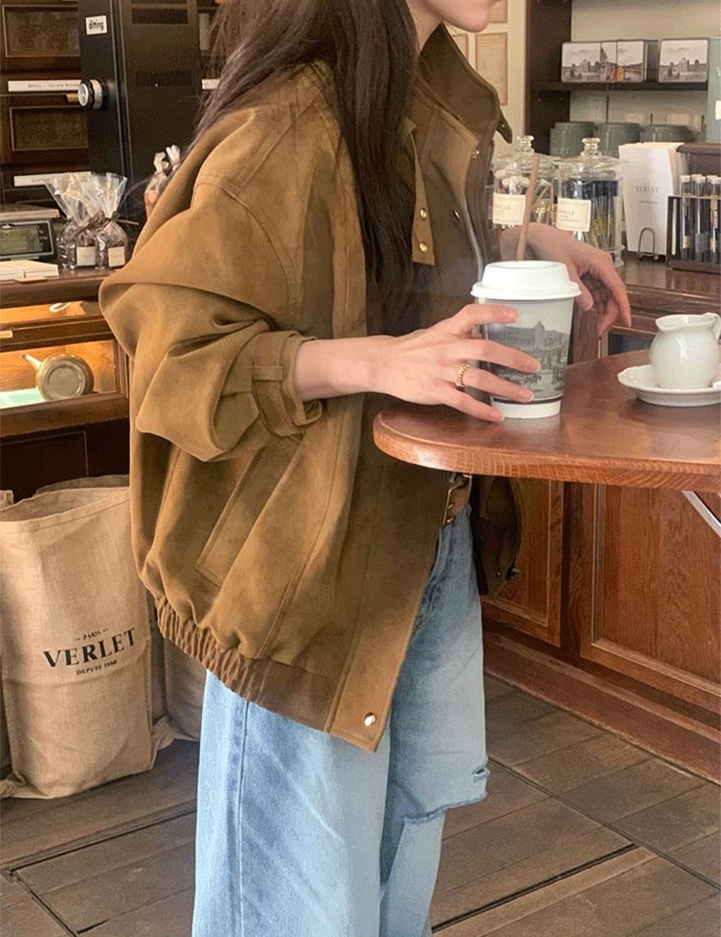 正韓 韓系個性風時尚麂皮質感外套*焦糖杏*【N1010-138】