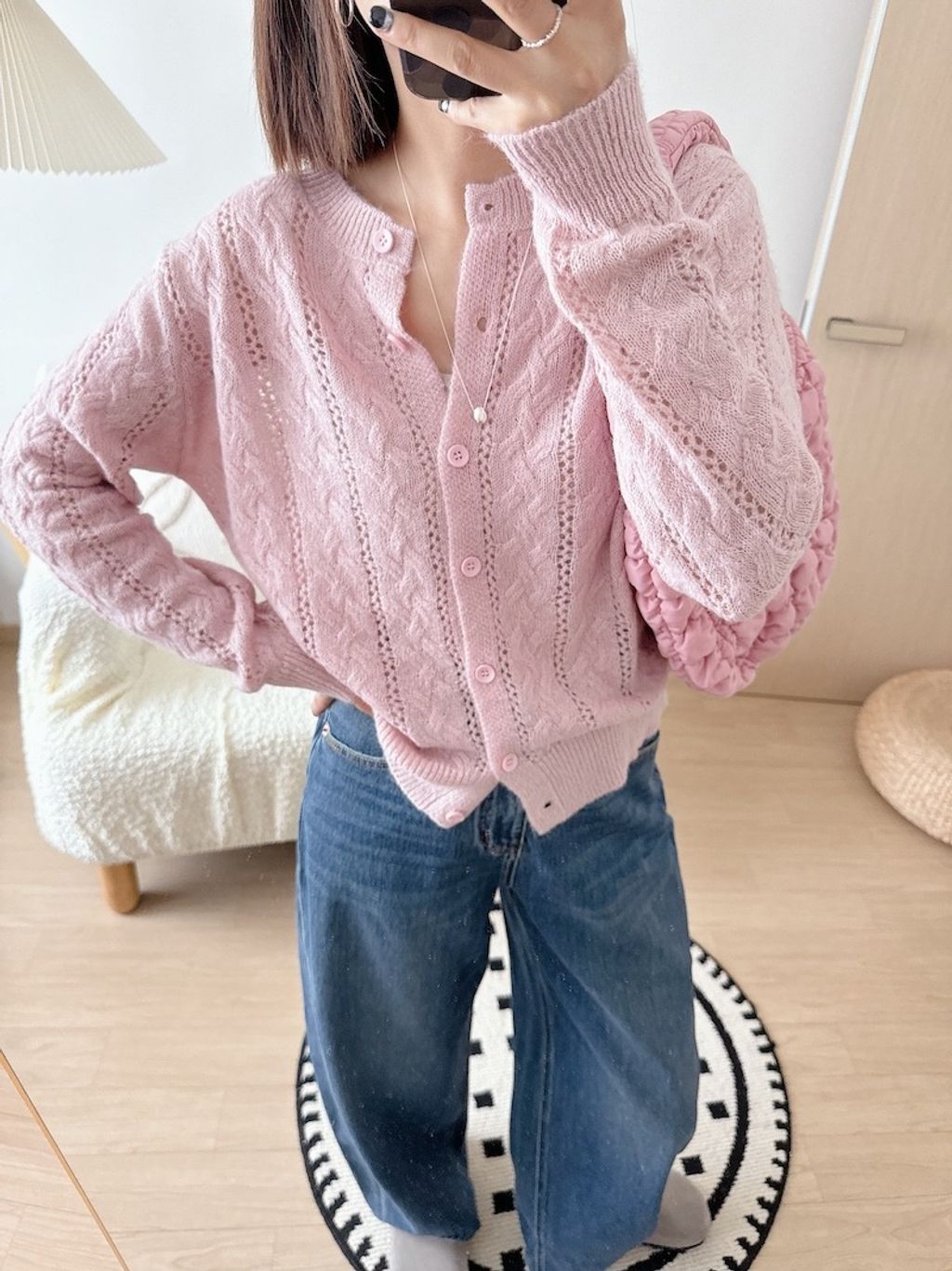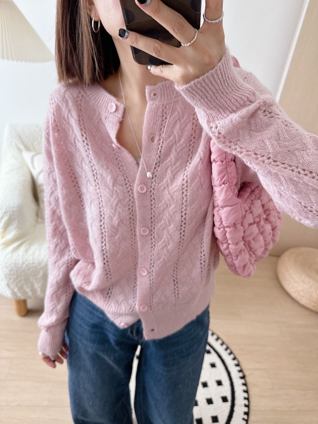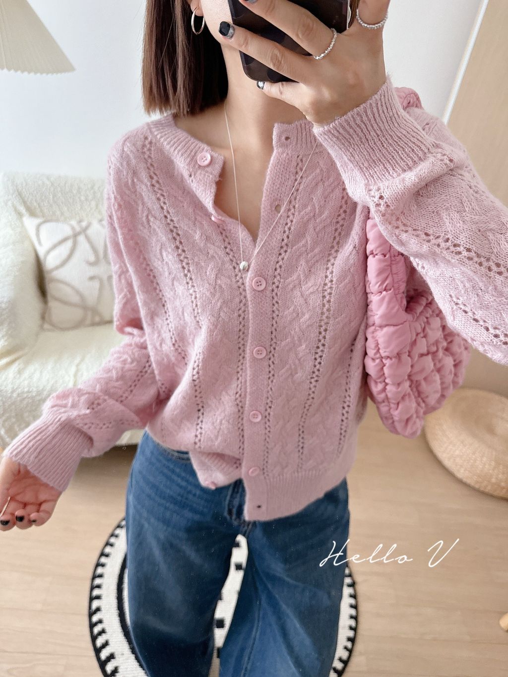 溫柔甜美鏤空麻花針織外套 *粉白灰藍*【N1010-55】
