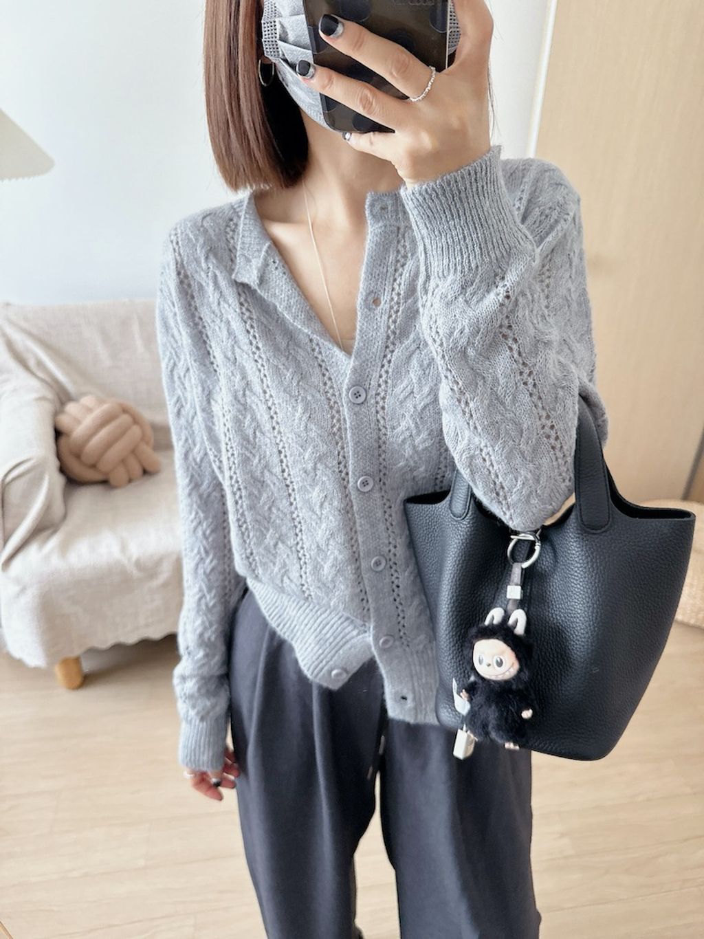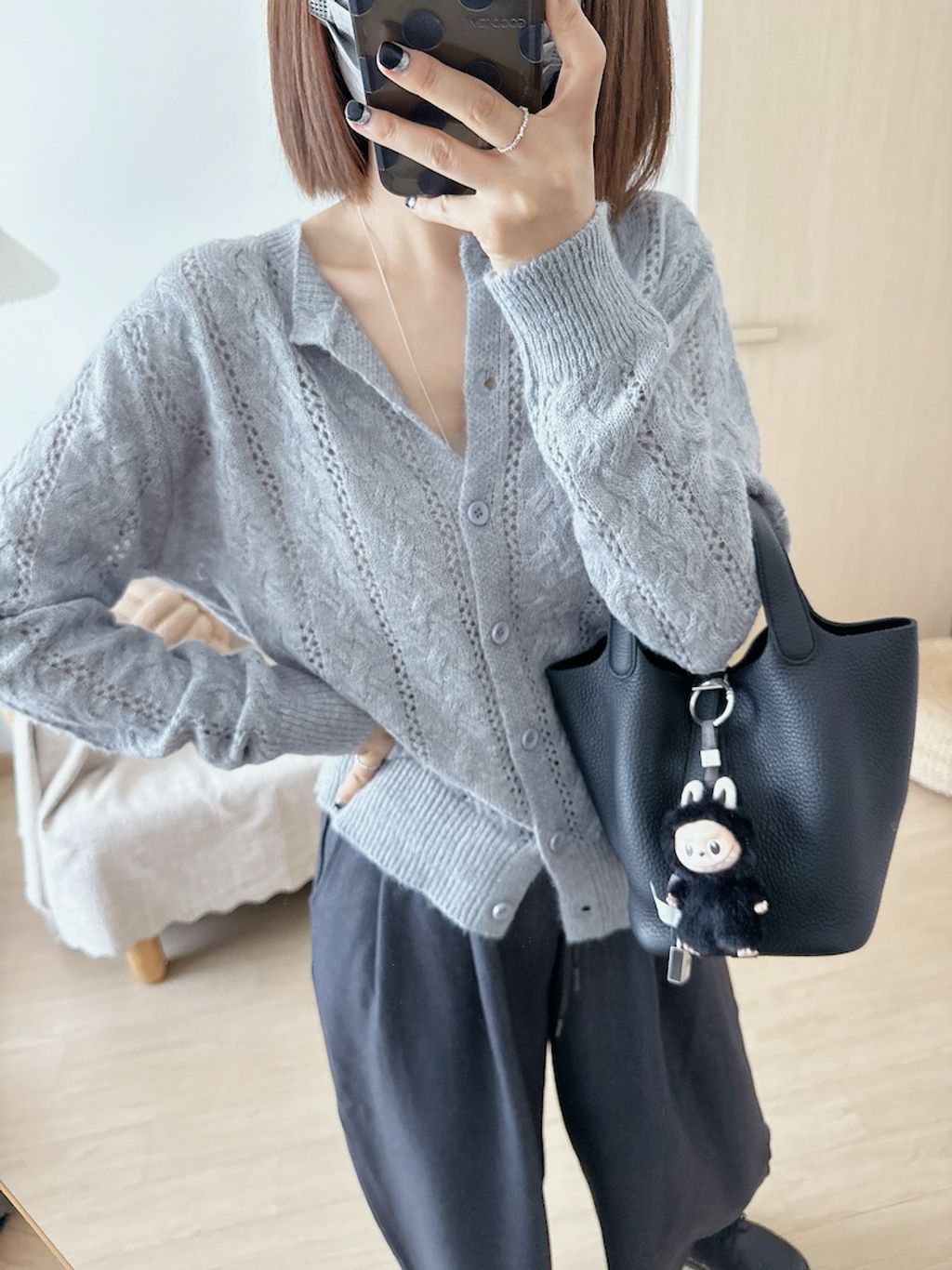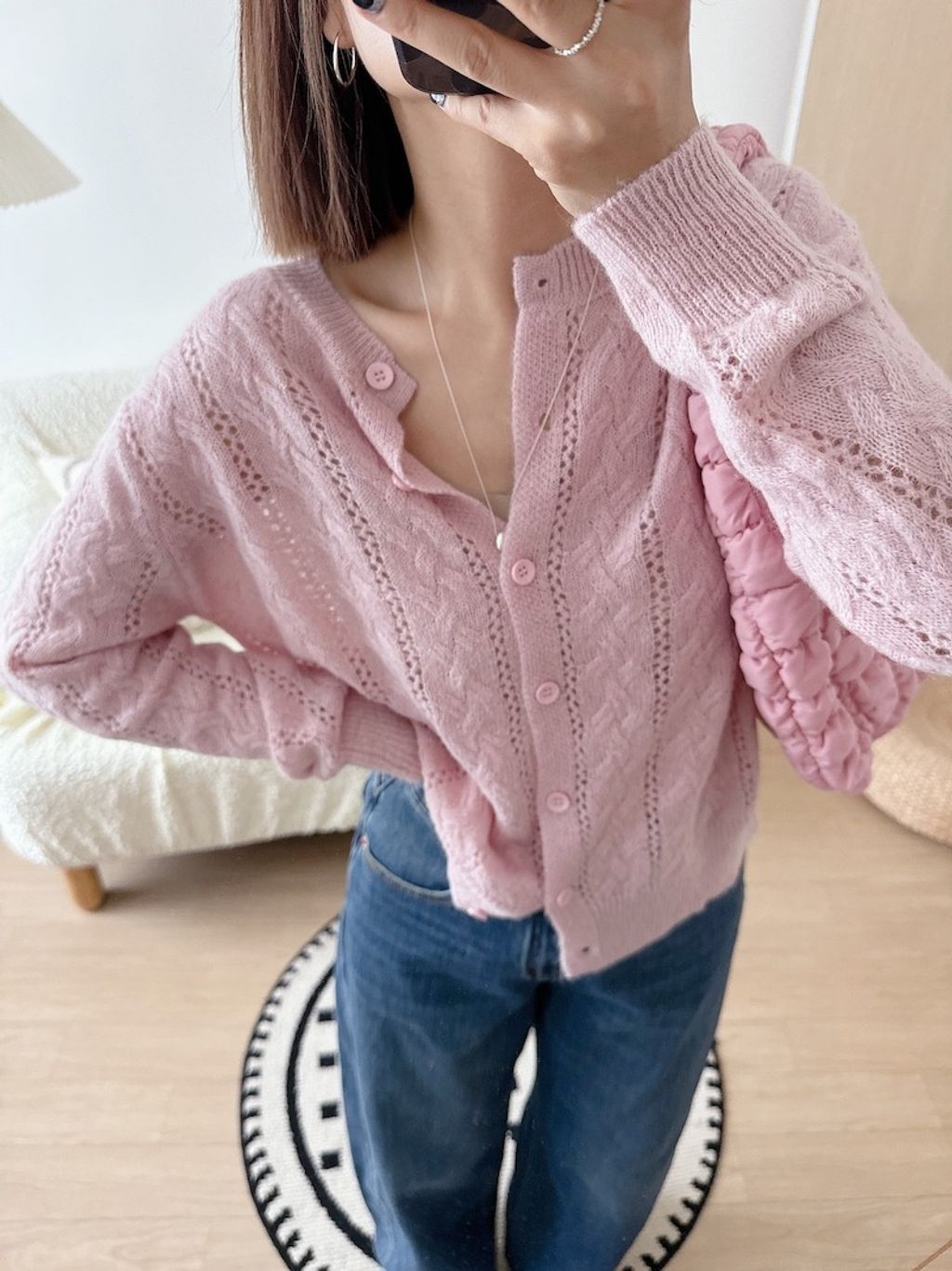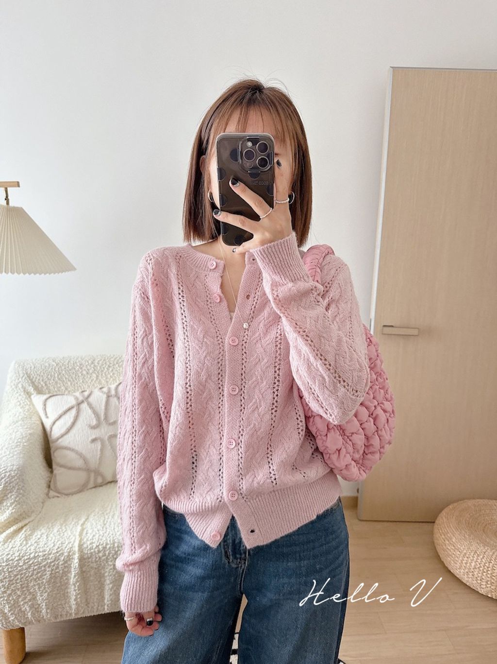 溫柔甜美鏤空麻花針織外套 *粉白灰藍*【N1010-55】