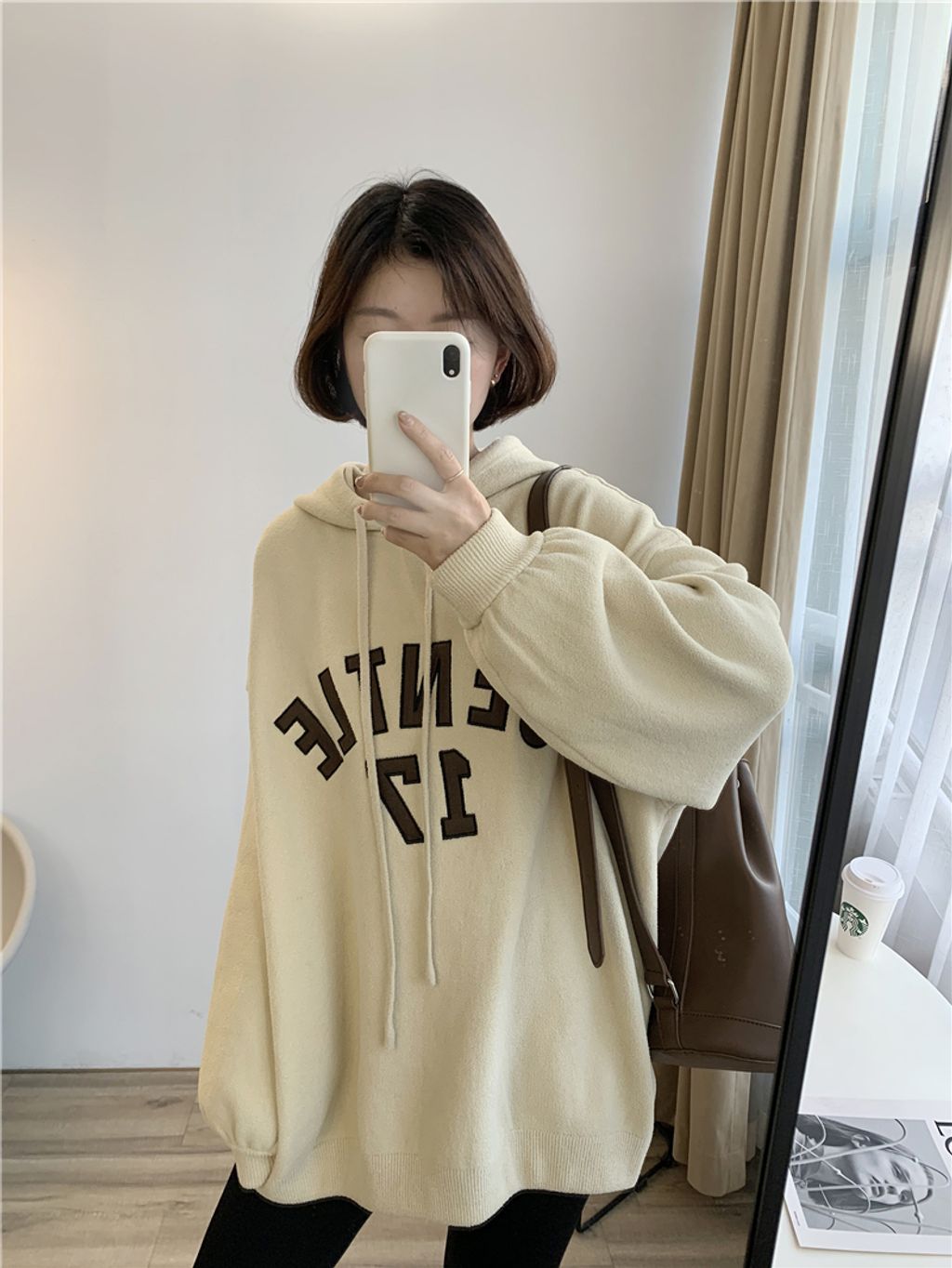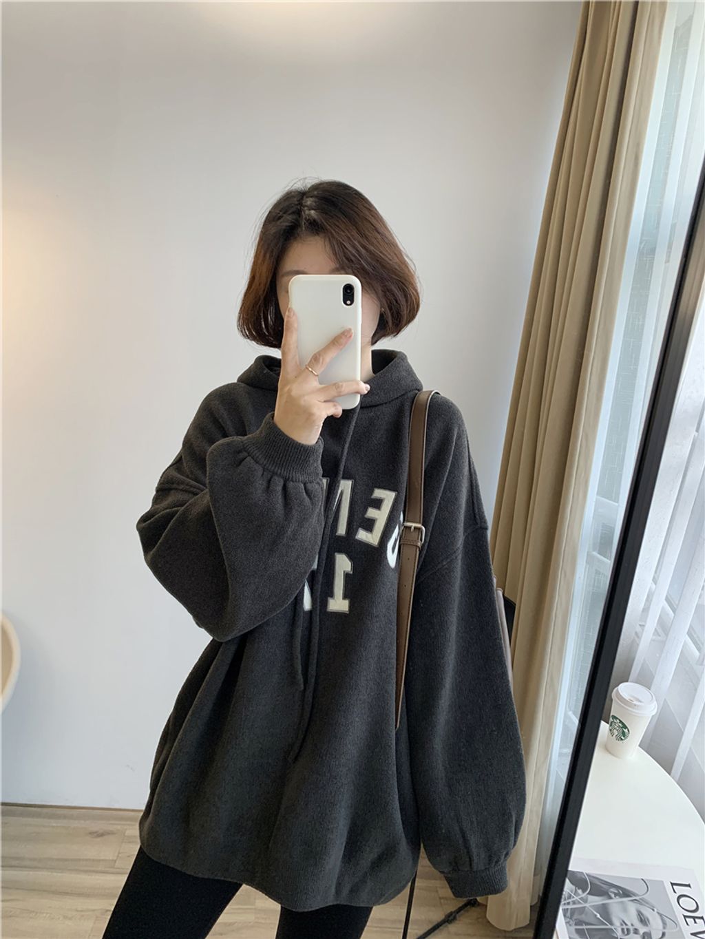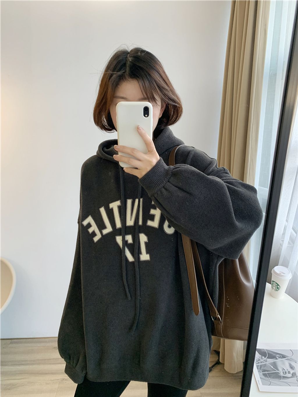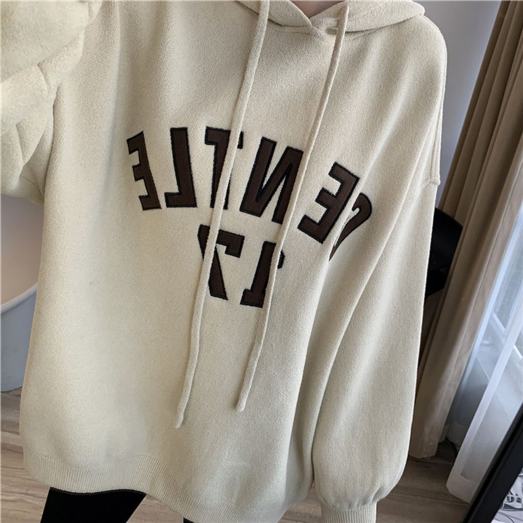 可愛sporty字母風格寬鬆感連帽T *杏黑咖灰*【S1105-08】