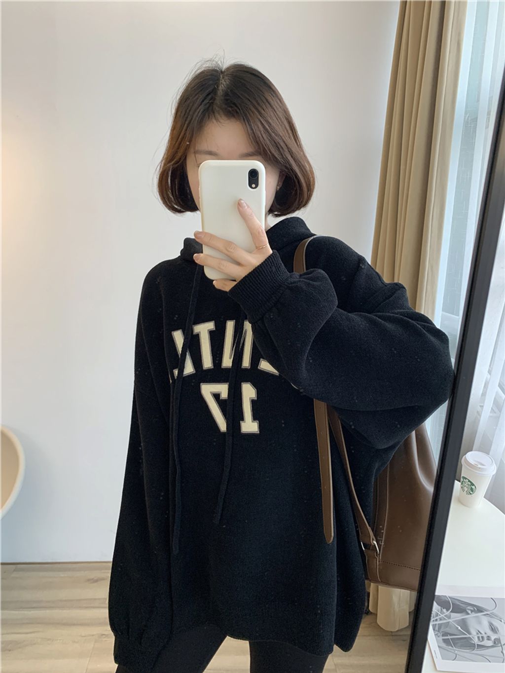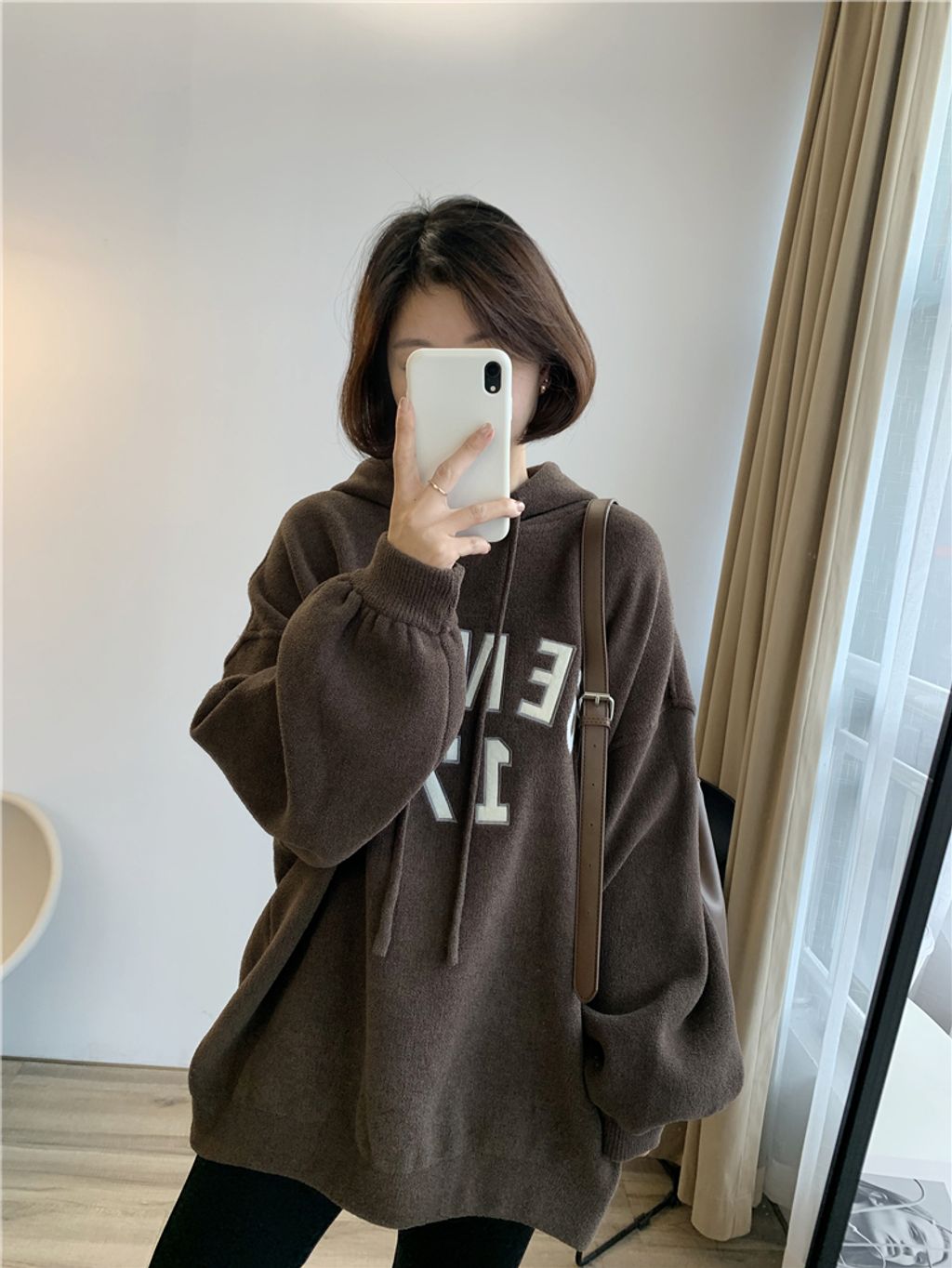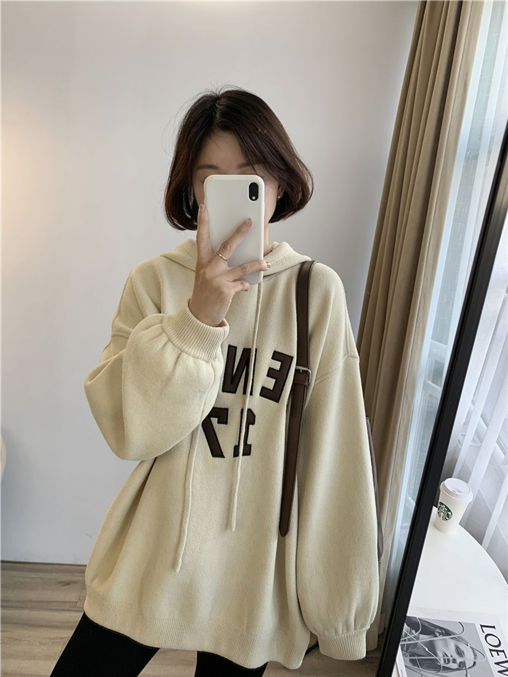 可愛sporty字母風格寬鬆感連帽T *杏黑咖灰*【S1105-08】