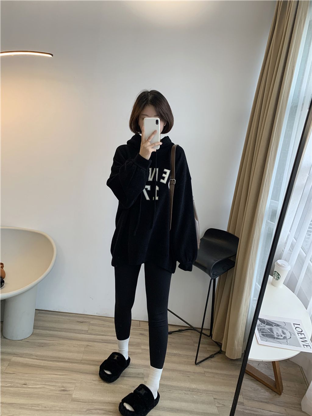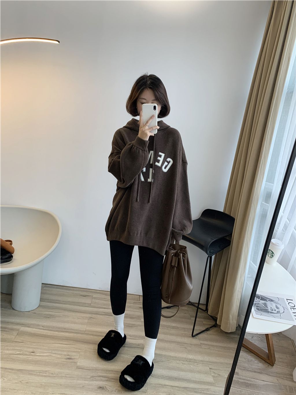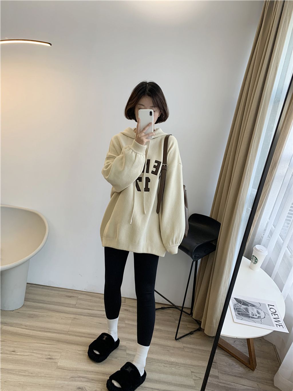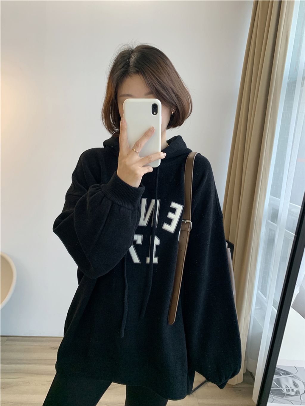可愛sporty字母風格寬鬆感連帽T *杏黑咖灰*【S1105-08】