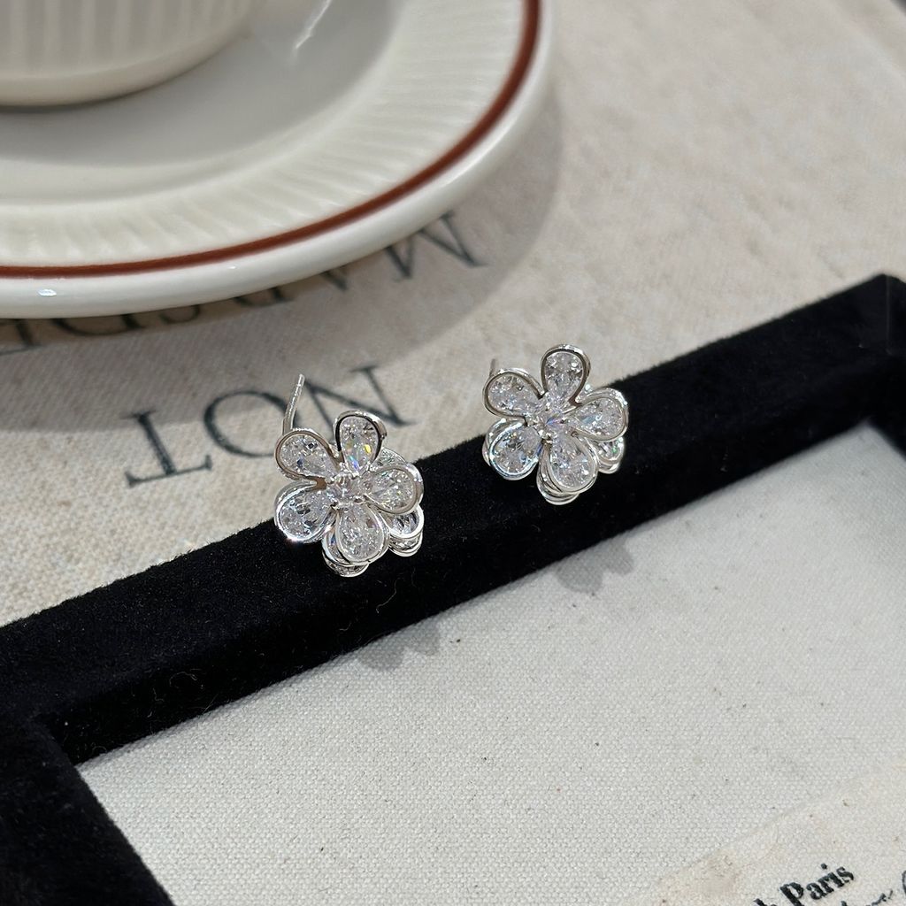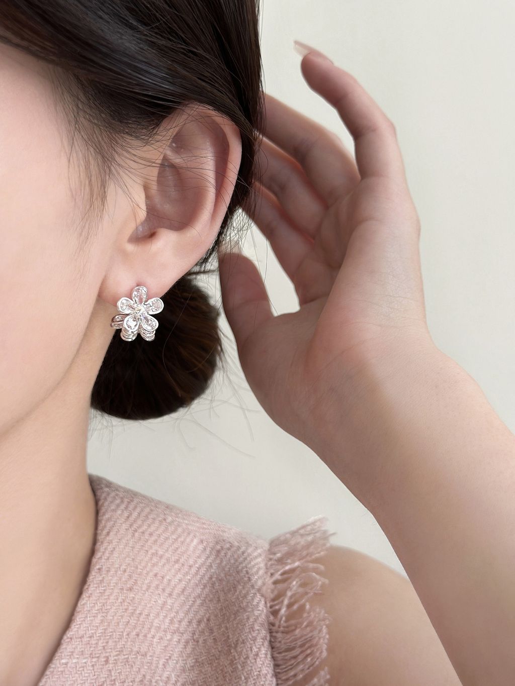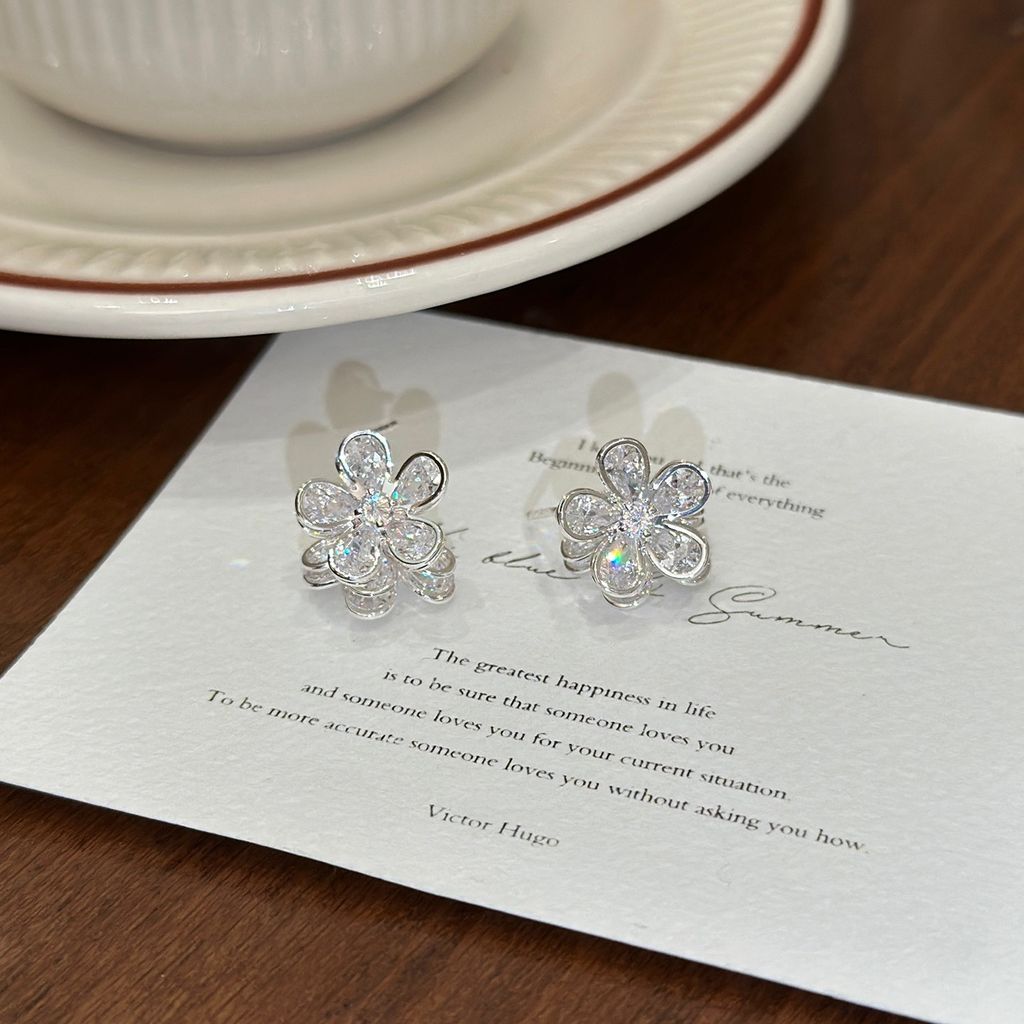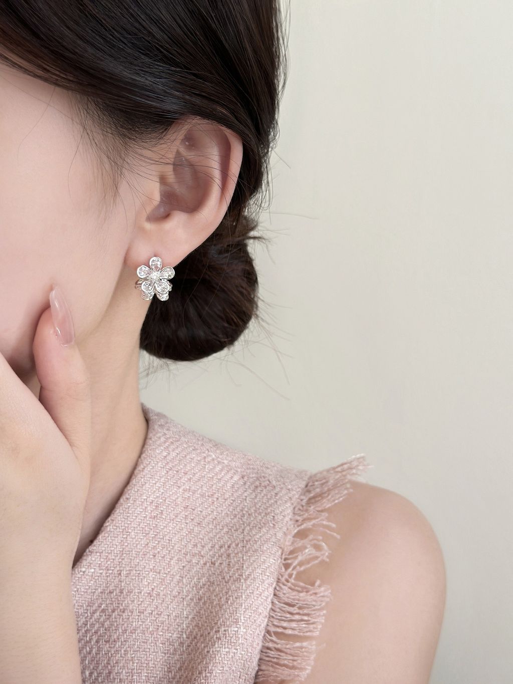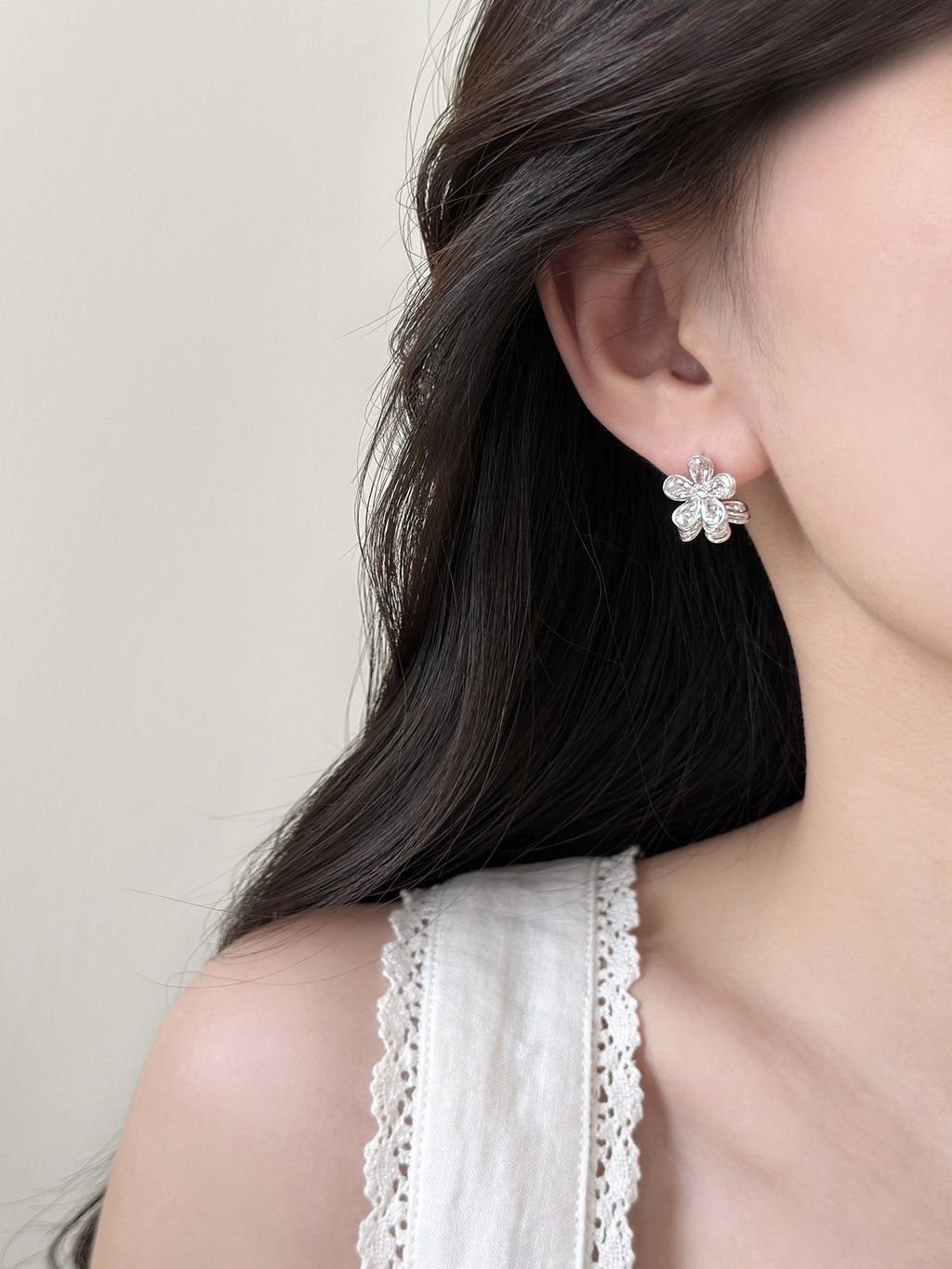 正韓 優雅氣質水鑽花朵質感純銀耳針*銀*【E0710-69】