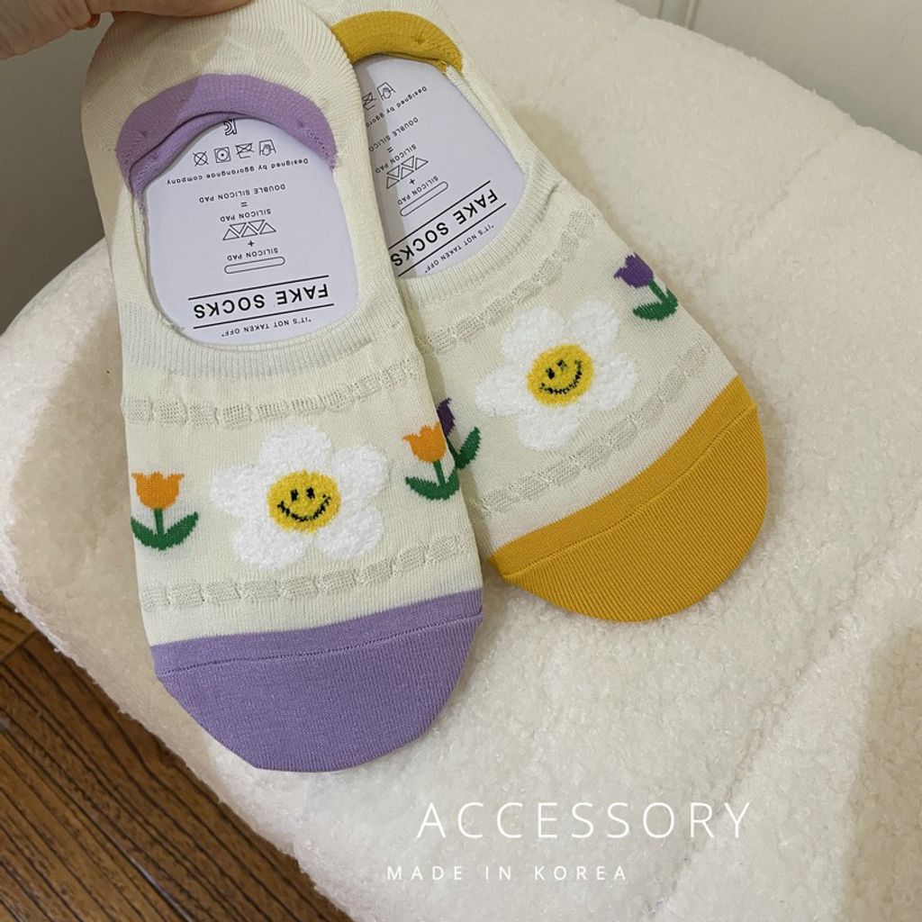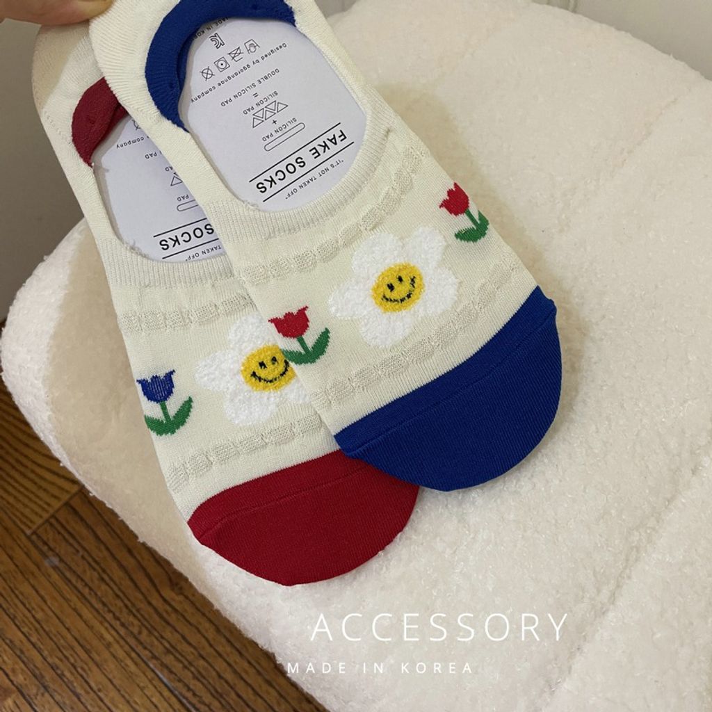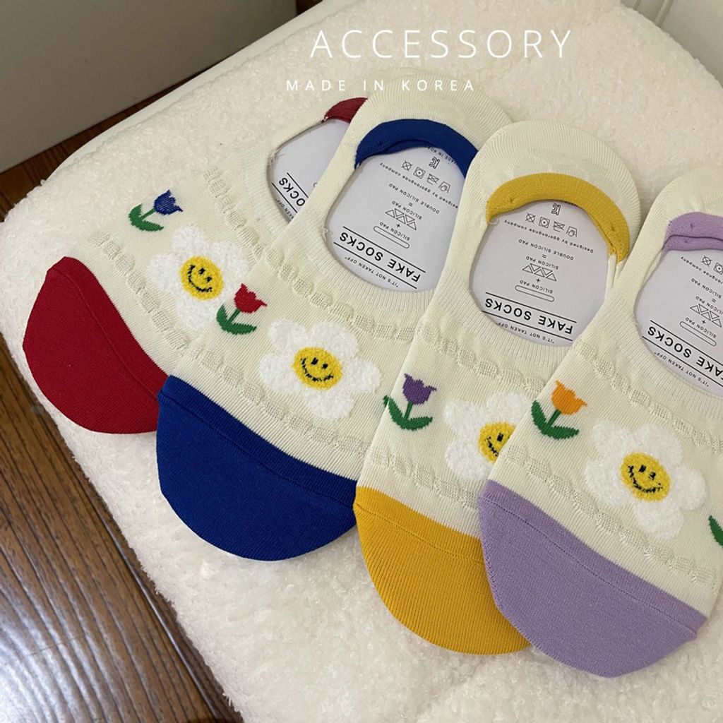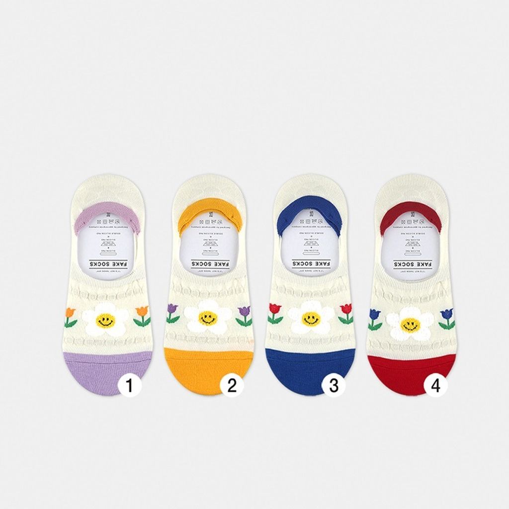 正韓 可愛亮眼花朵笑臉防滑隱形襪*紅藍黃紫*【E0710-64】