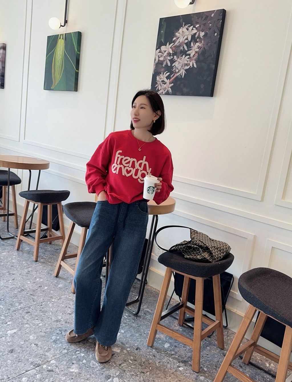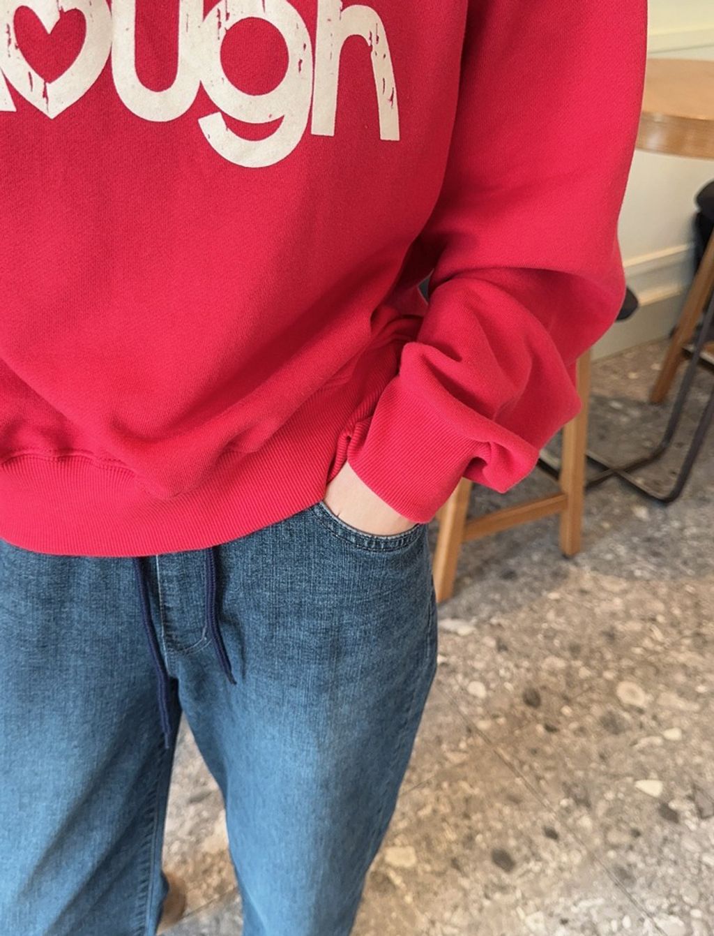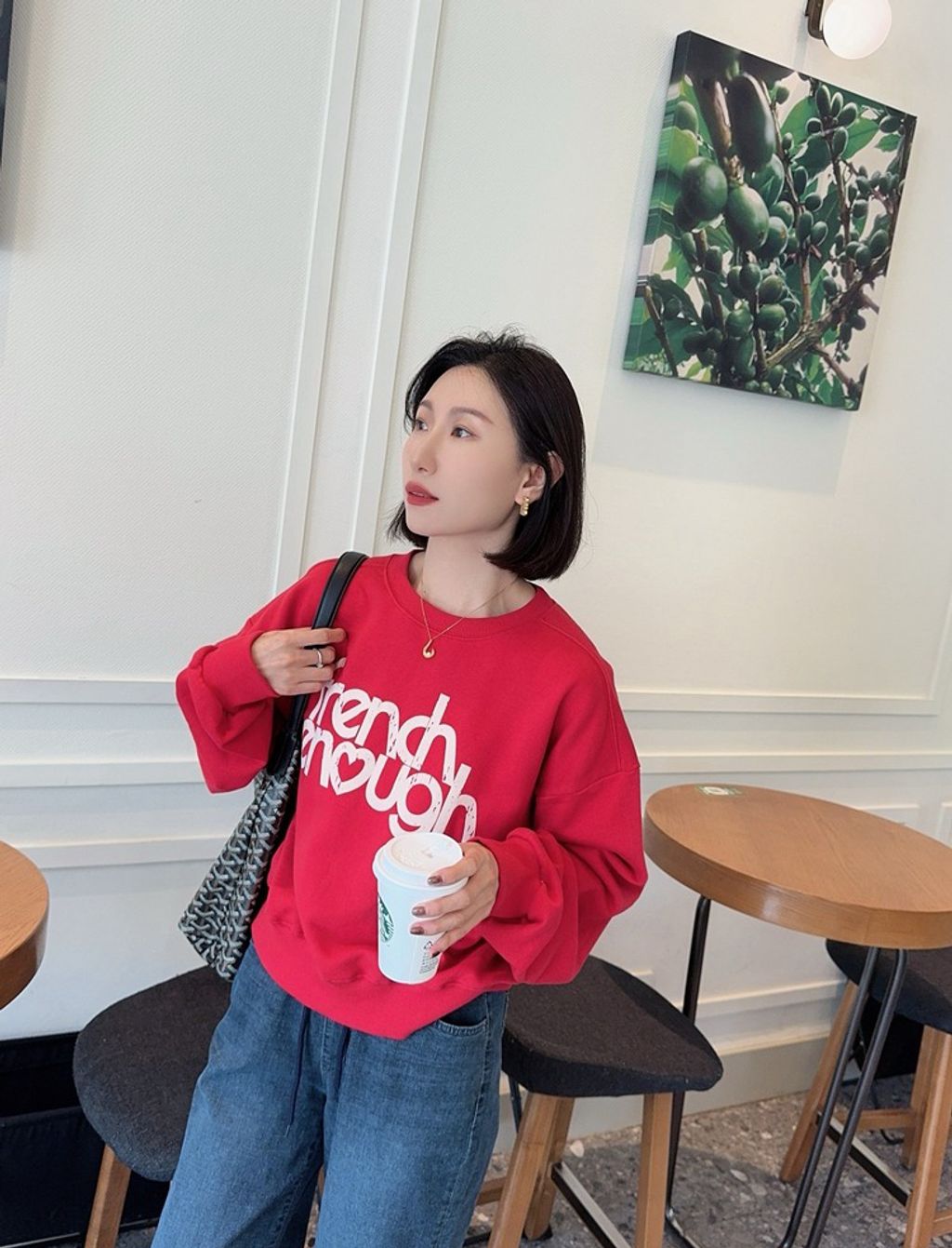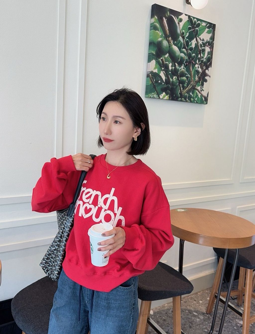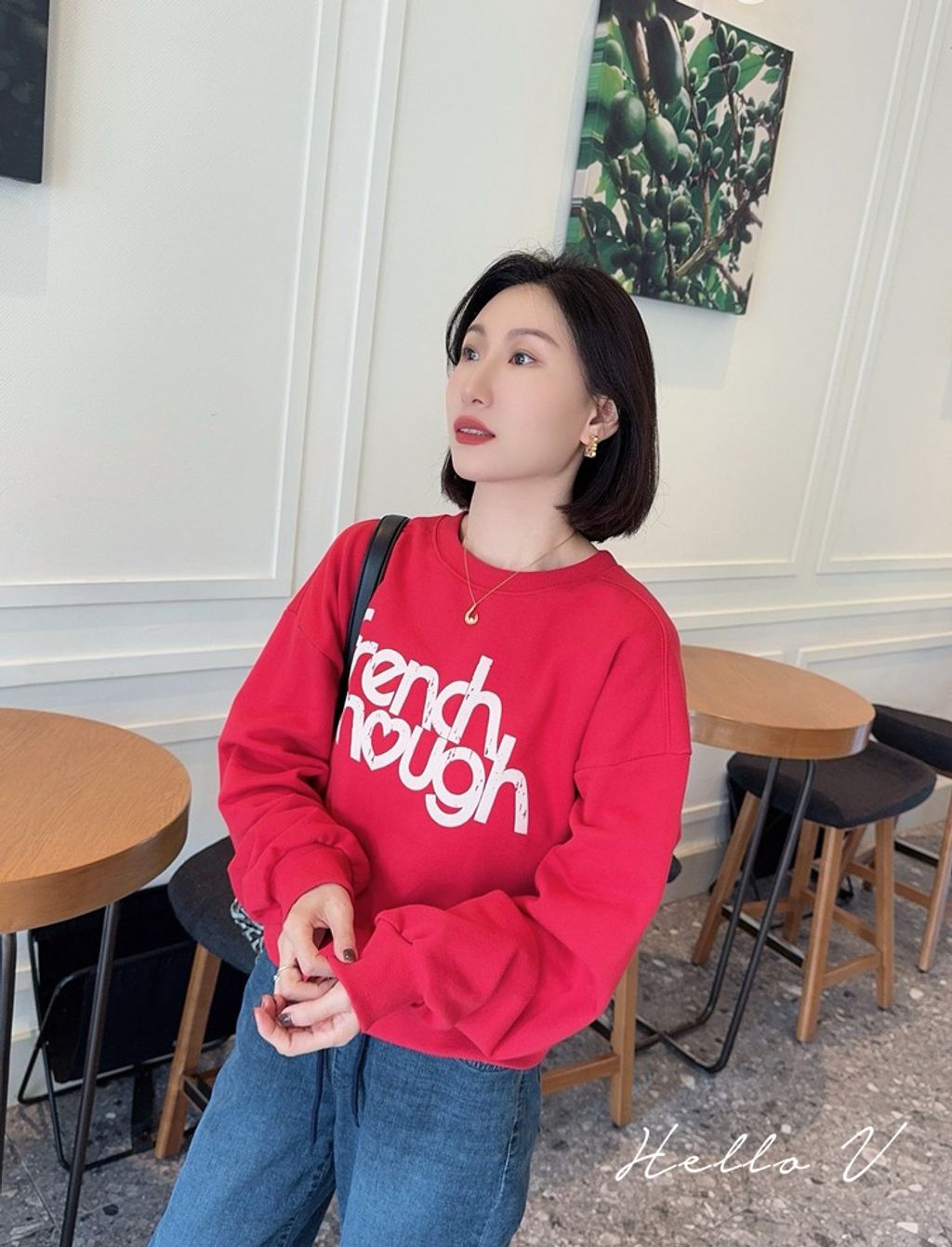 正韓 復古愛心字母設計質感大學T*紅*【S1105-117】