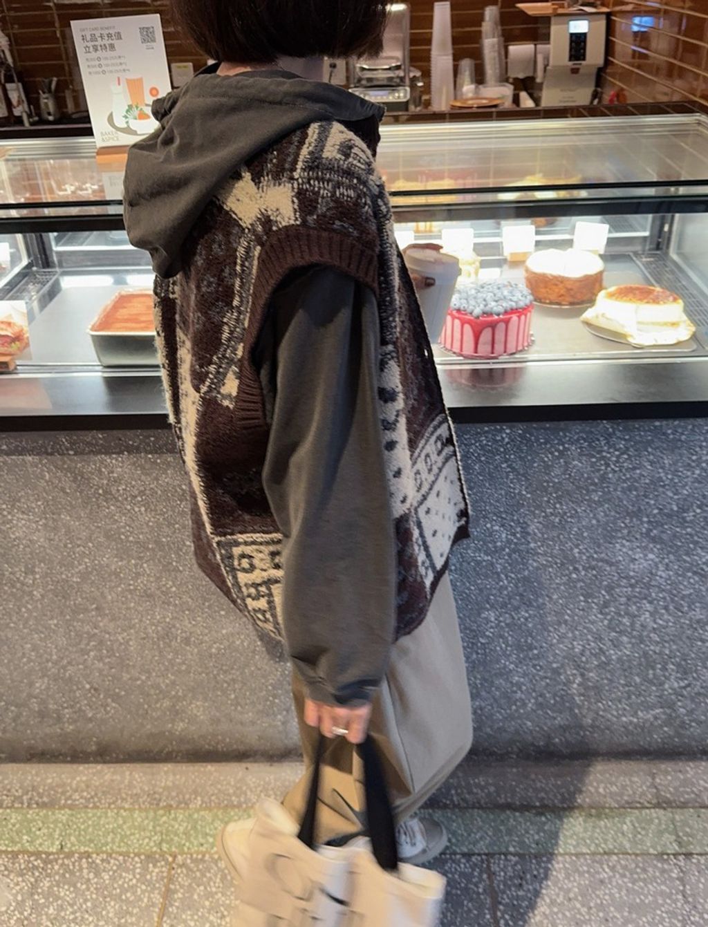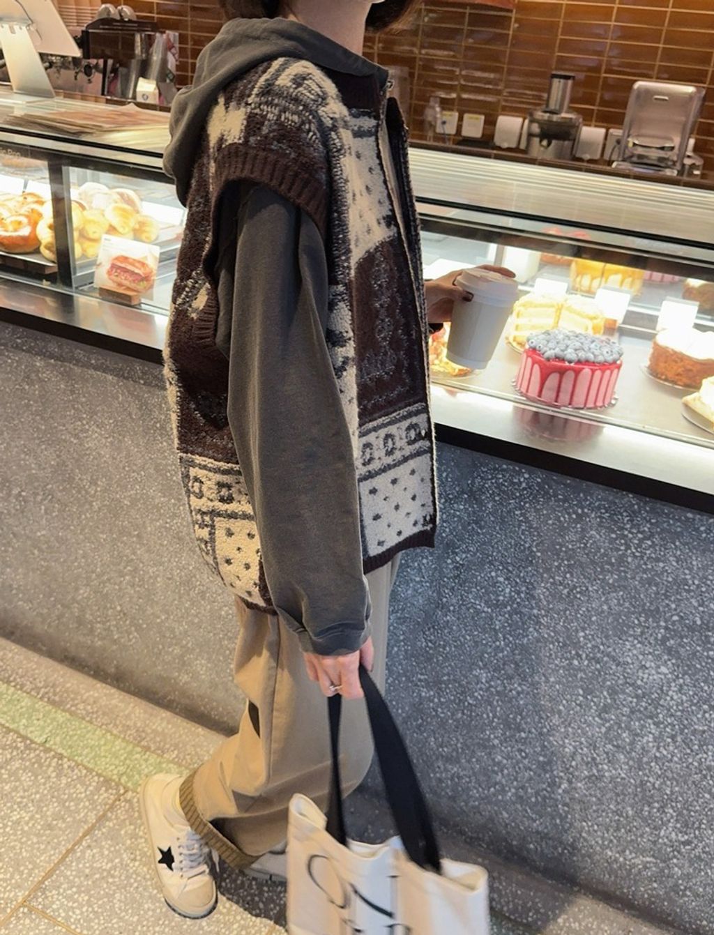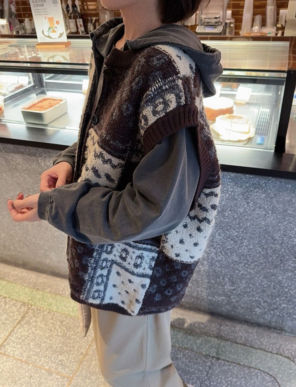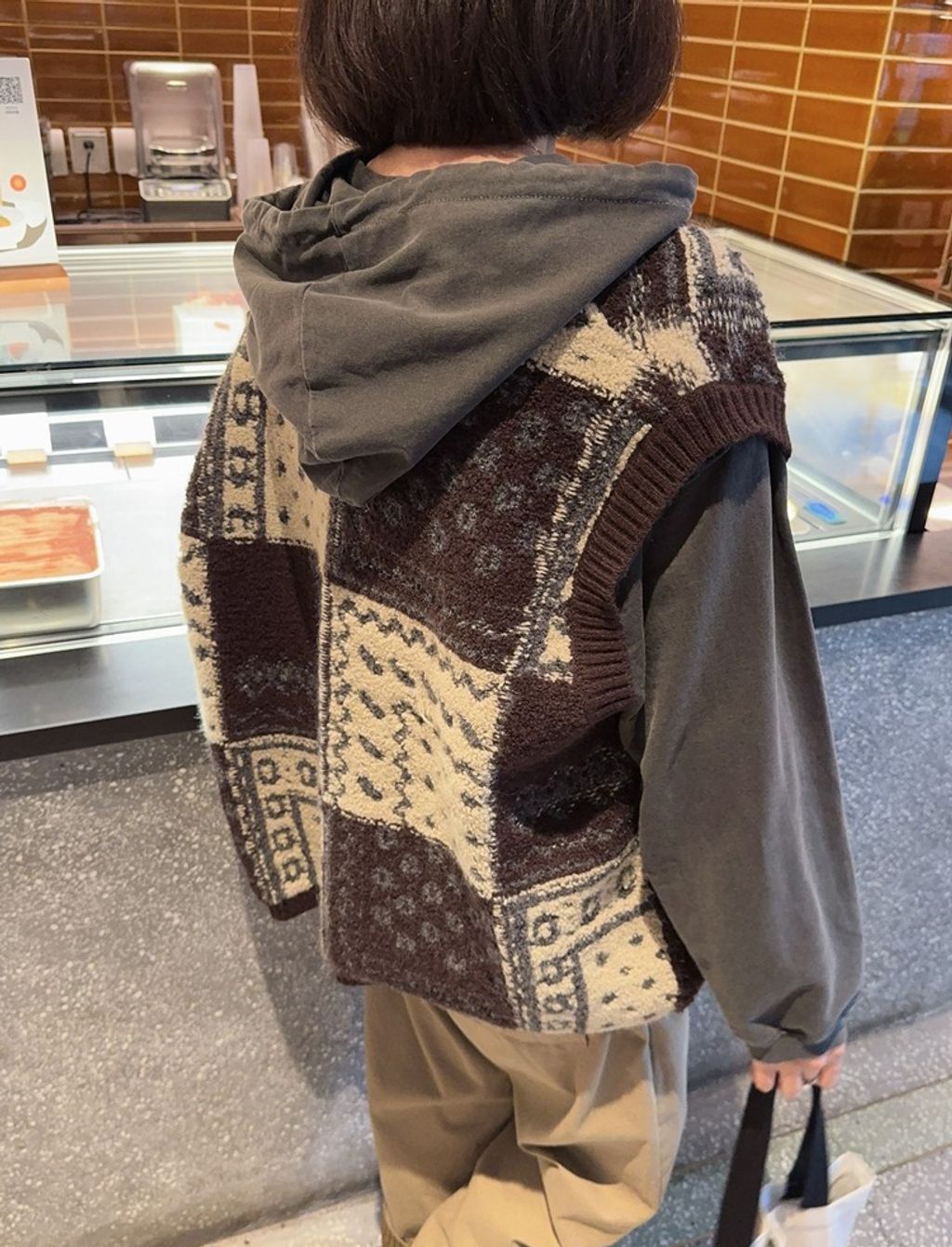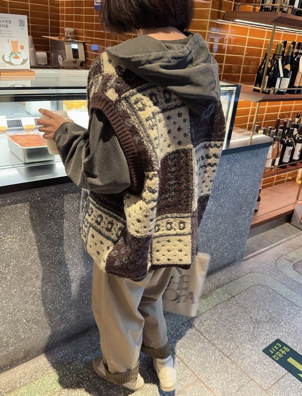 正韓 復古時尚北歐風圖騰質感針織毛衣背心*米咖*【S1105-105】