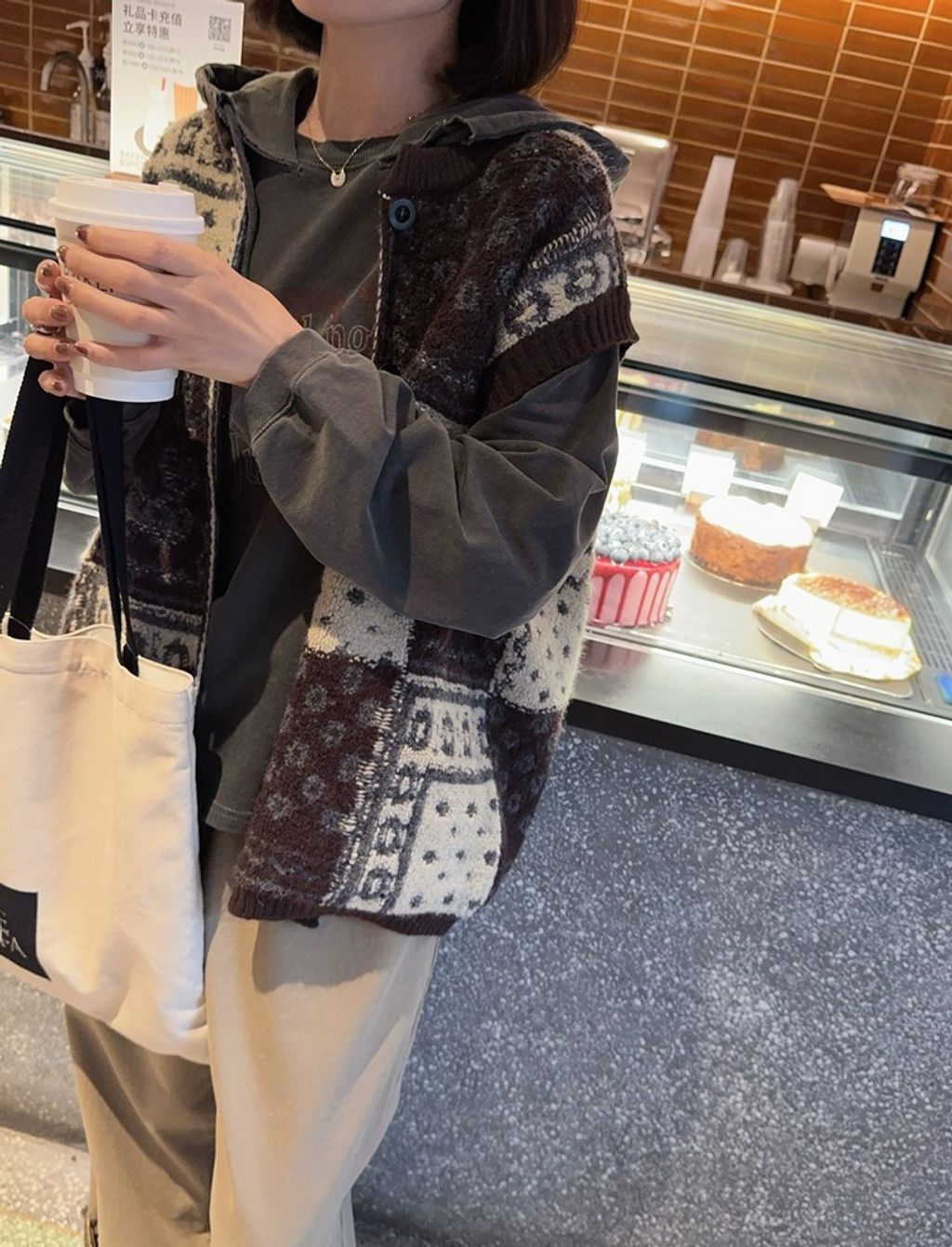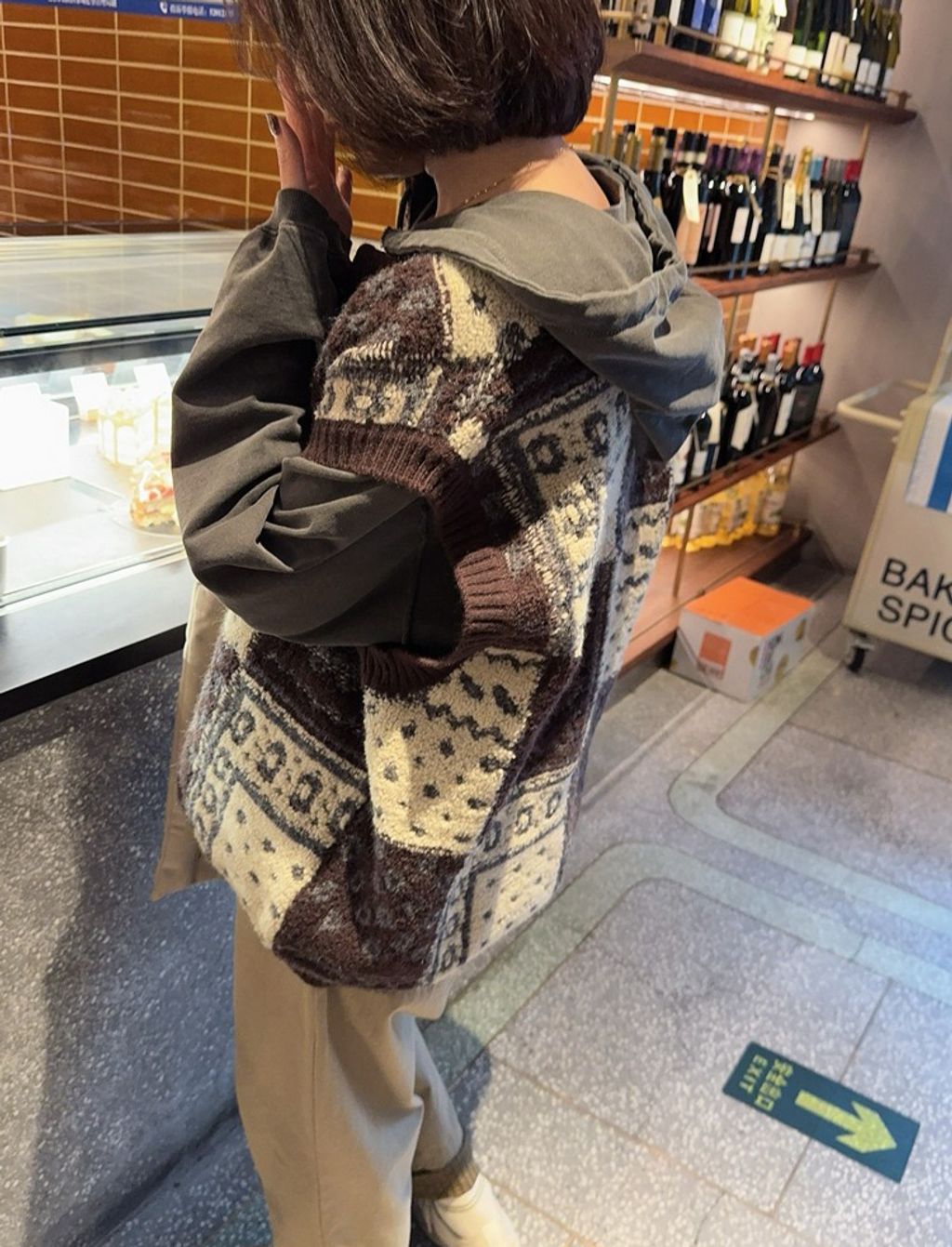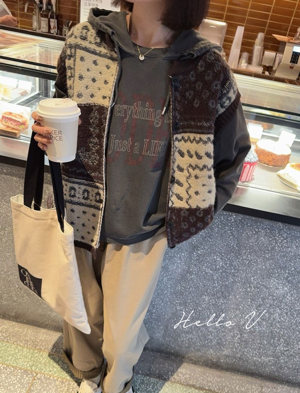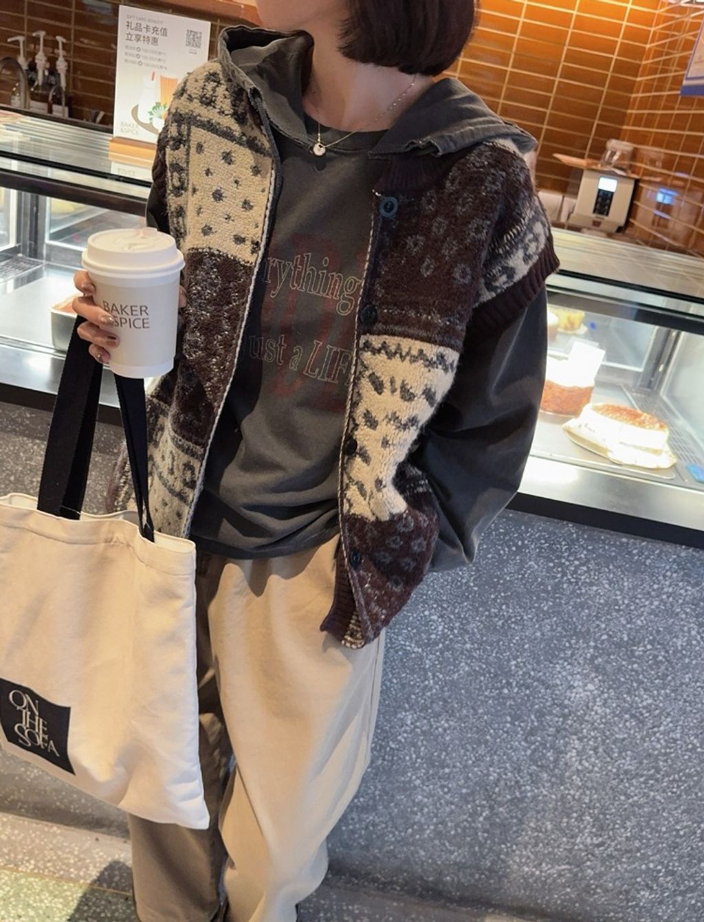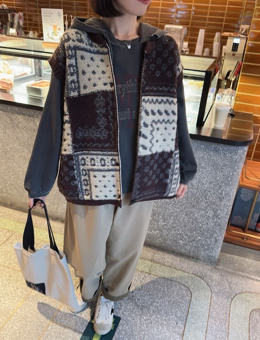 正韓 復古時尚北歐風圖騰質感針織毛衣背心*米咖*【S1105-105】