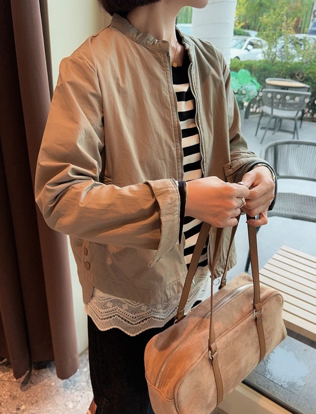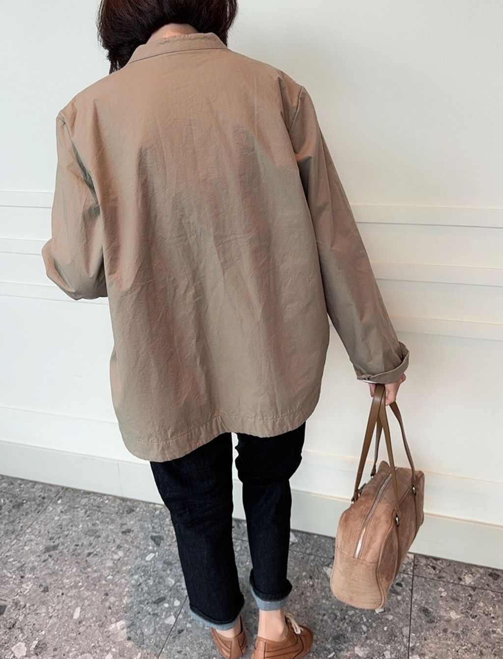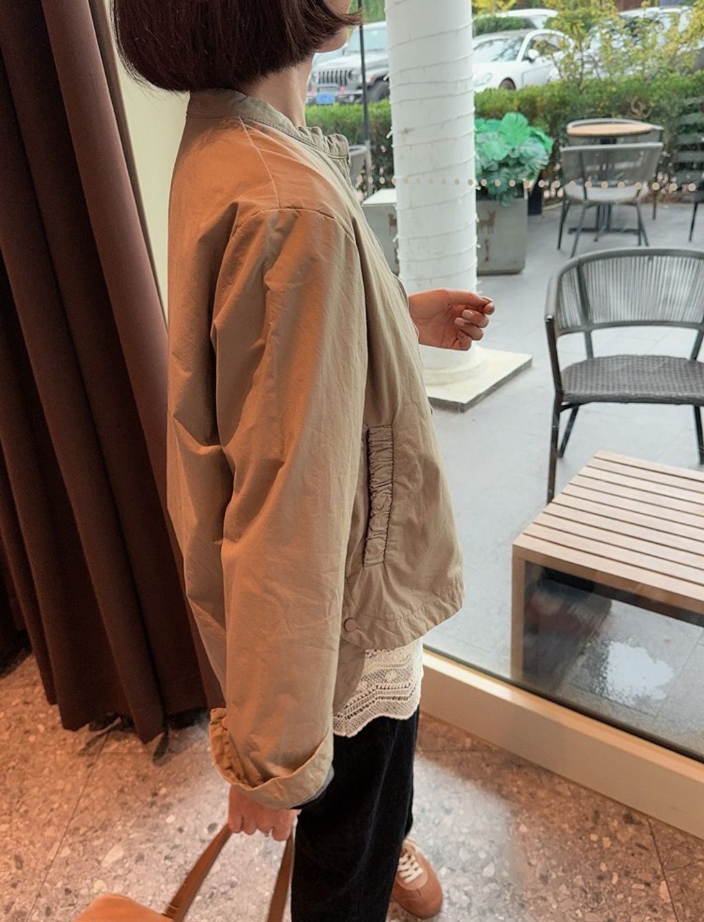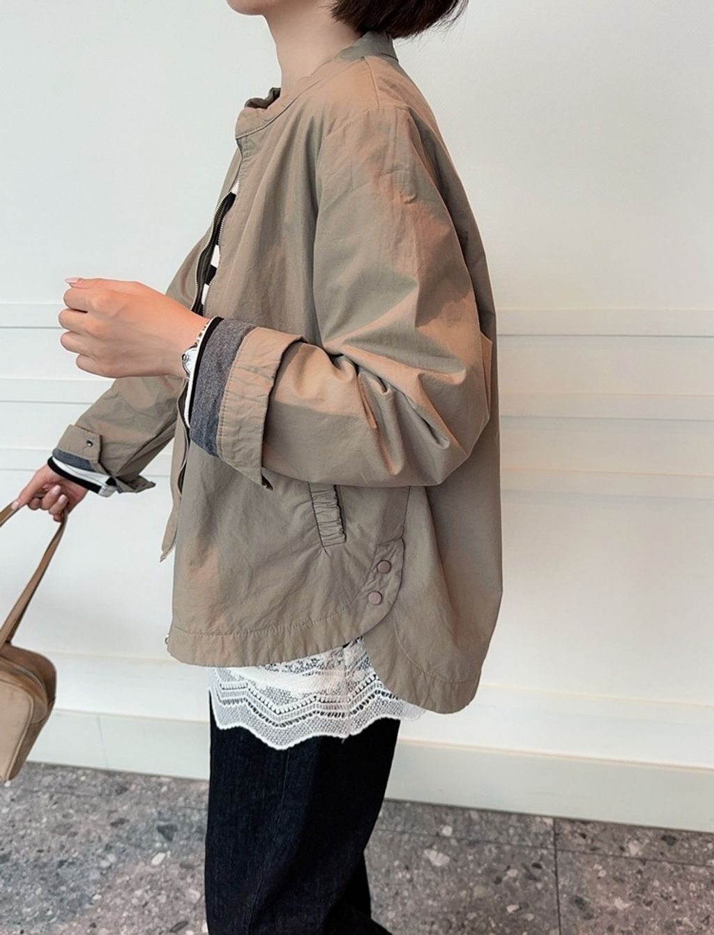 正韓 復古時尚設計款開岔風衣外套*卡其綠*【E0710-92】
