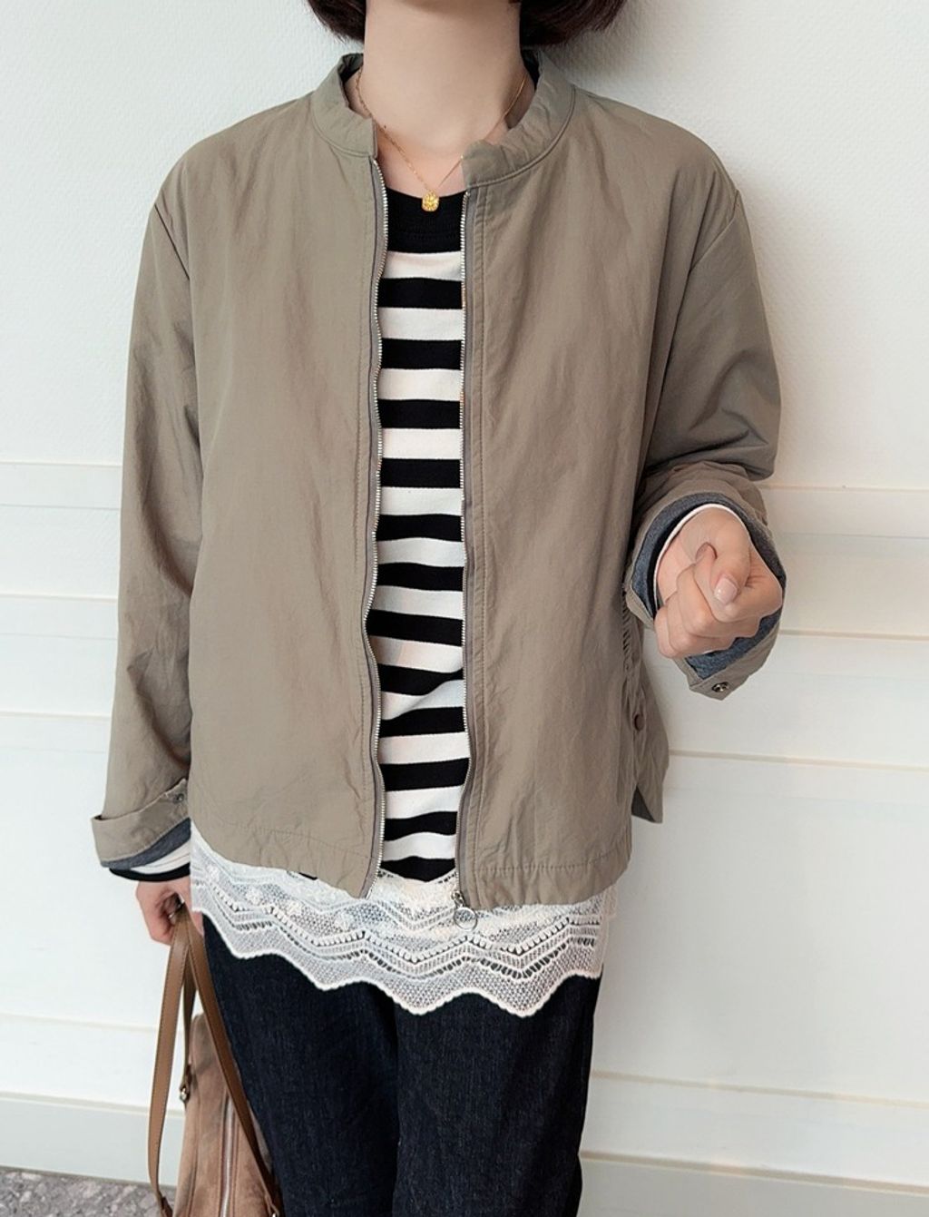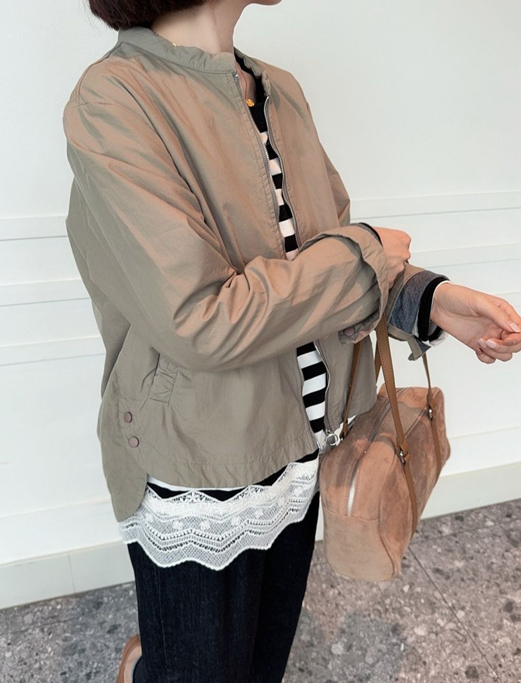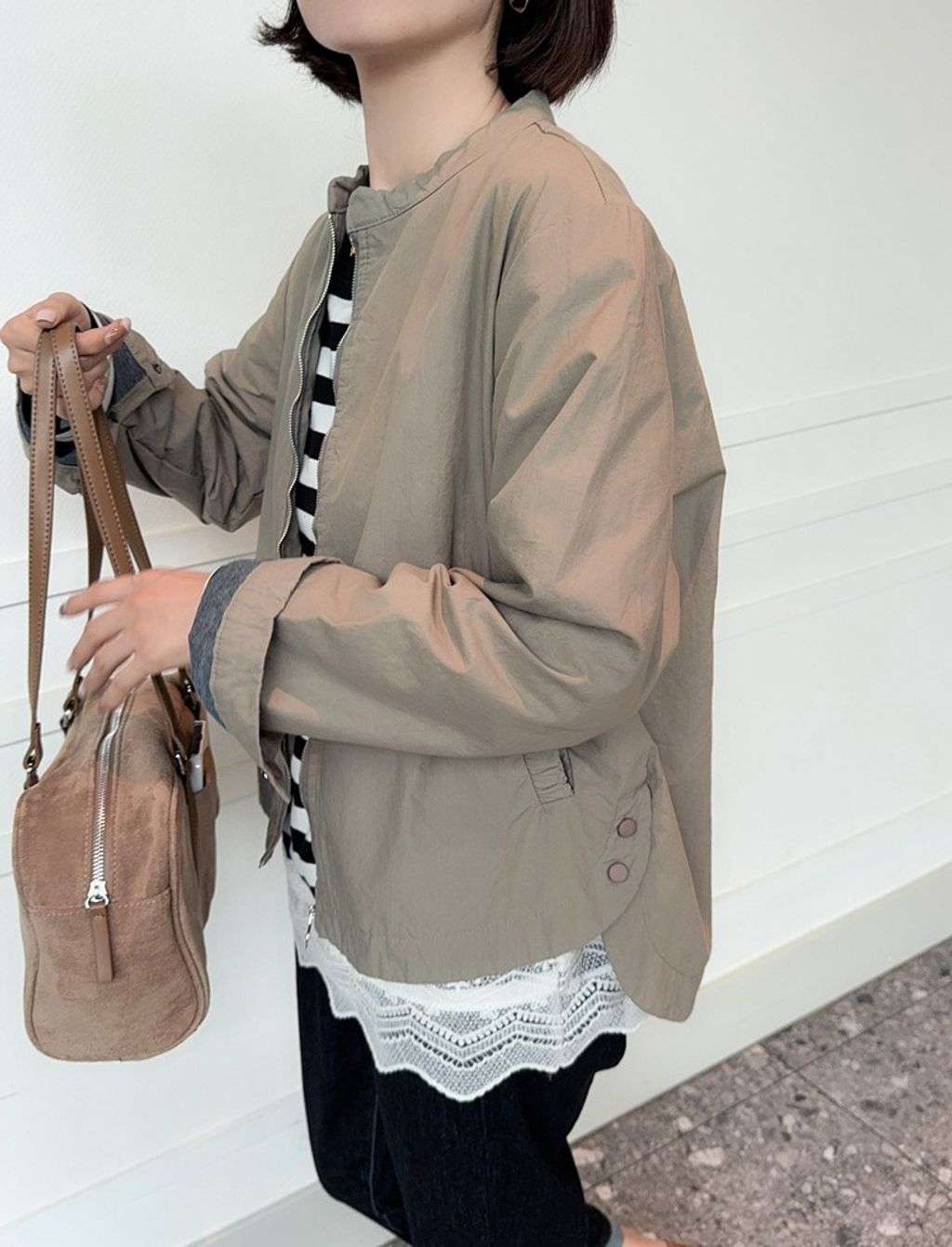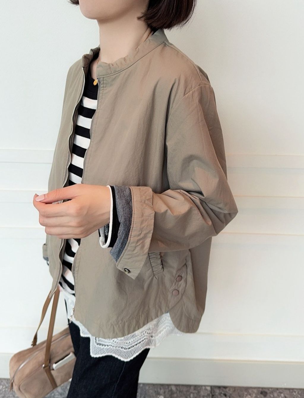 正韓 復古時尚設計款開岔風衣外套*卡其綠*【E0710-92】