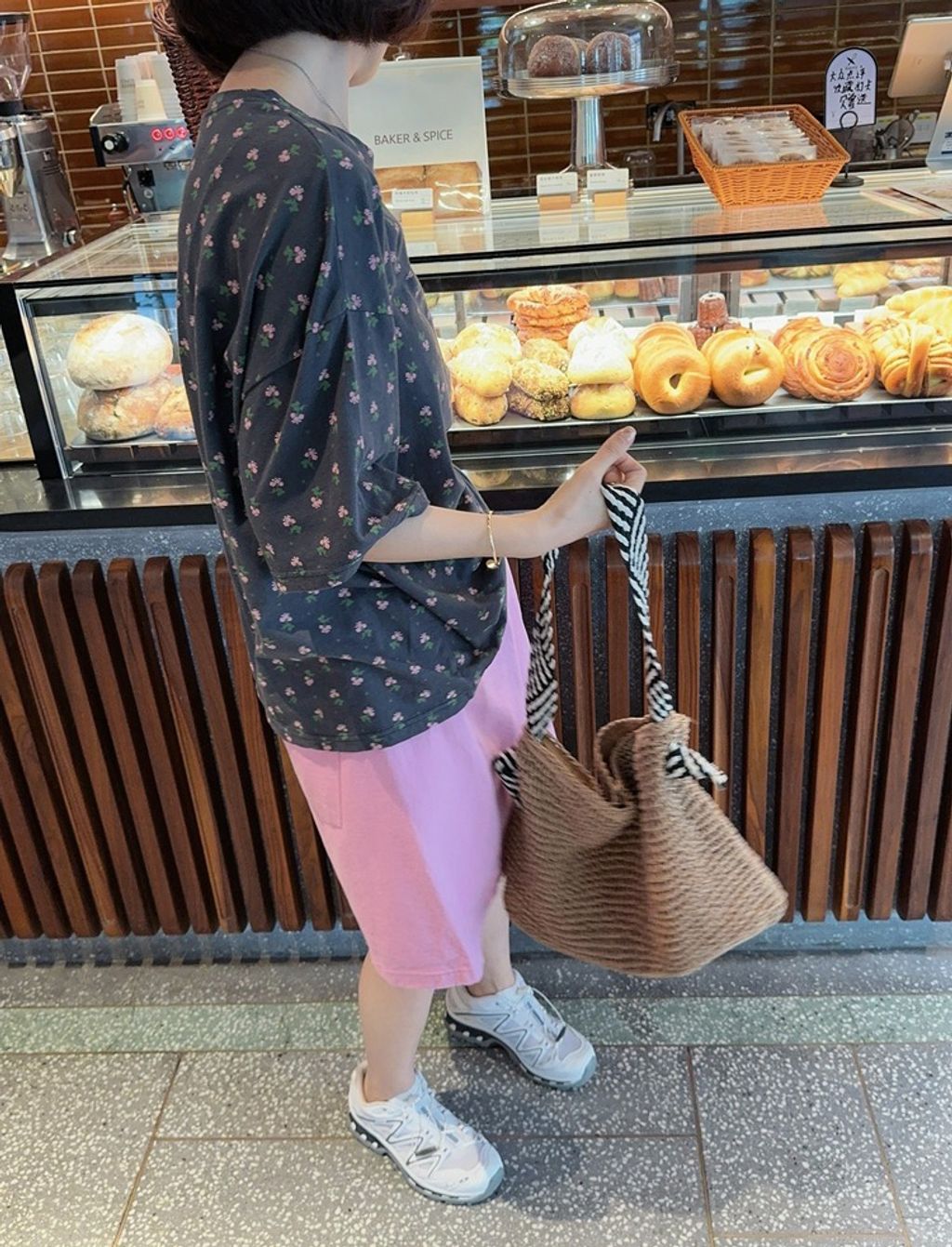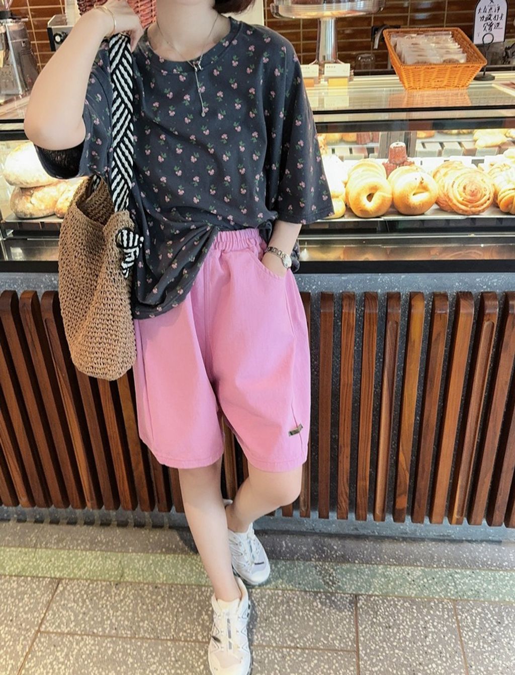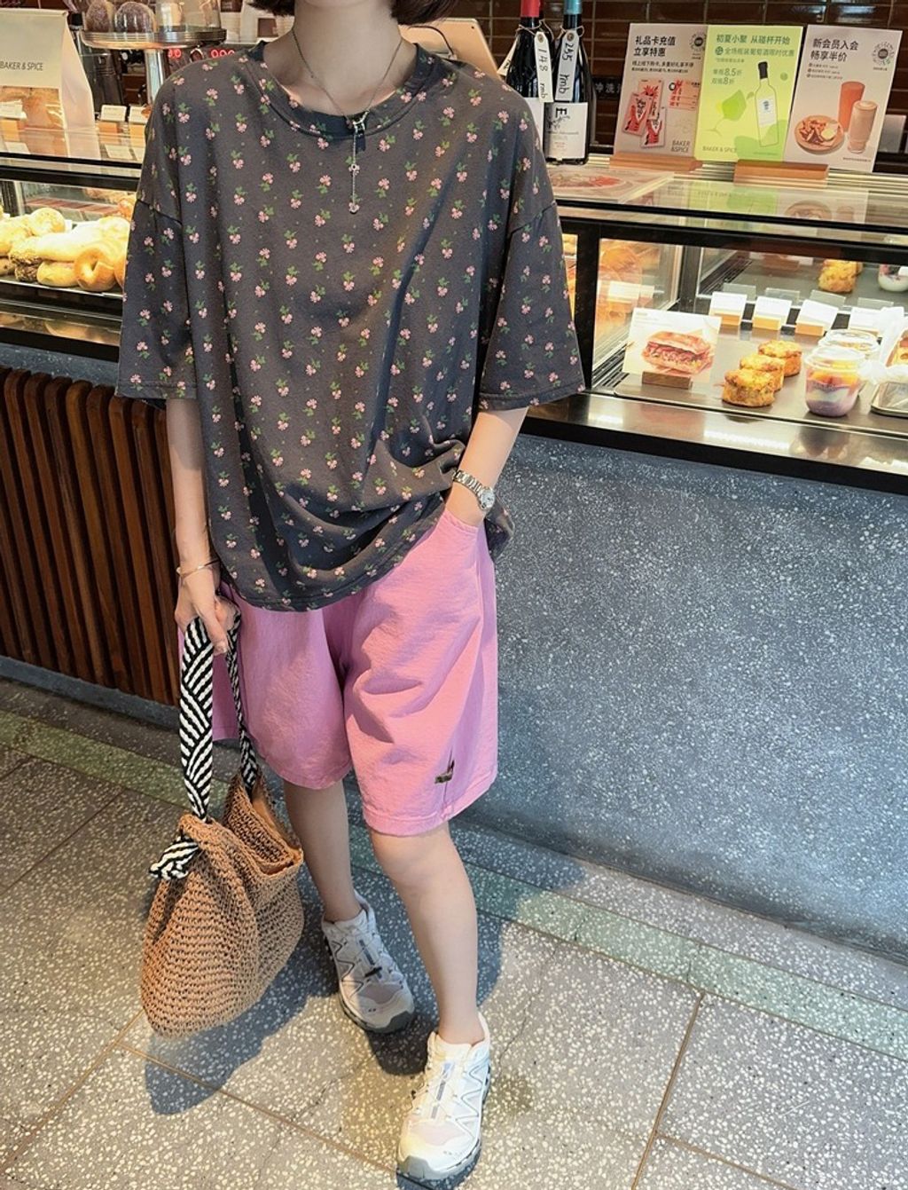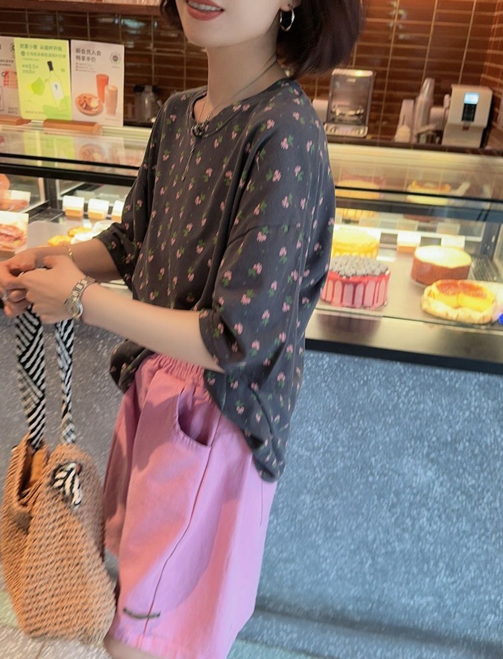 正韓 復古甜美小花朵寬鬆質感短T*深灰*【E0710-89】