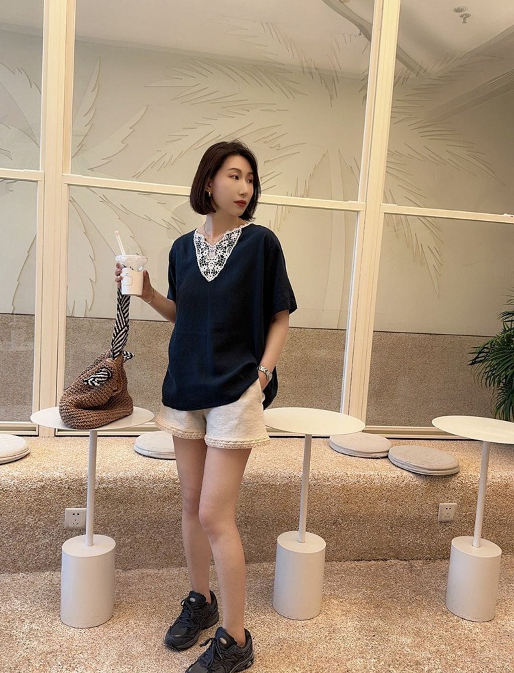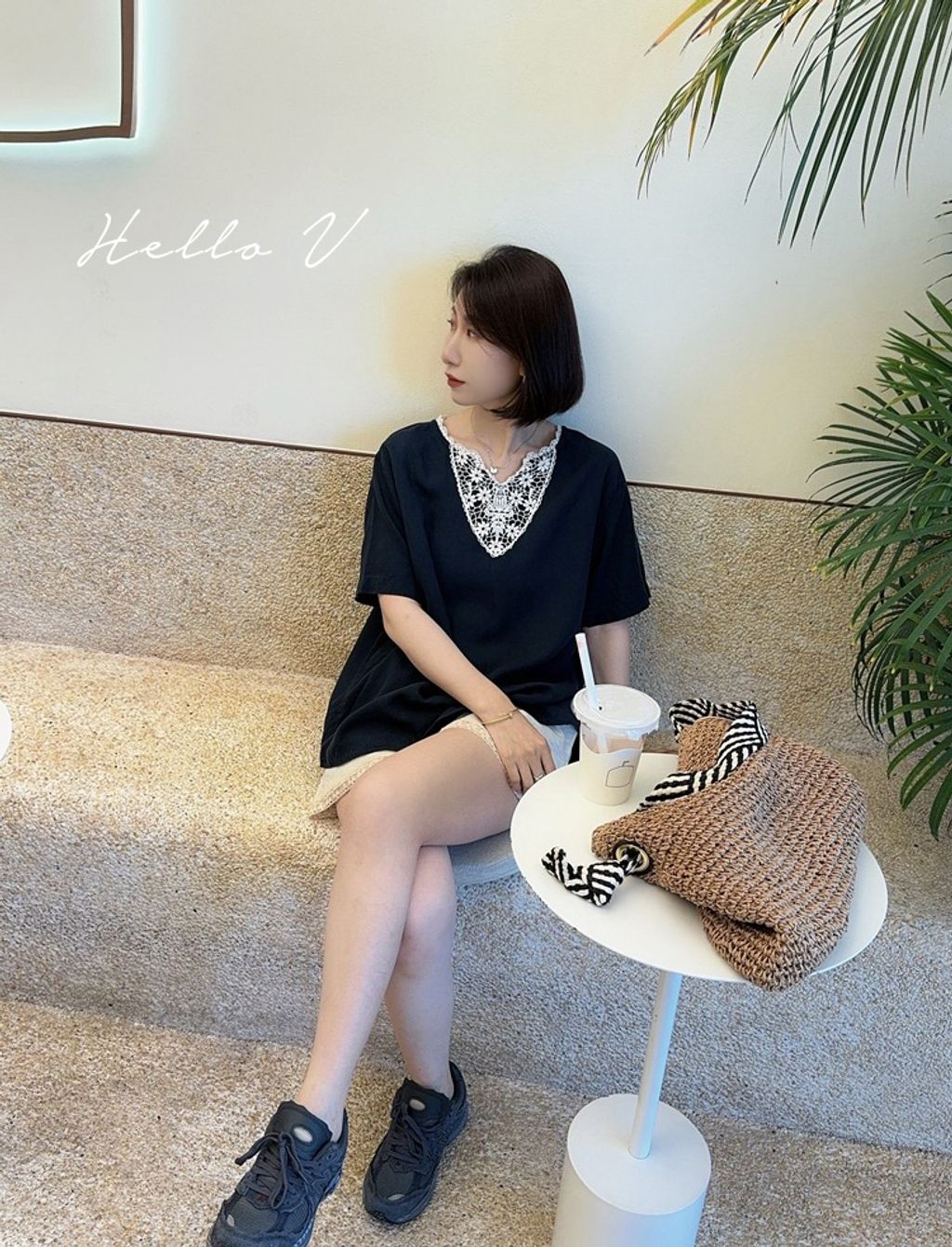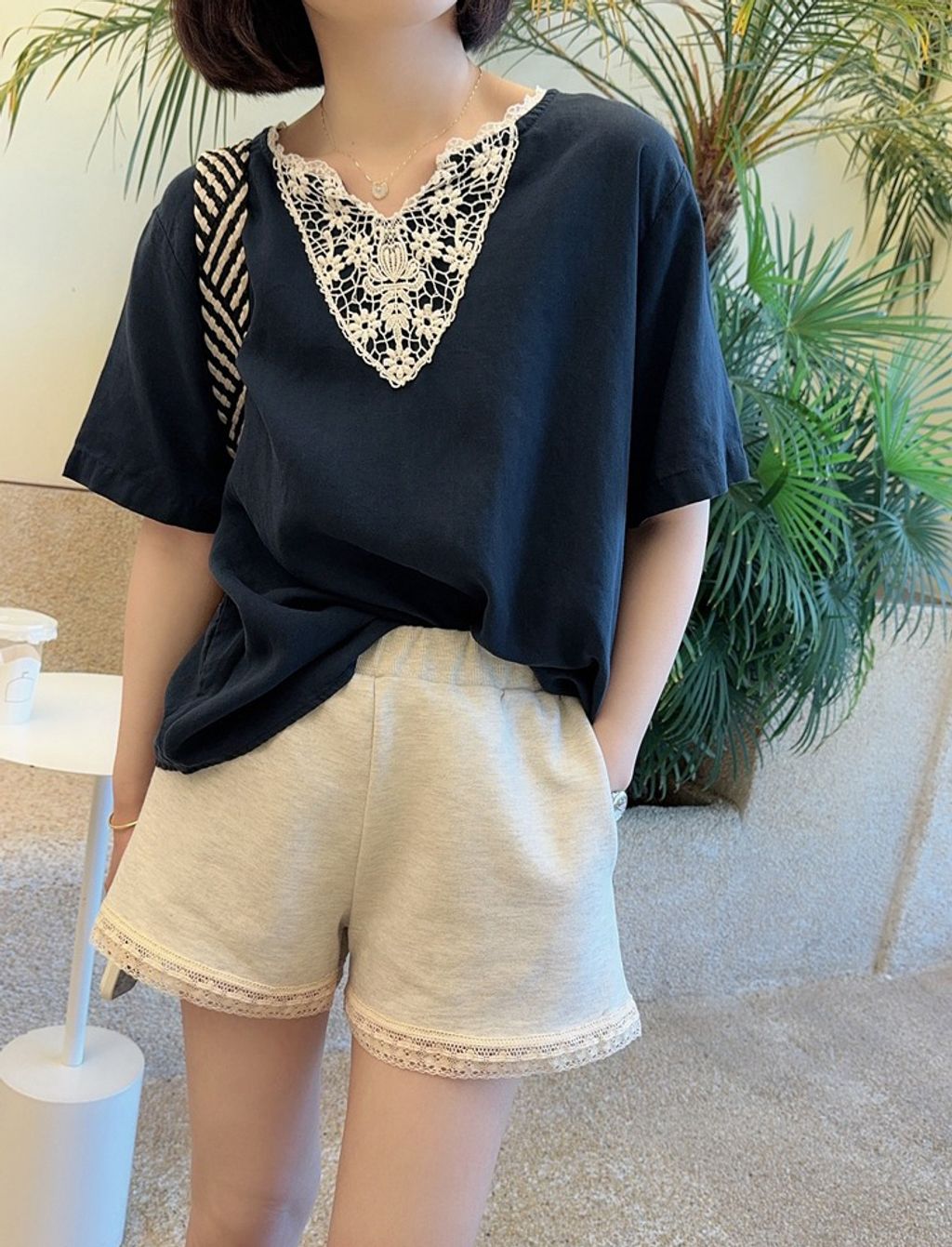 正韓 法式復古優雅蕾絲拼接質感上衣*深藍*【E0710-91】