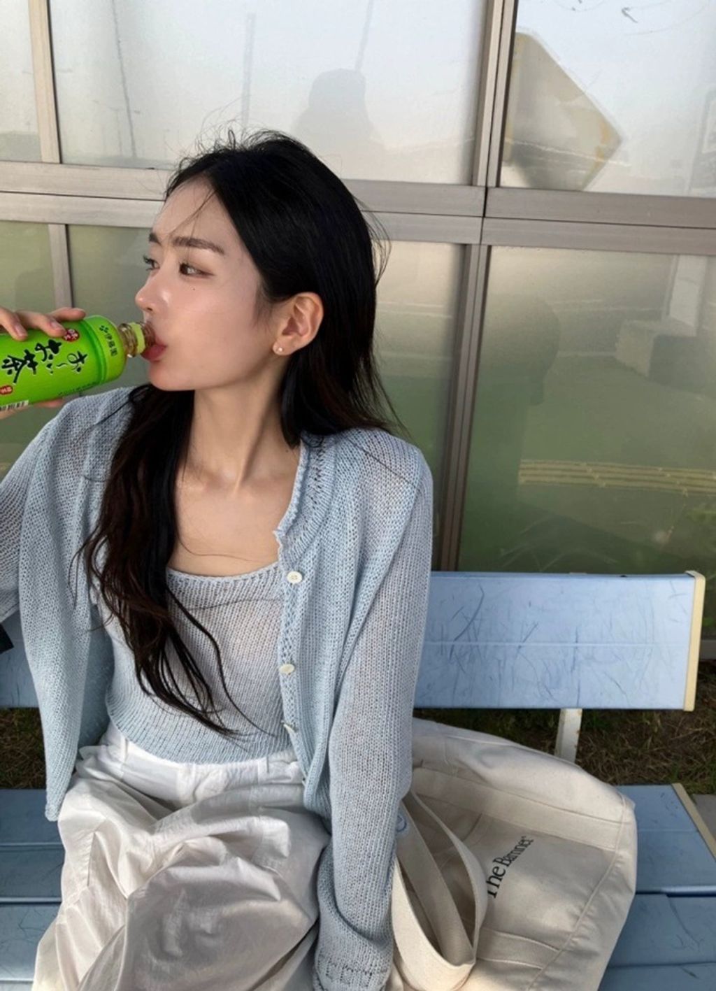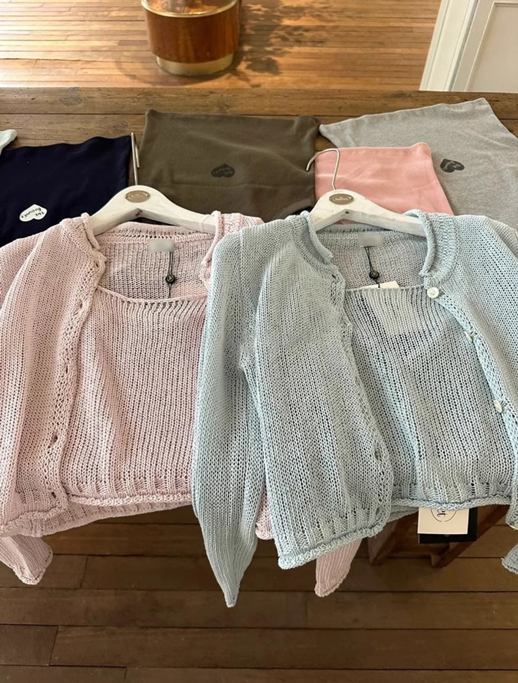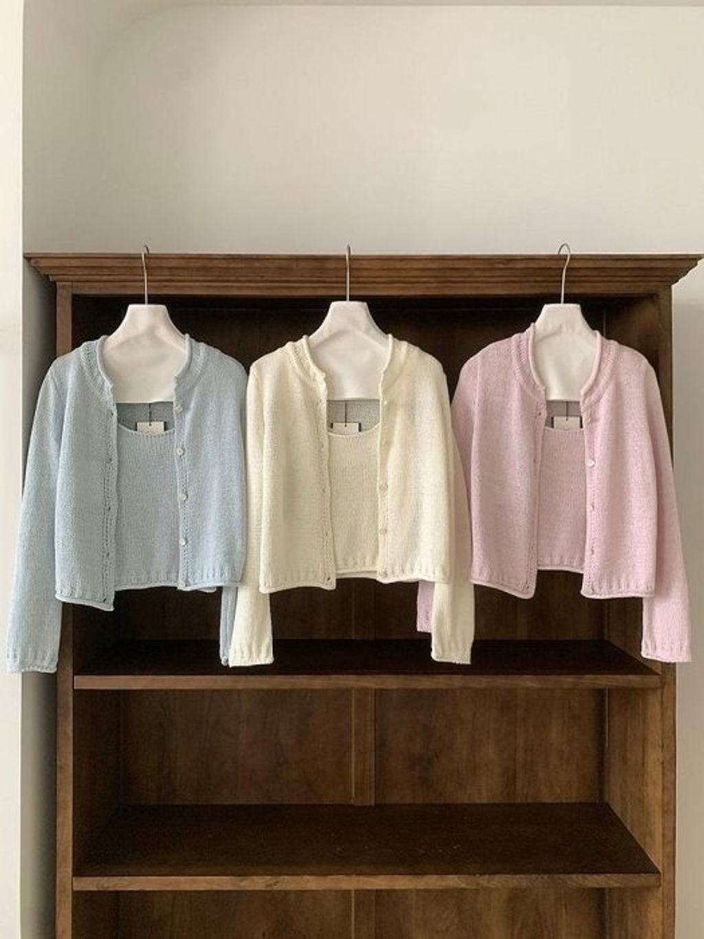 正韓 法式甜美捲邊針織小背心+外套*奶白藍粉*【E0710-75】