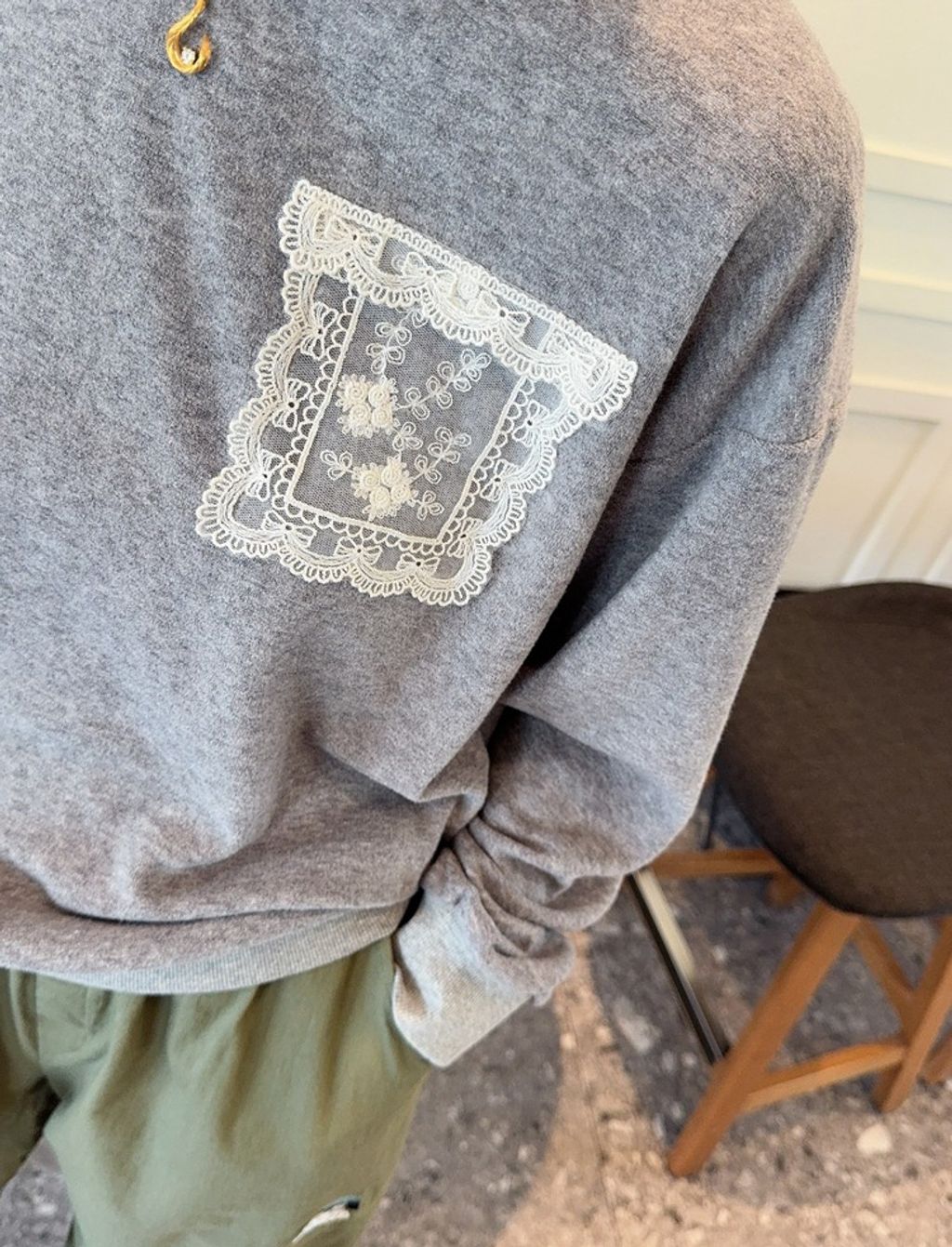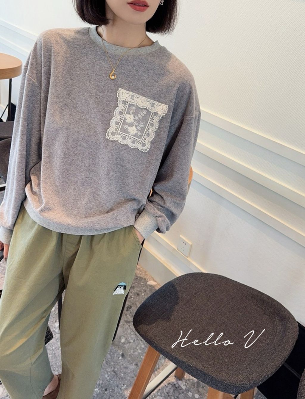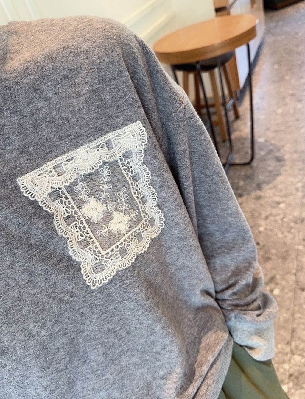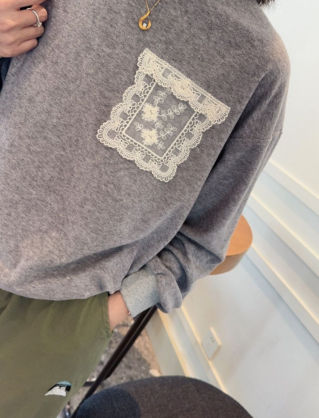 正韓 甜美蕾絲口袋質感上衣*灰*【S1105-122】