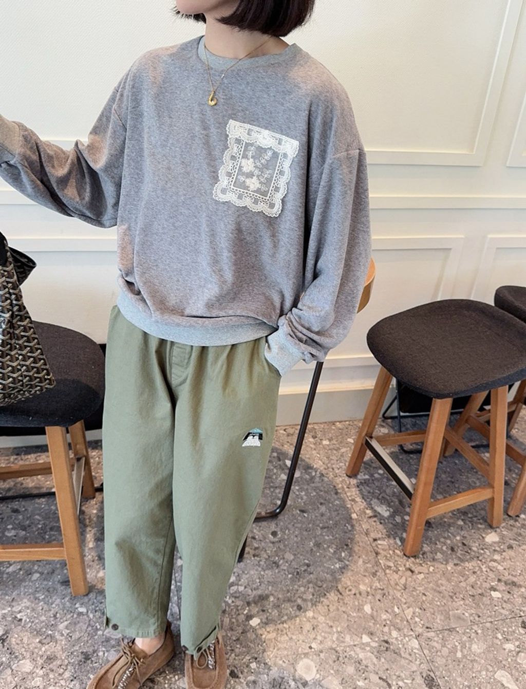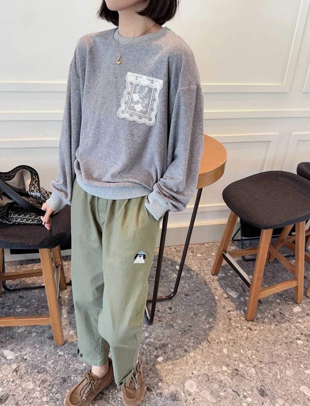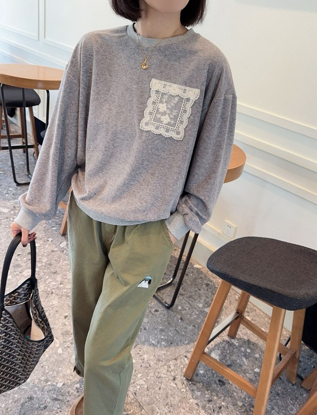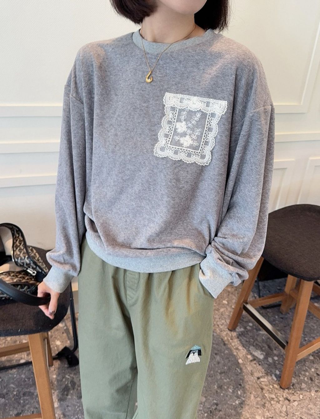 正韓 甜美蕾絲口袋質感上衣*灰*【S1105-122】