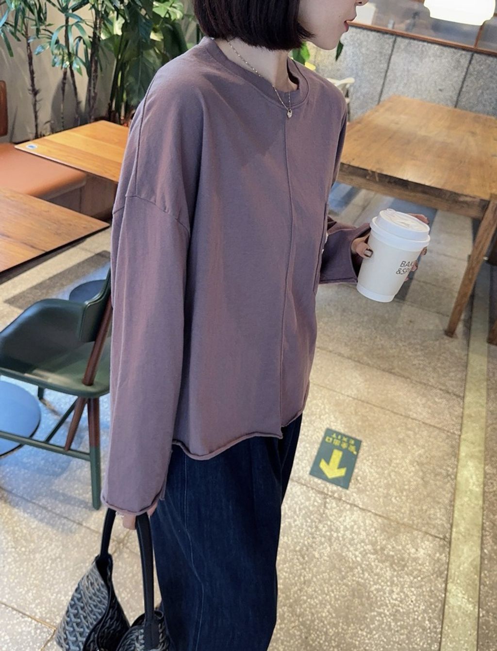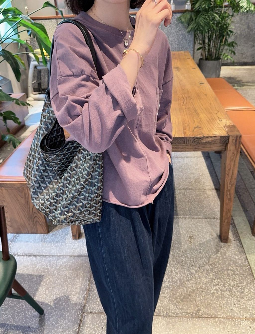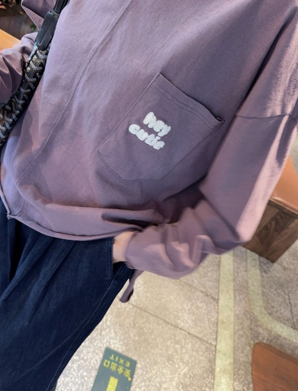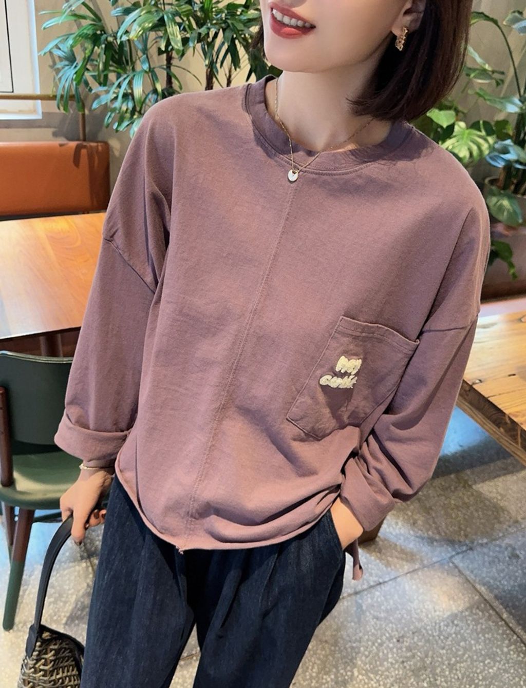 正韓 簡約時尚字母刺繡口袋設計質感長T*紫*【S1105-106】