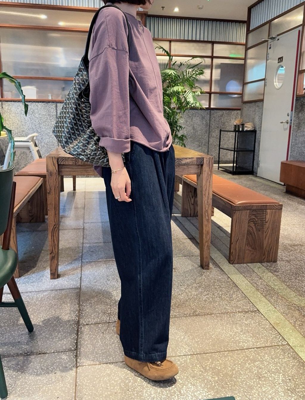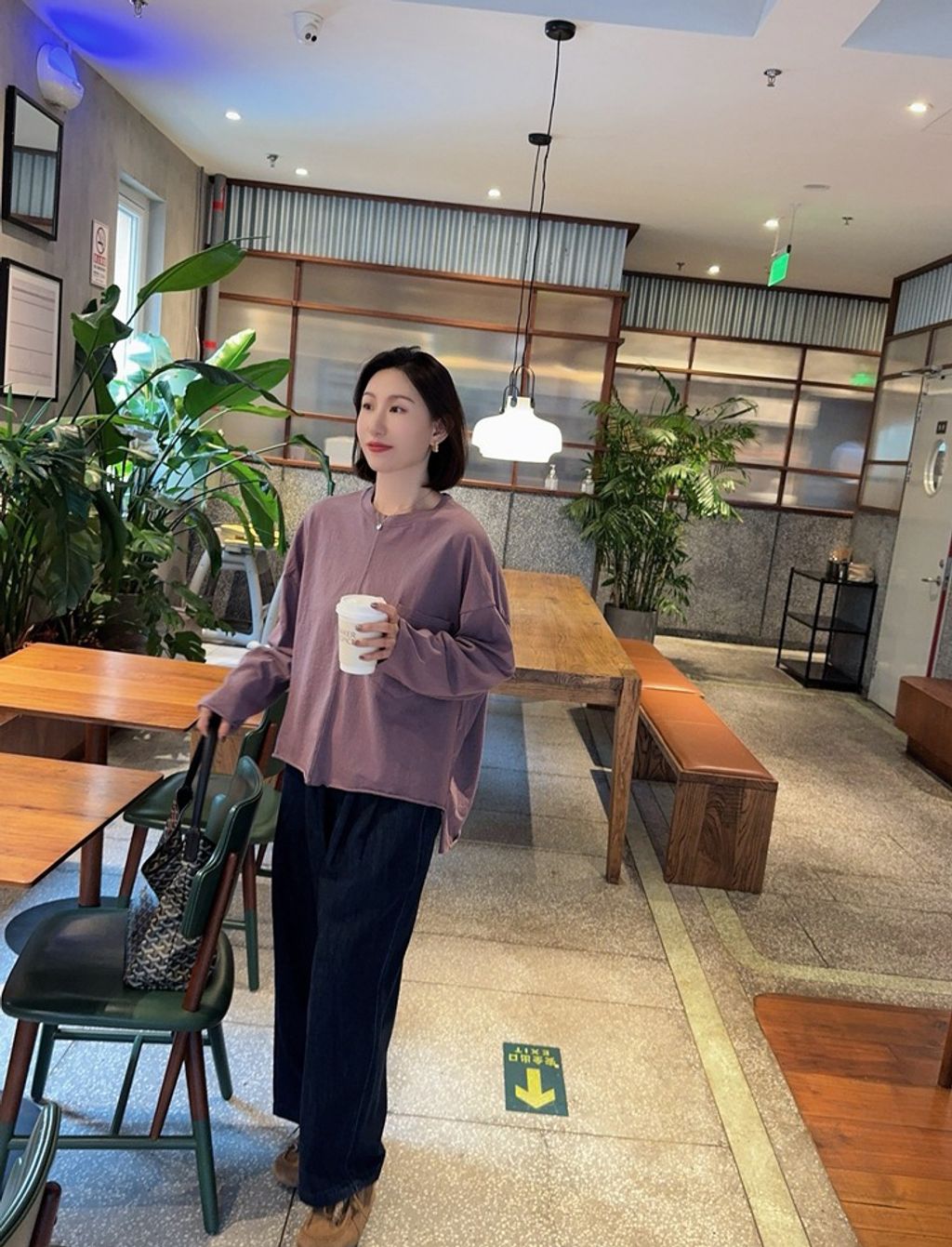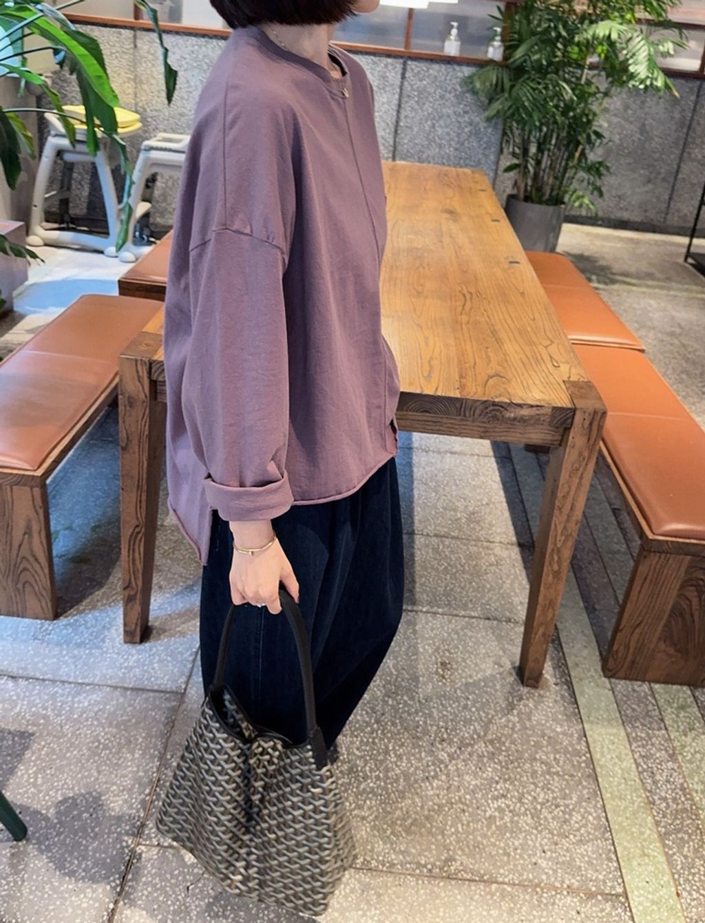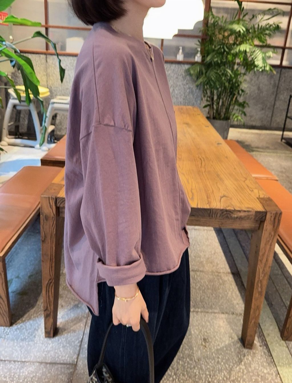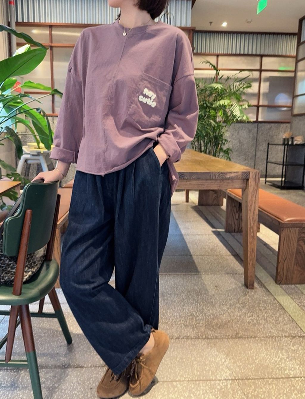正韓 簡約時尚字母刺繡口袋設計質感長T*紫*【S1105-106】