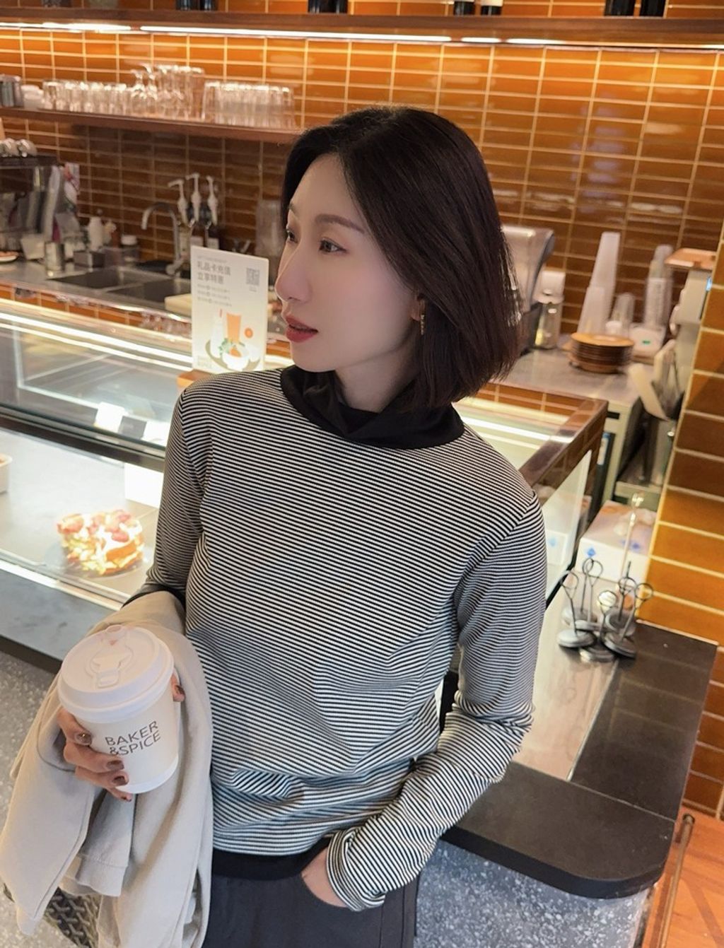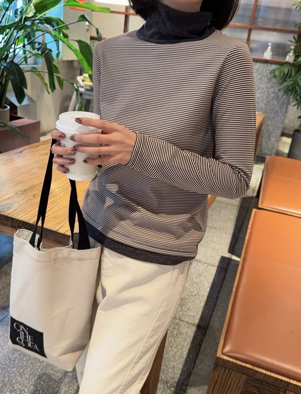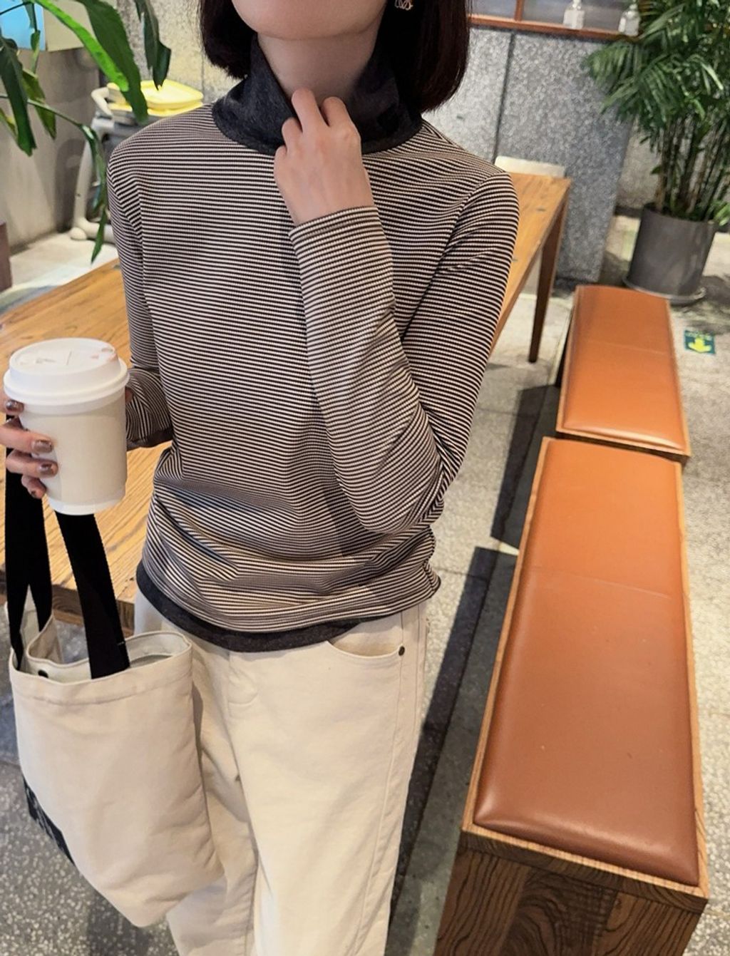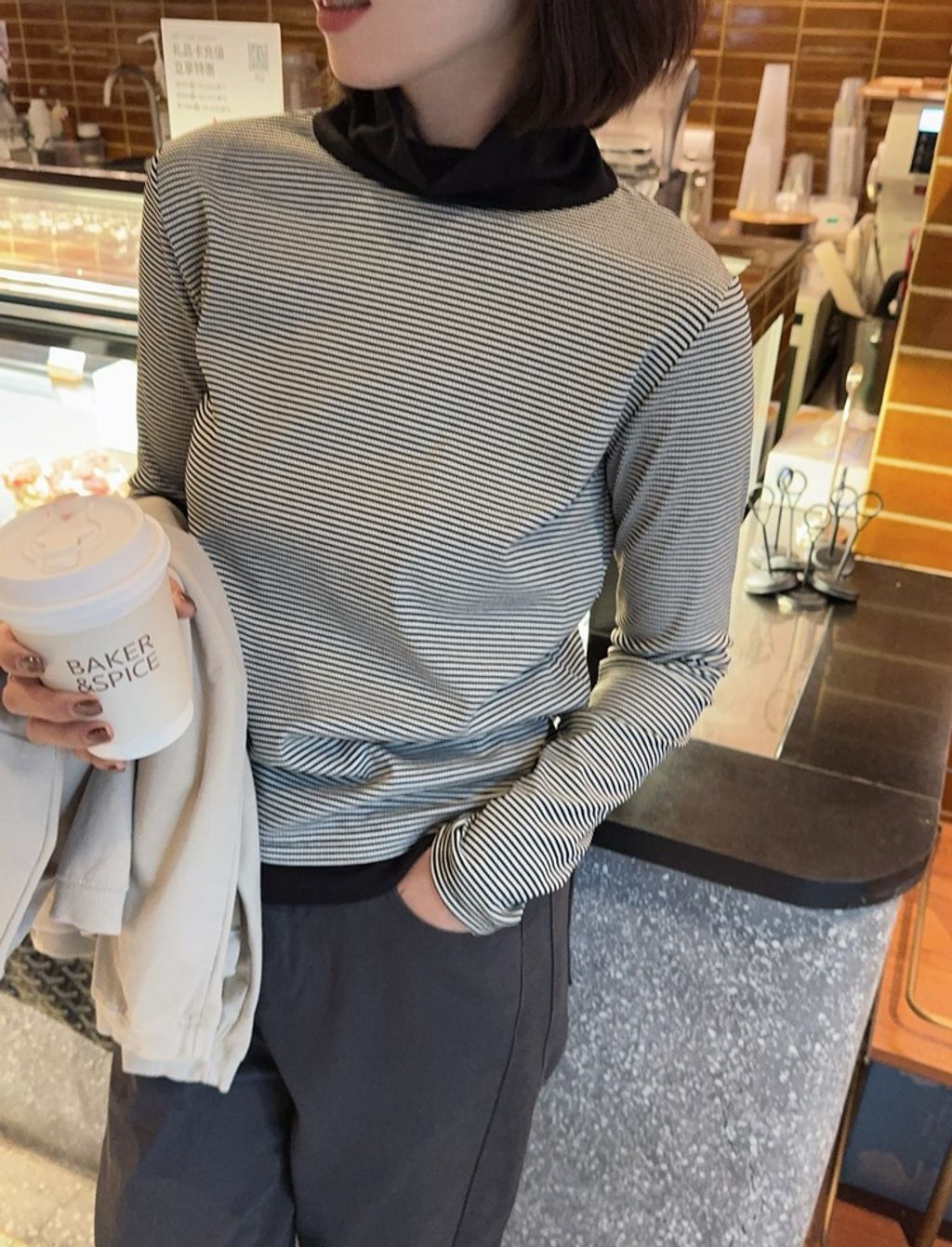 正韓 精緻拼接設計感條紋彈力長T*黑咖*【S1105-101】