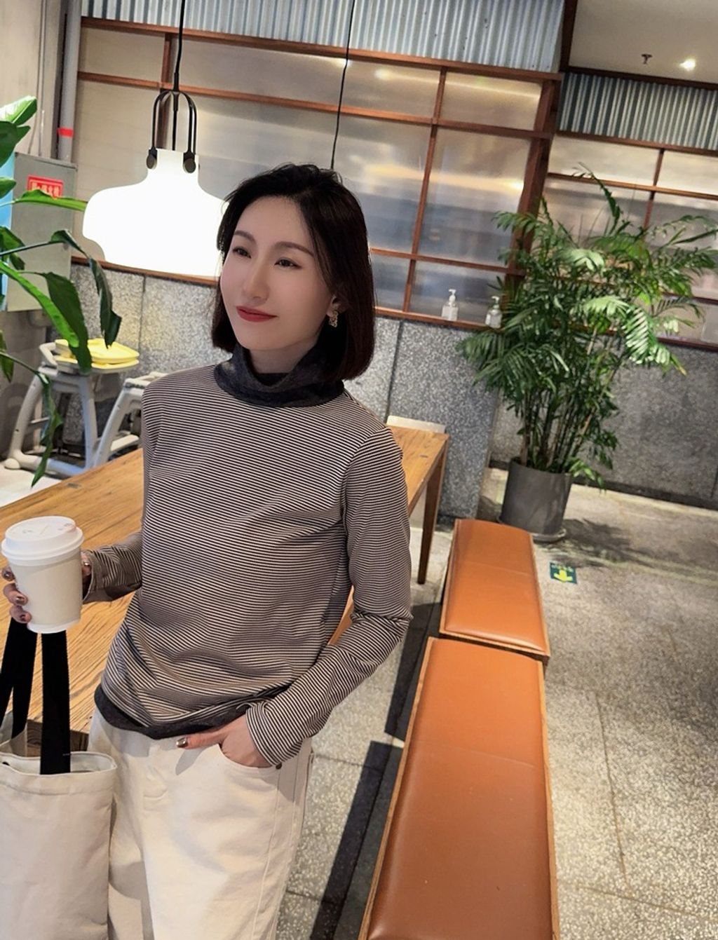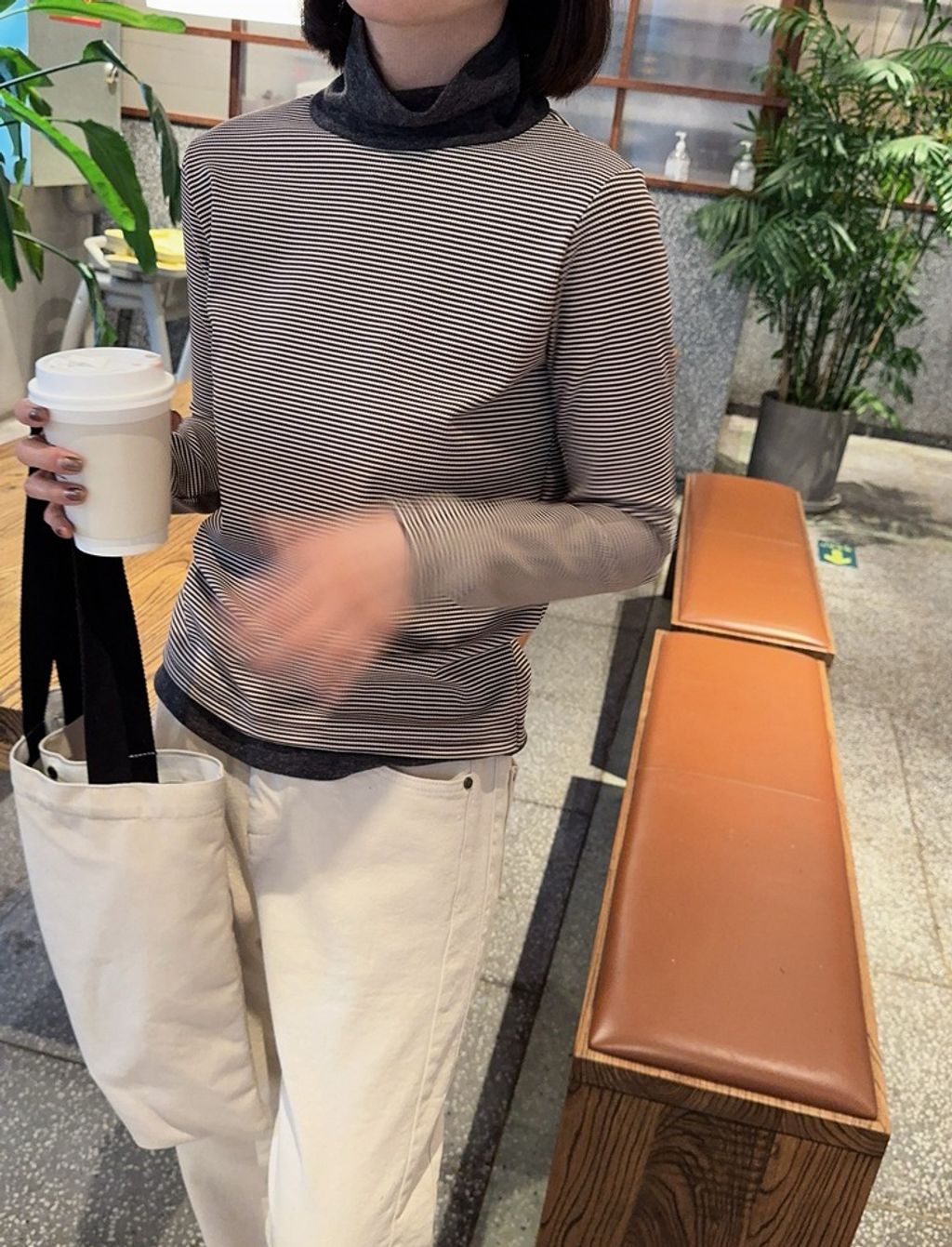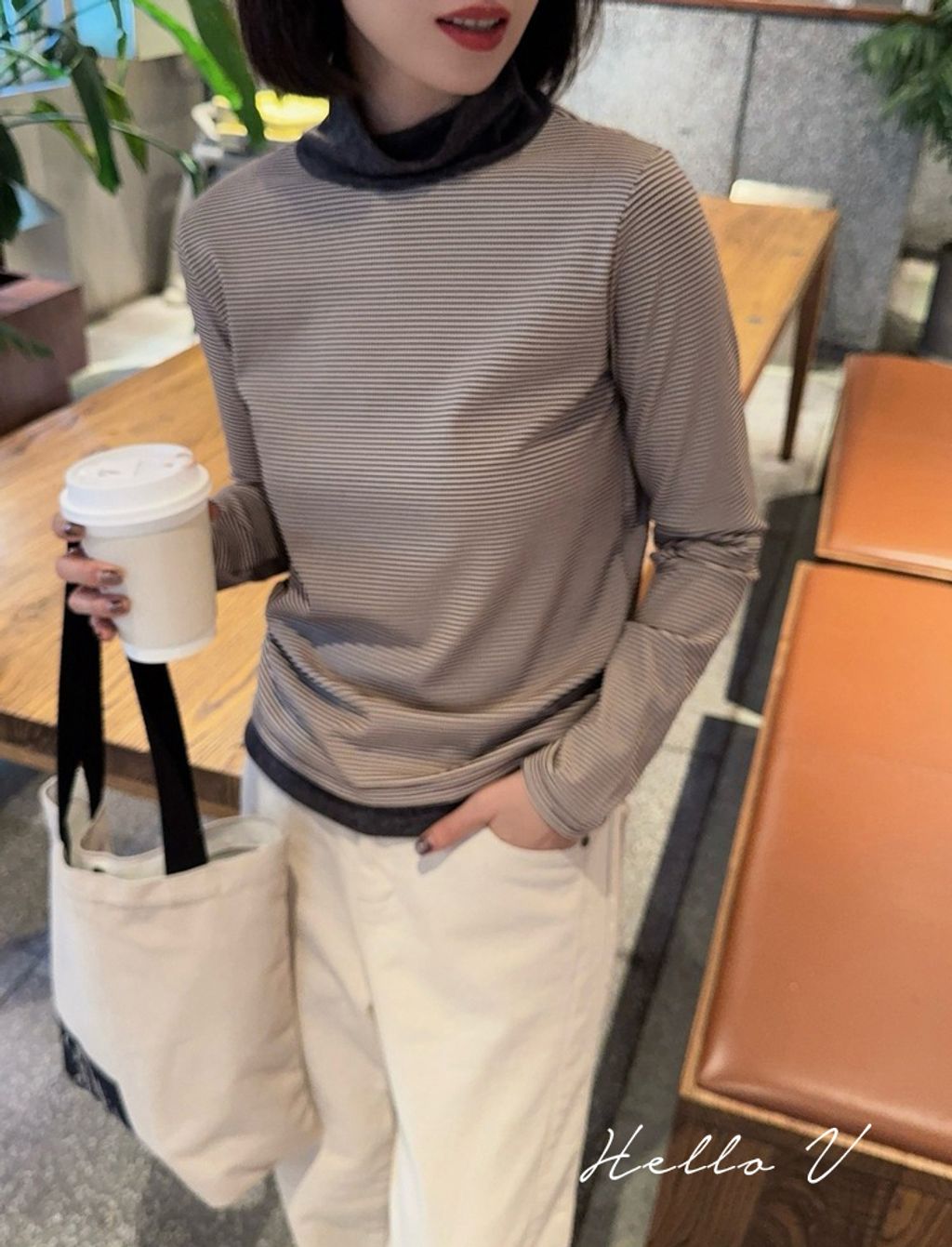 正韓 精緻拼接設計感條紋彈力長T*黑咖*【S1105-101】