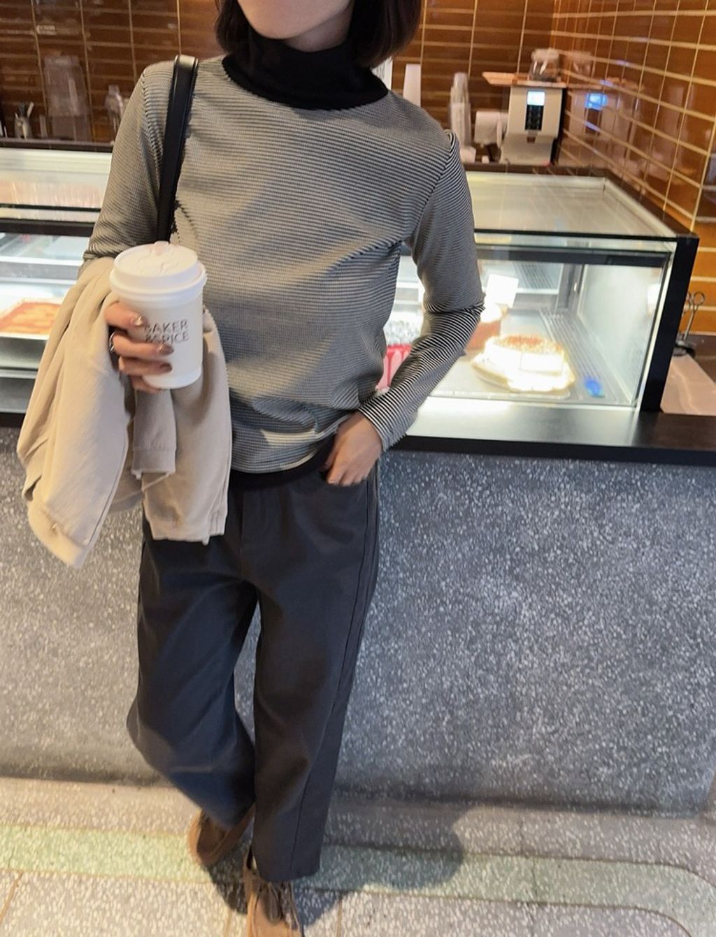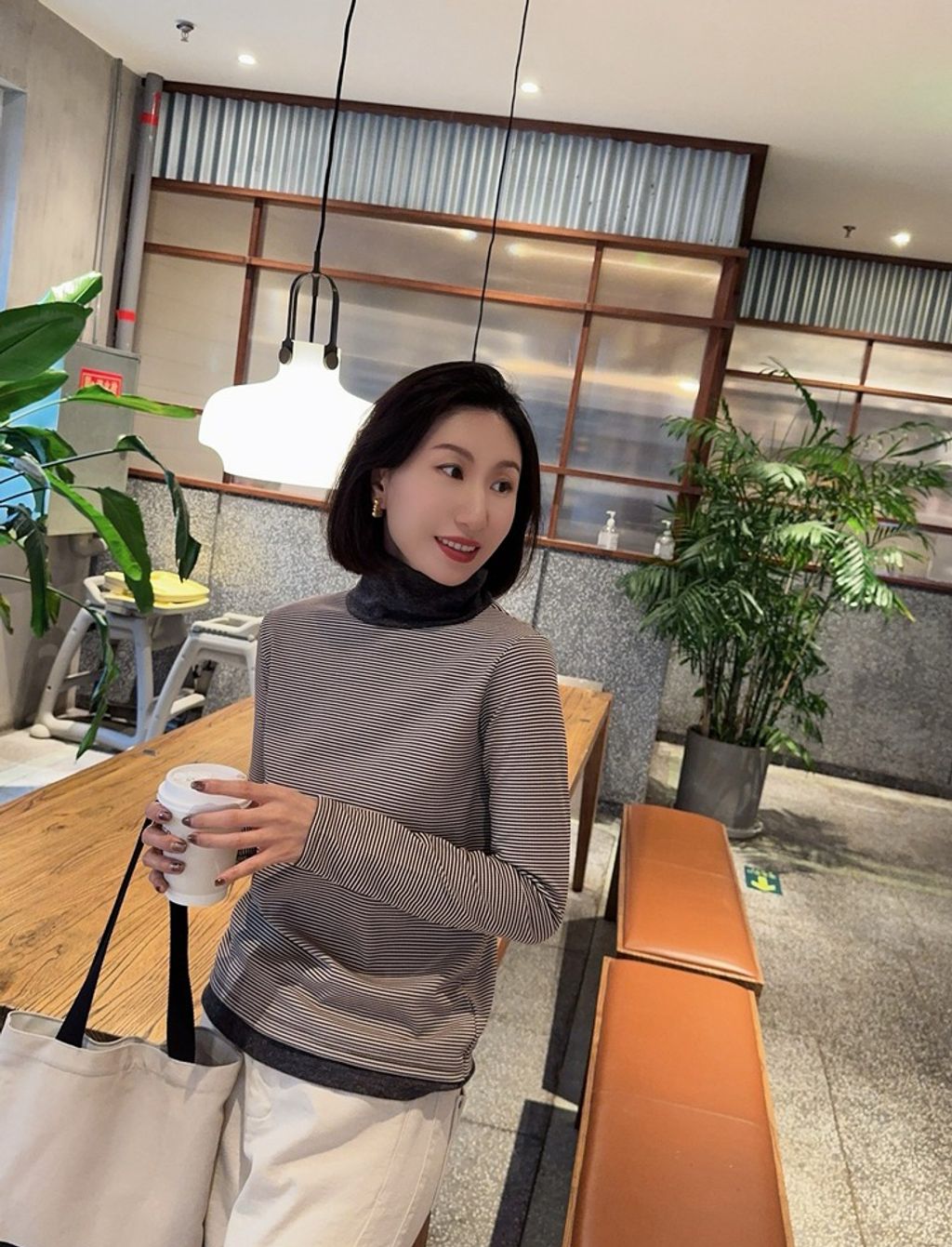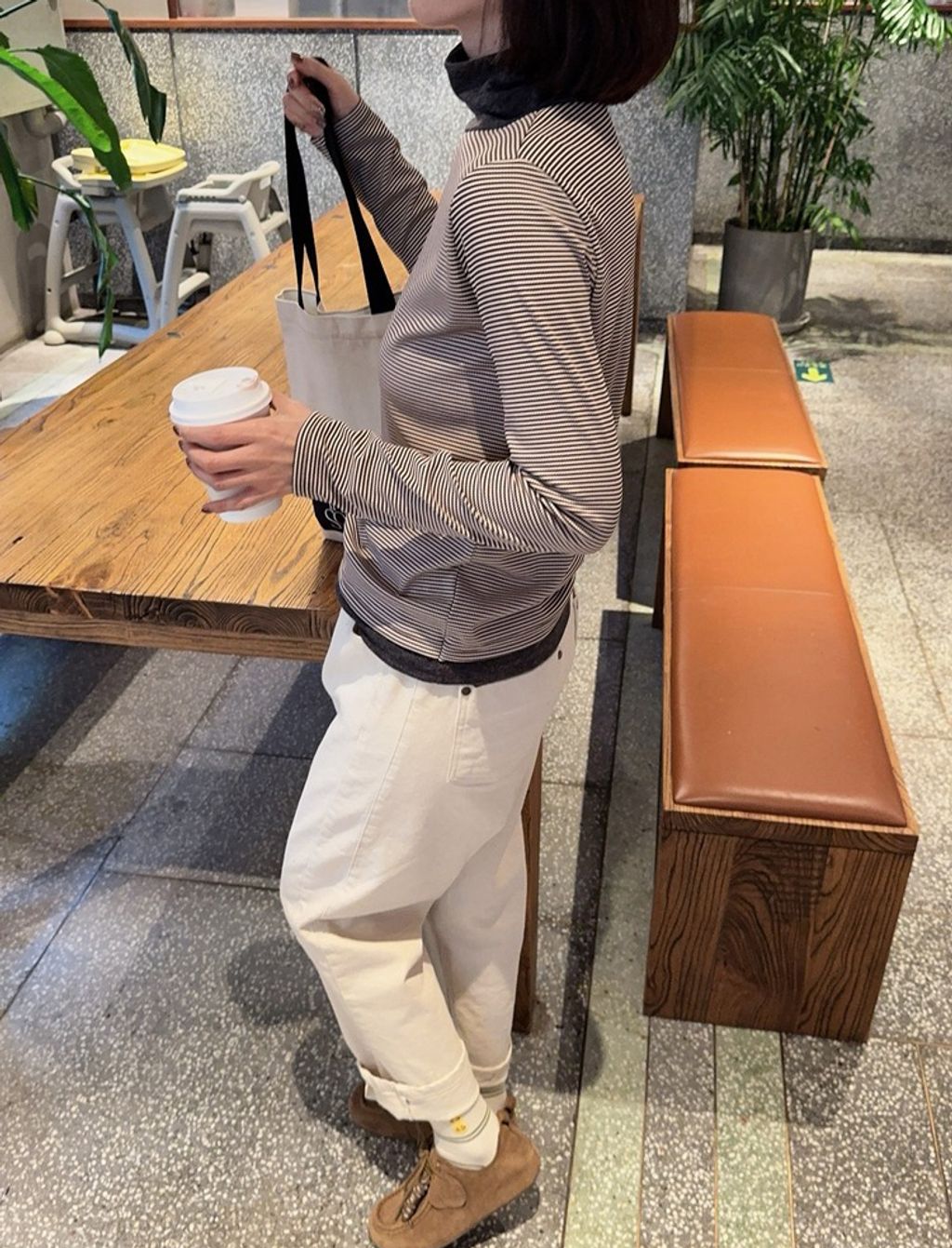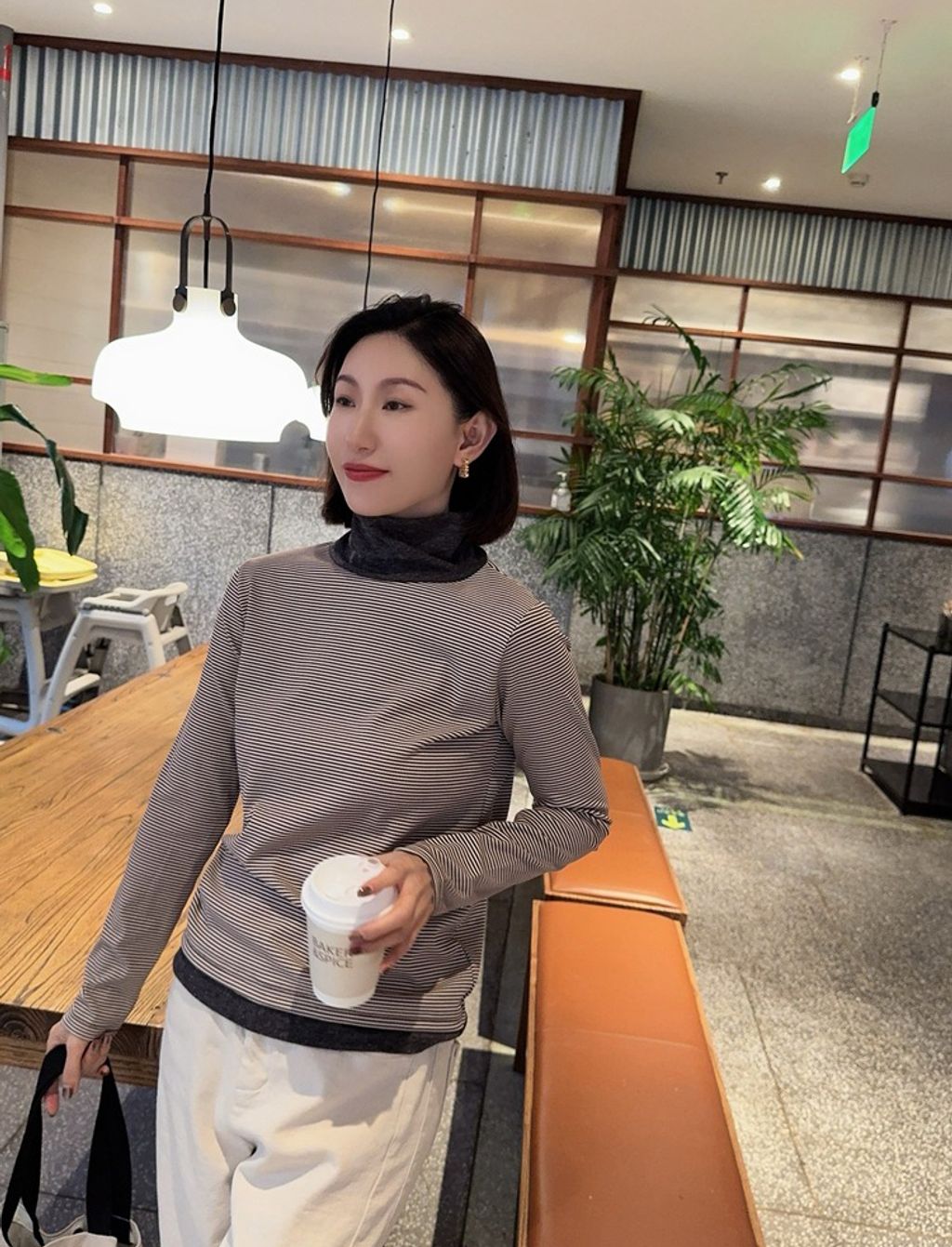正韓 精緻拼接設計感條紋彈力長T*黑咖*【S1105-101】