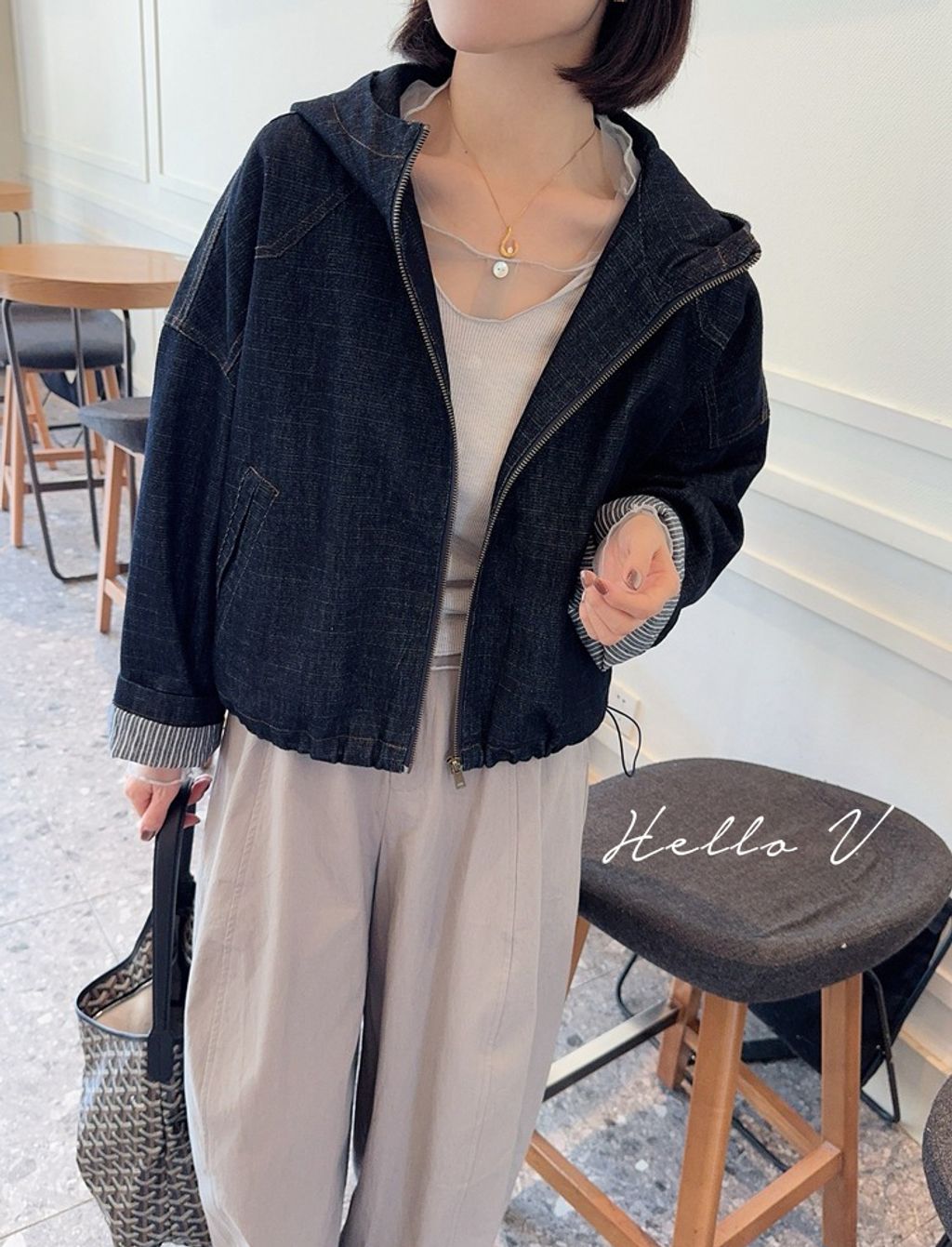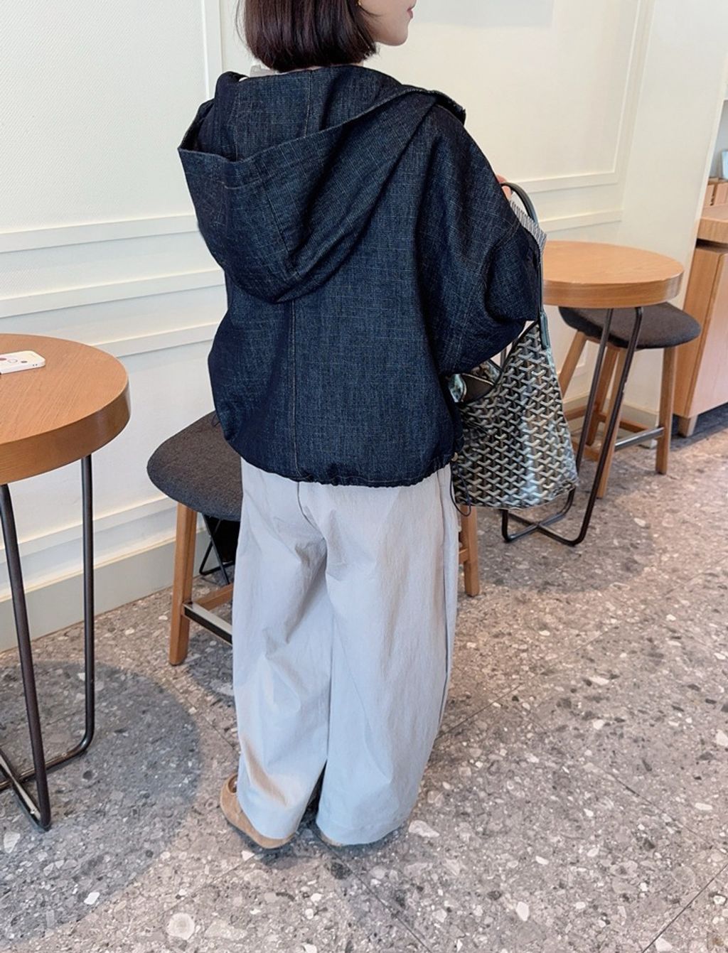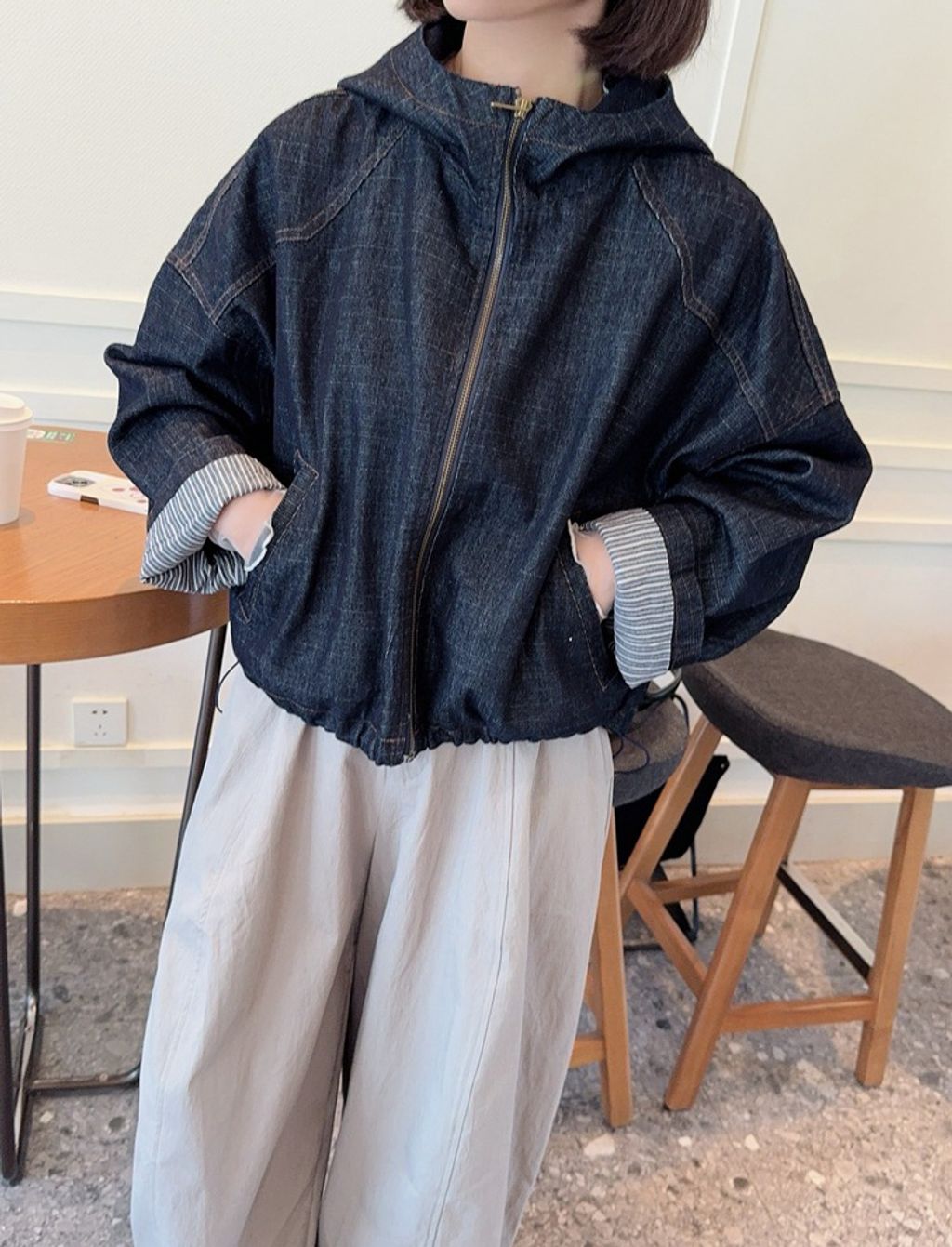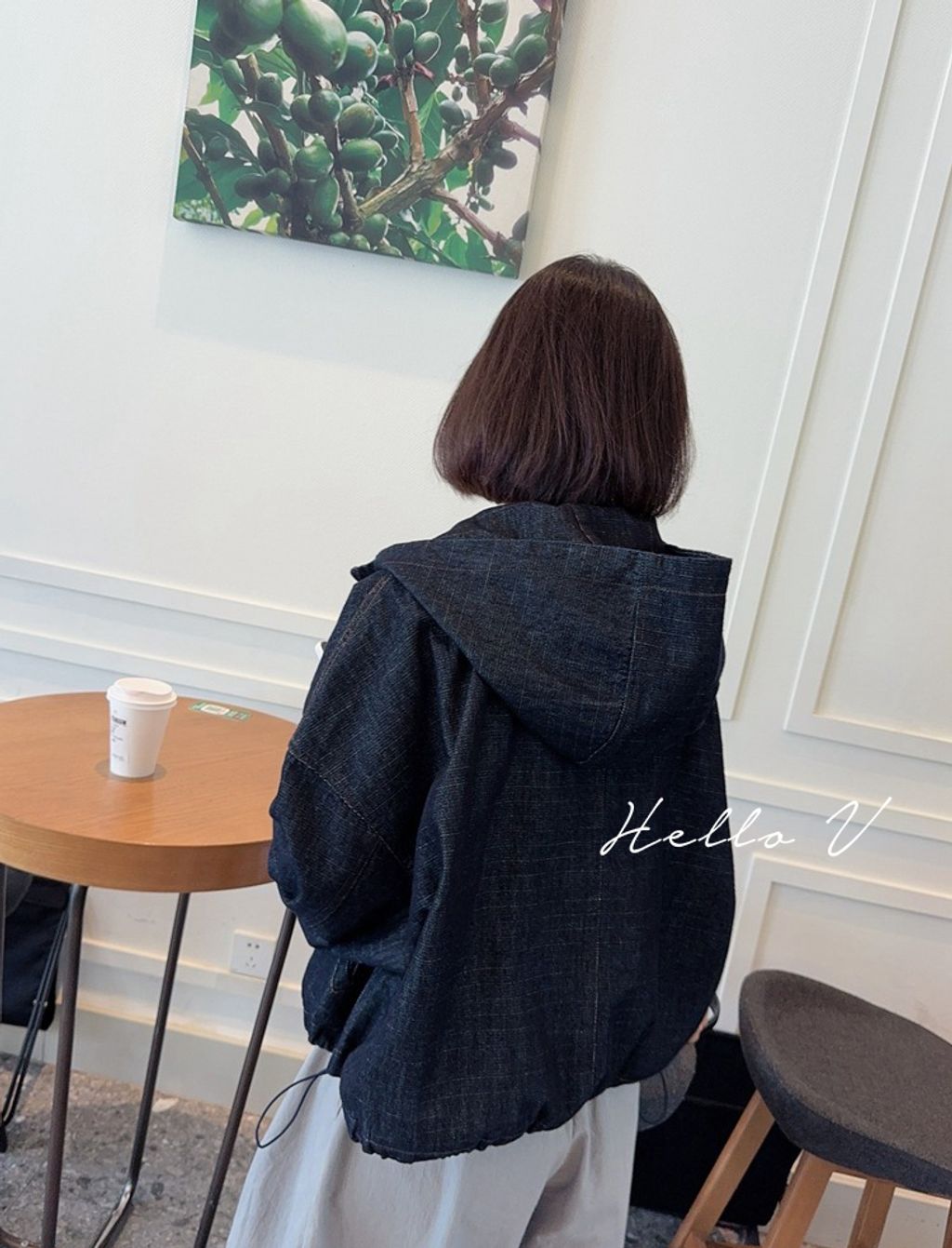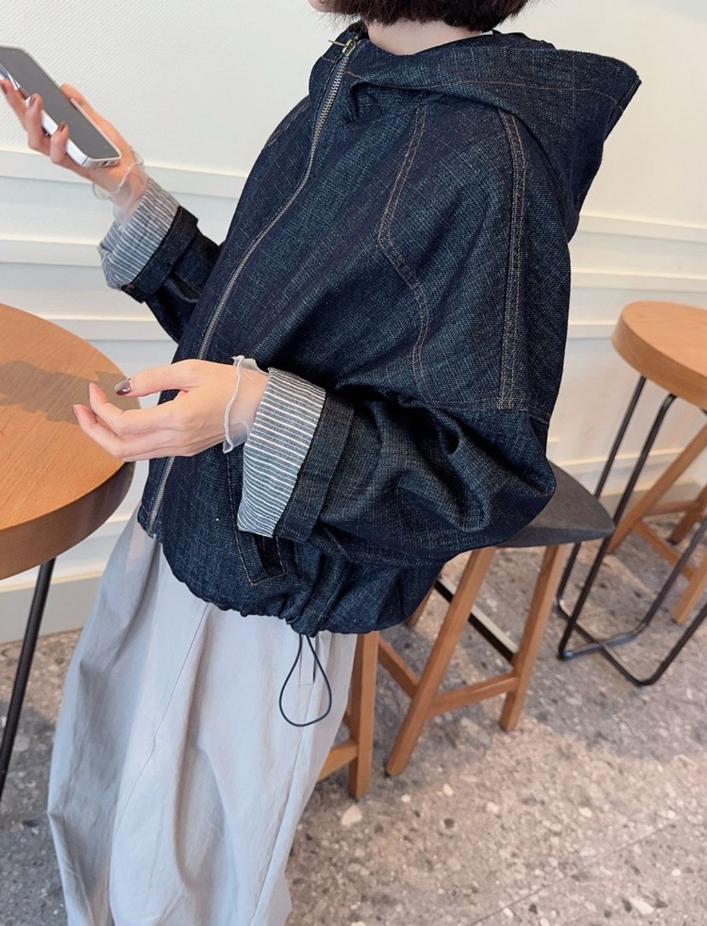正韓 設計款復古時尚抽繩連帽牛仔外套*深藍*【S1105-119】
