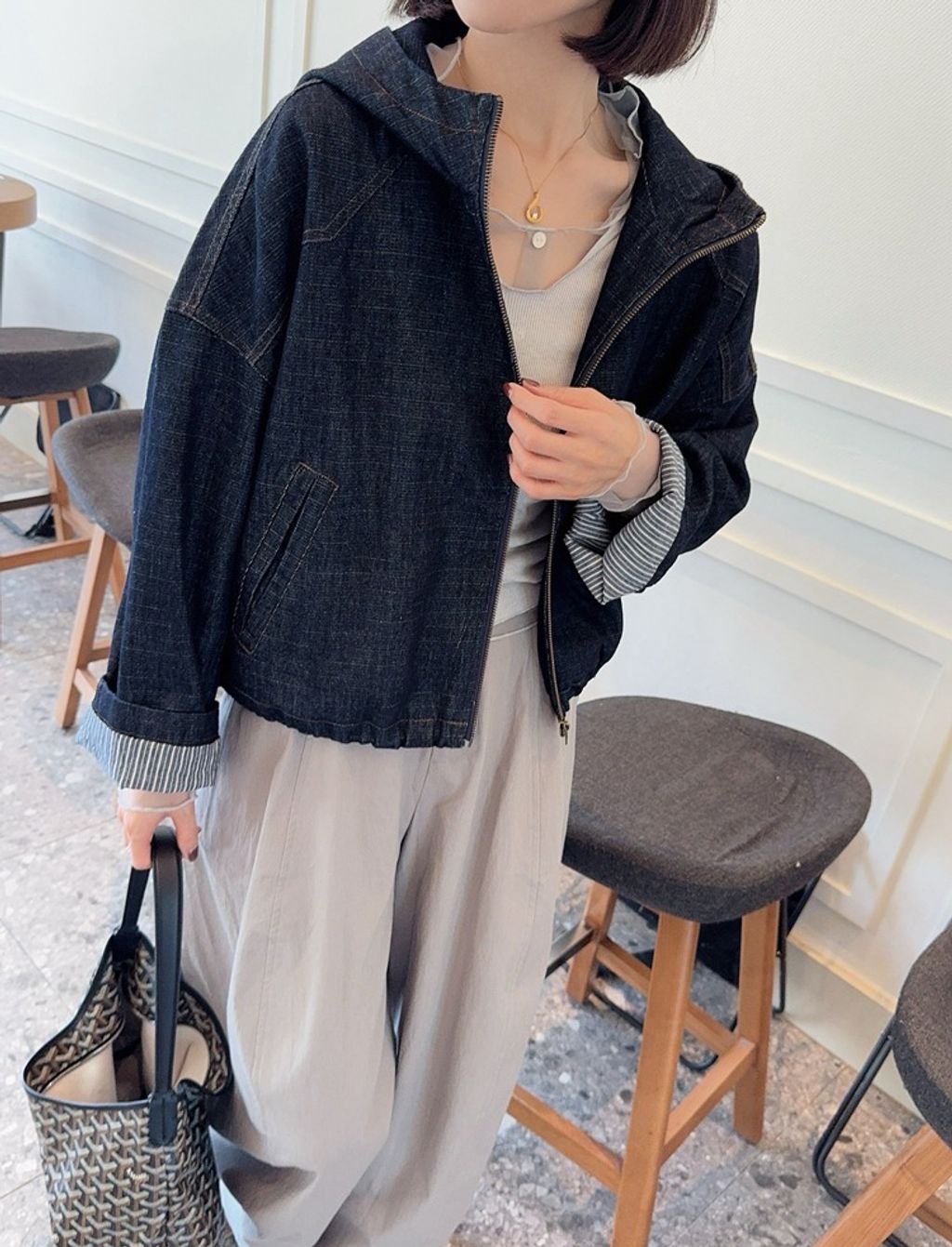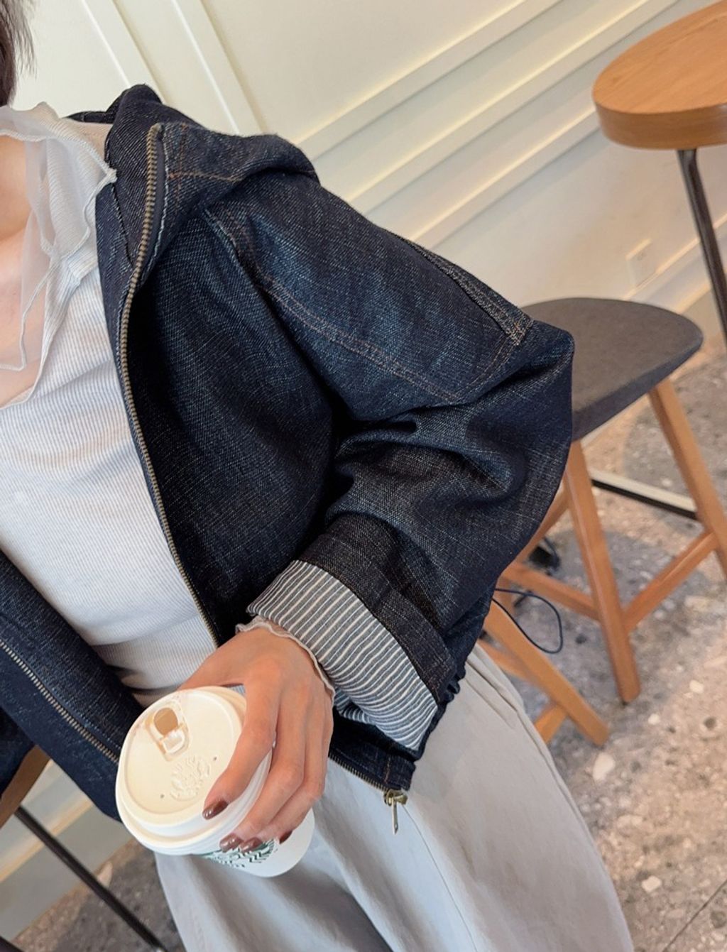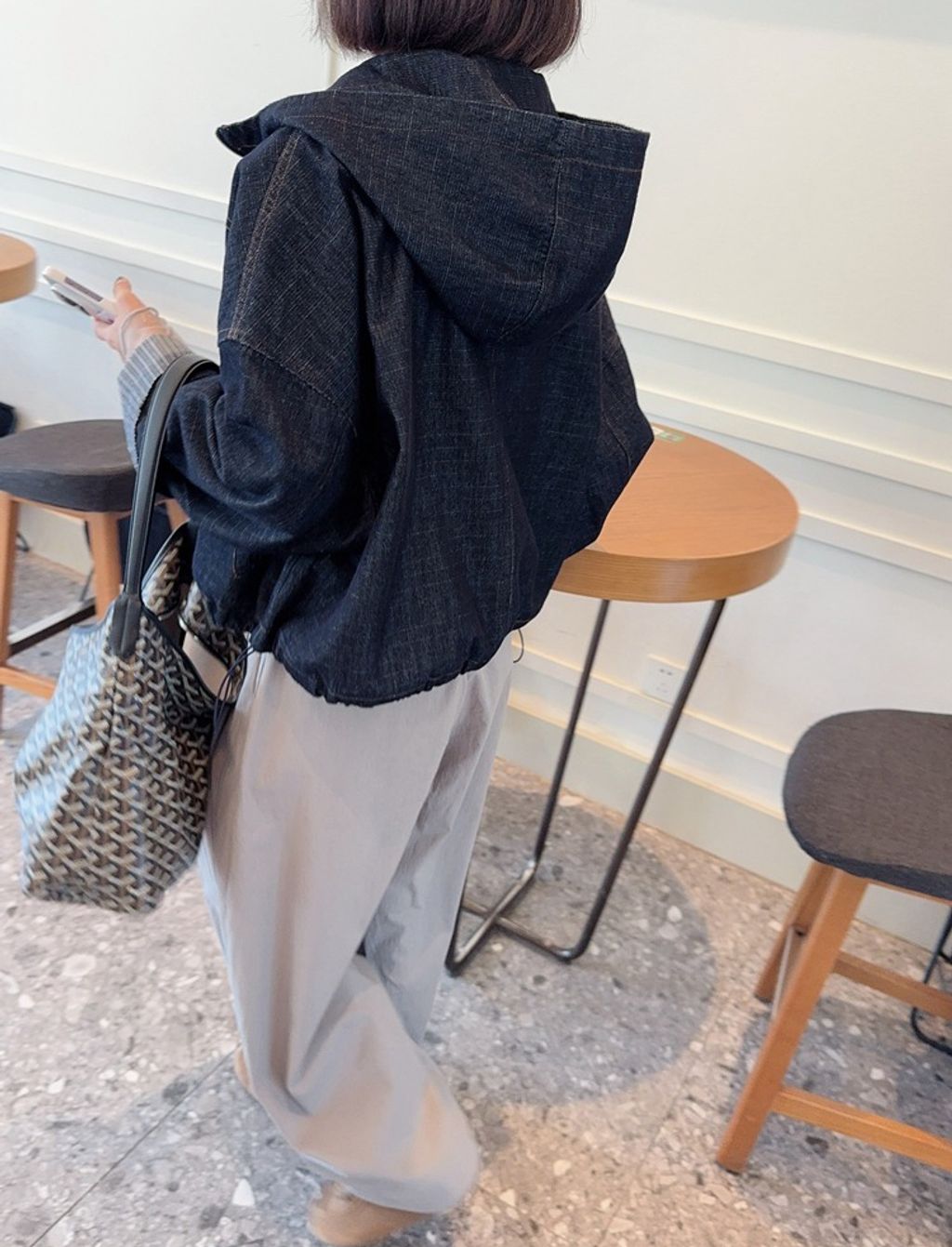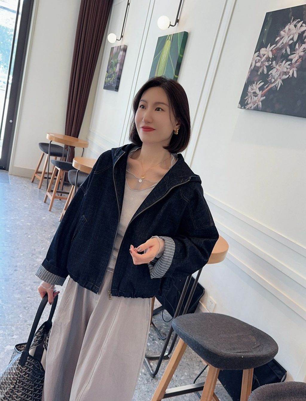 正韓 設計款復古時尚抽繩連帽牛仔外套*深藍*【S1105-119】