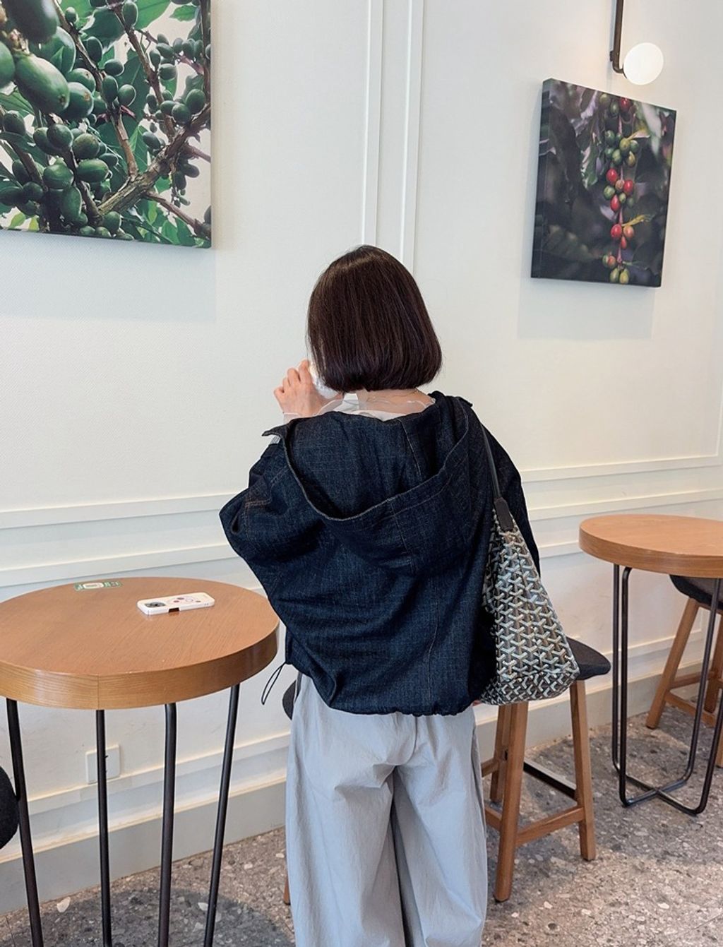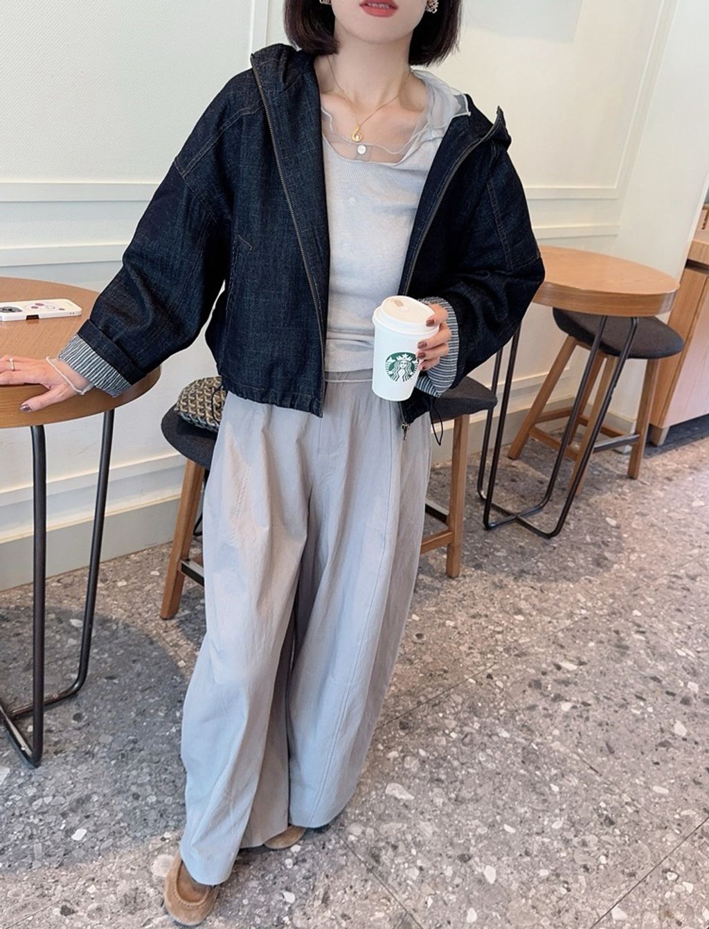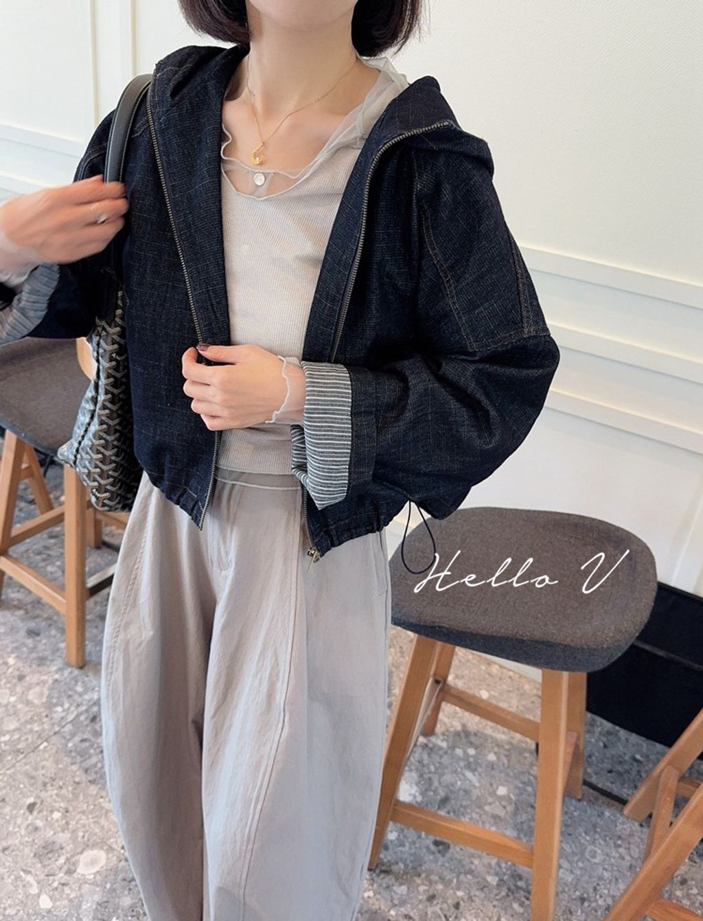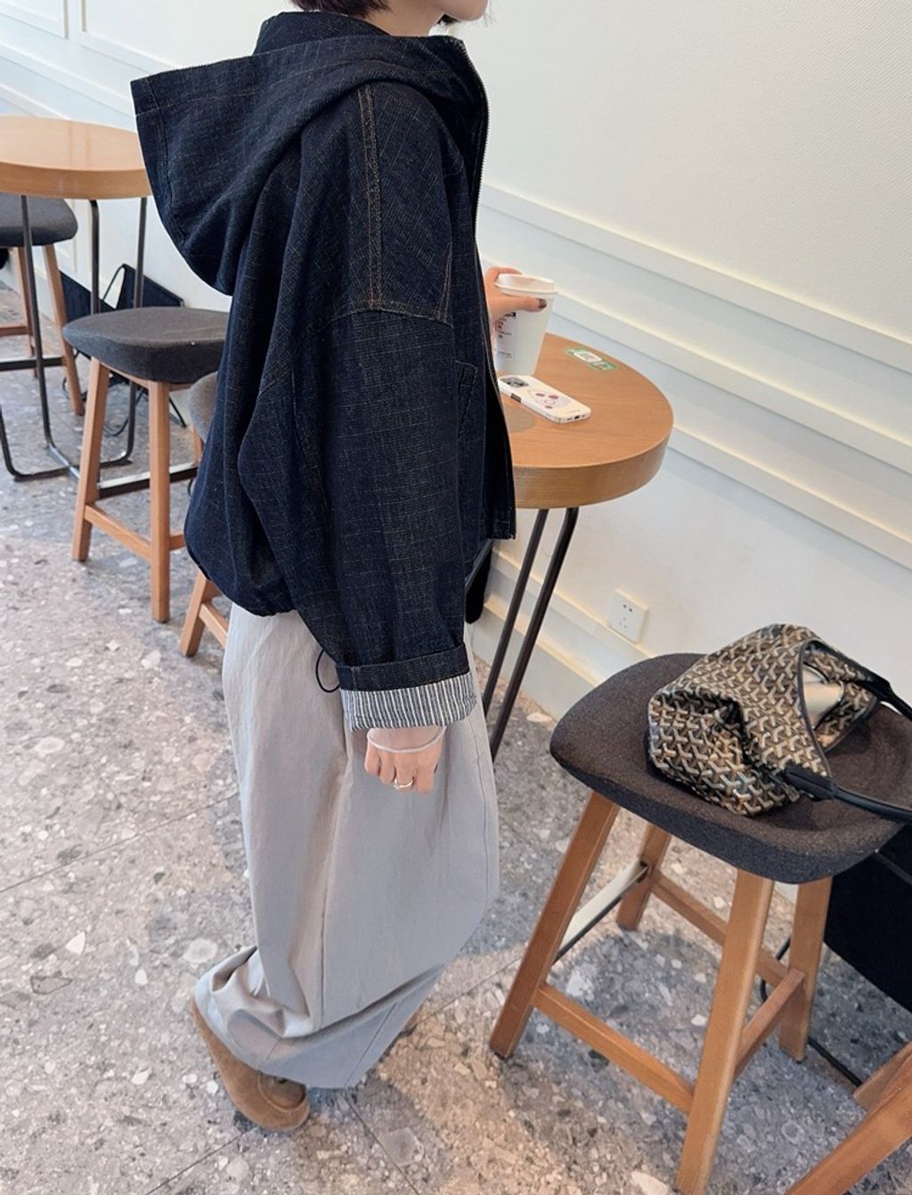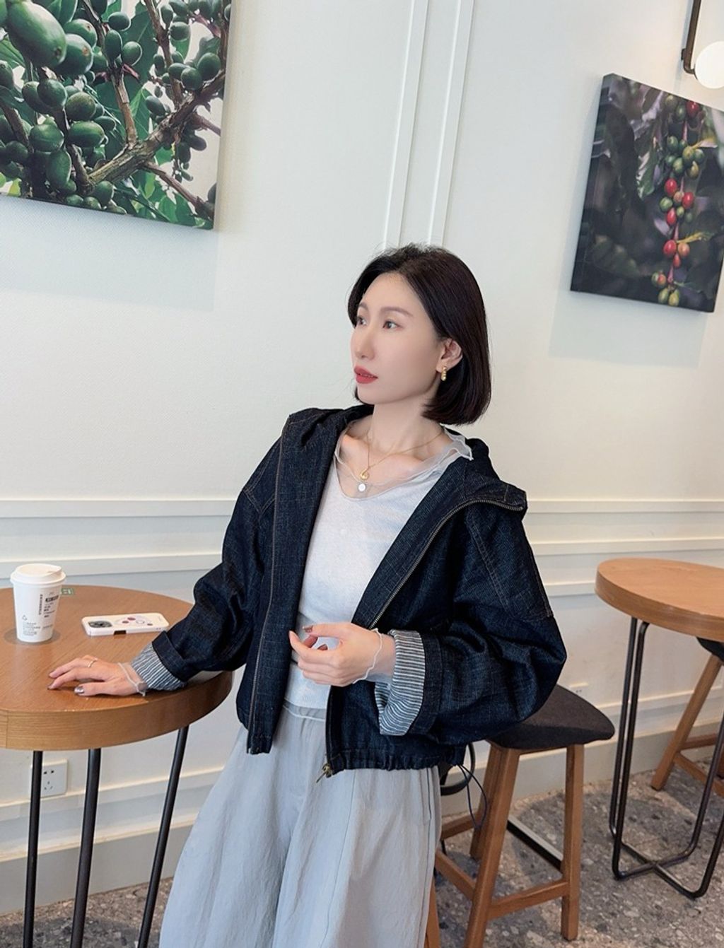 正韓 設計款復古時尚抽繩連帽牛仔外套*深藍*【S1105-119】