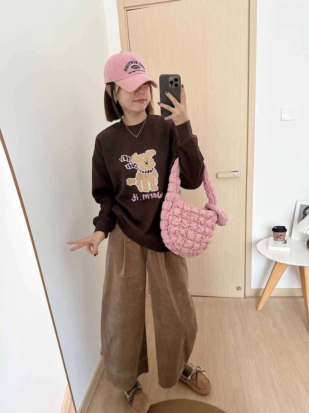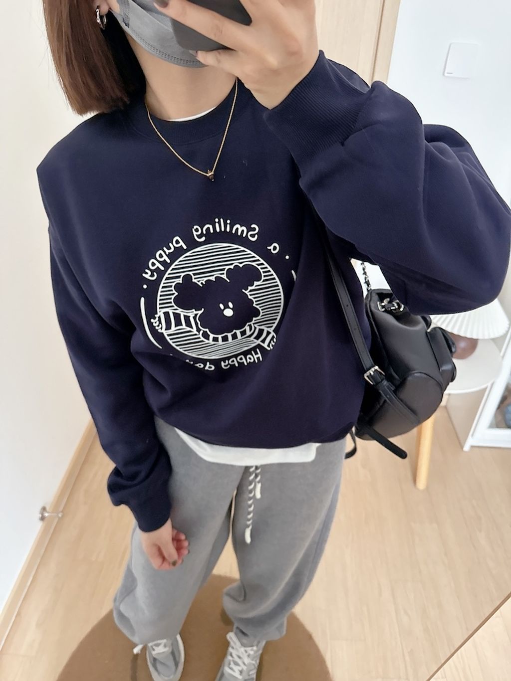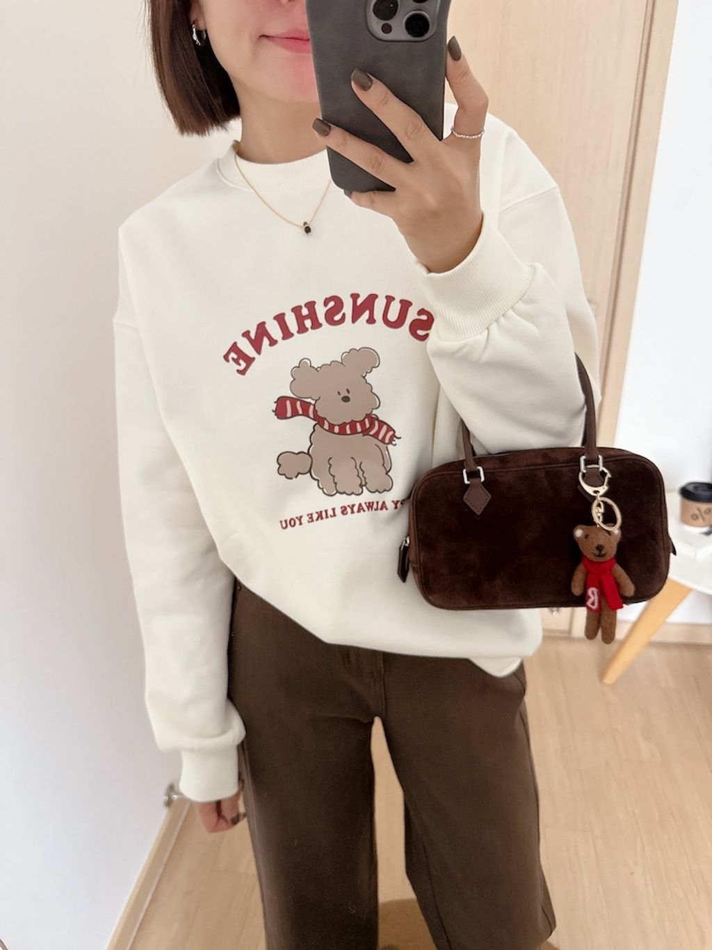 童趣小熊圖案刷毛質感大學T *灰藍白棕*【S1105-83】