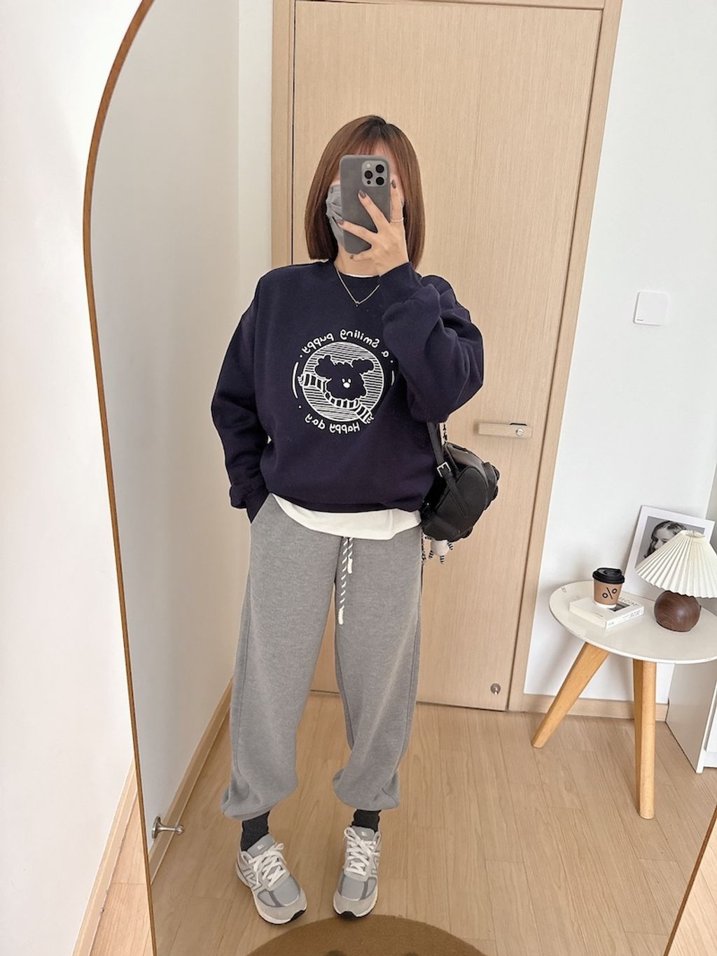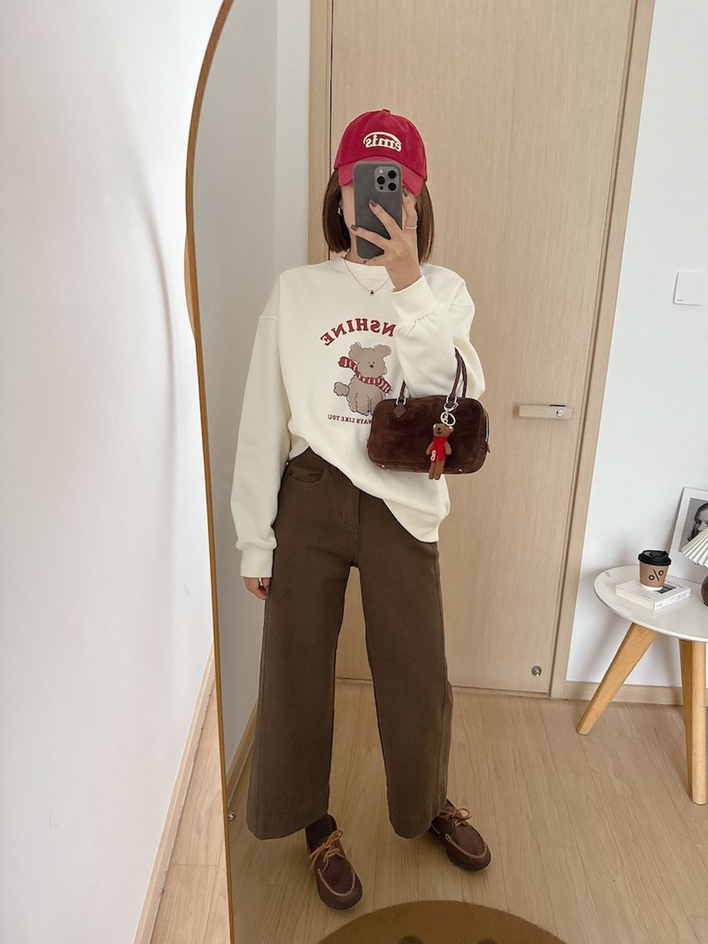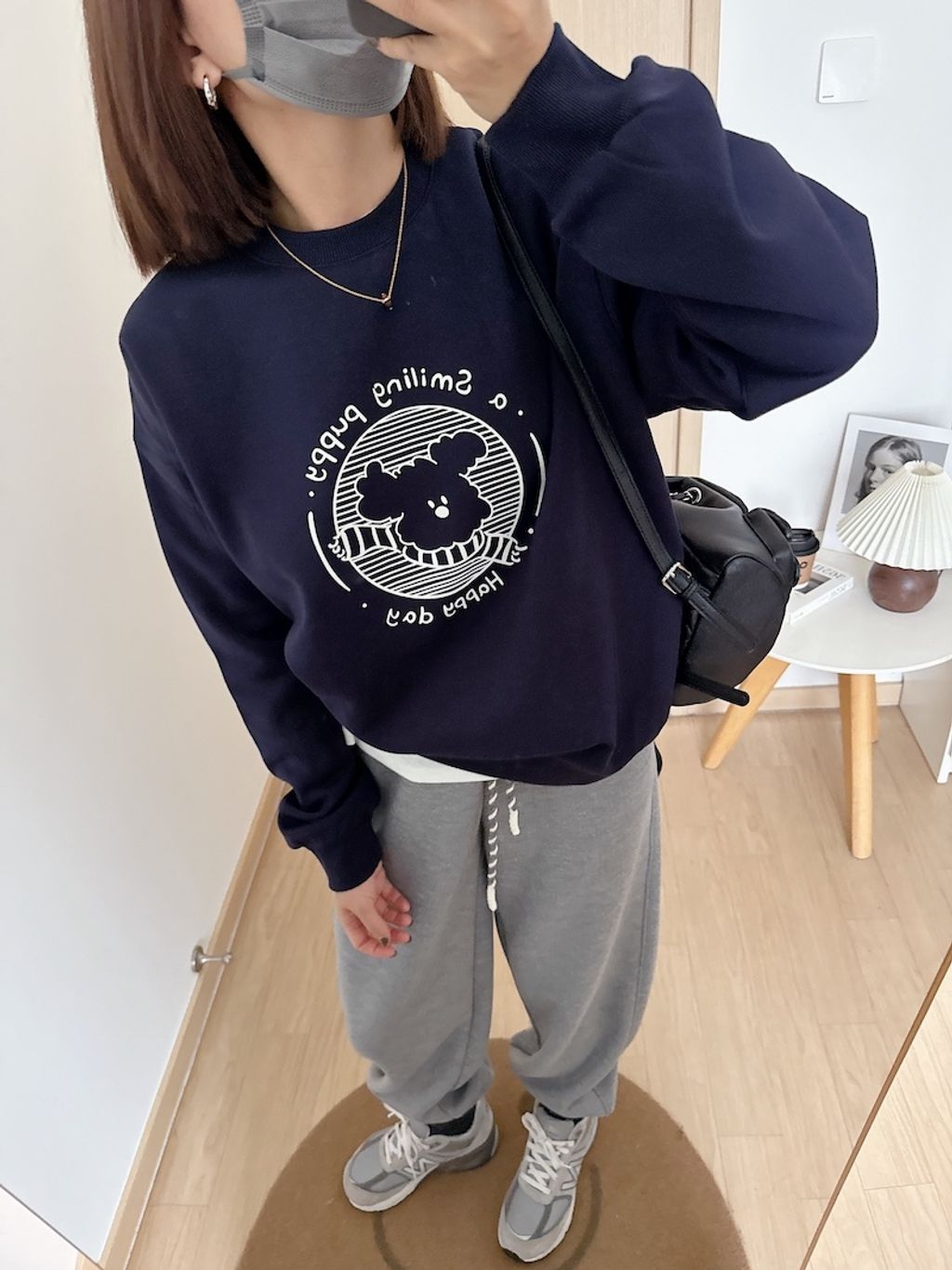 童趣小熊圖案刷毛質感大學T *灰藍白棕*【S1105-83】