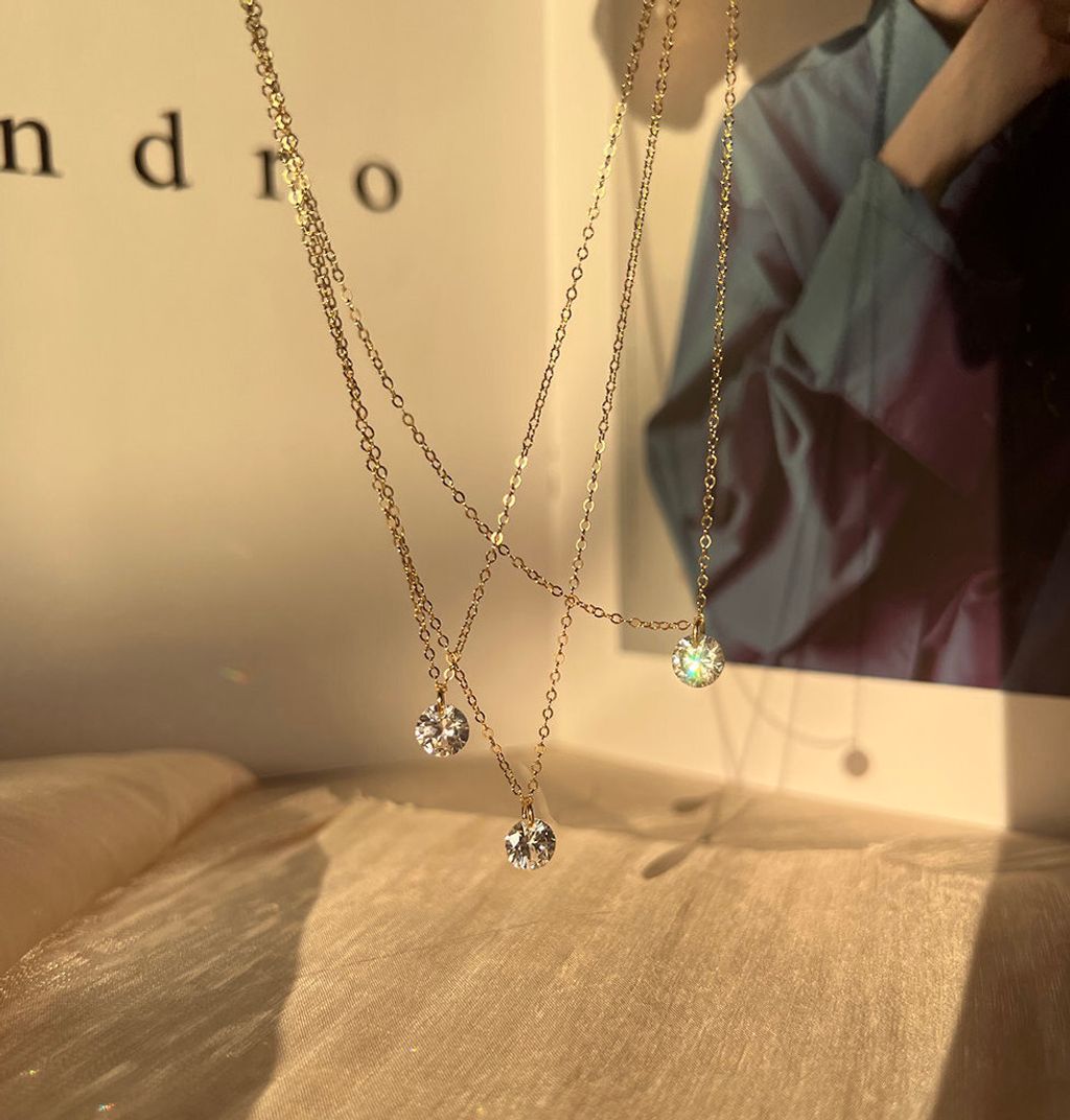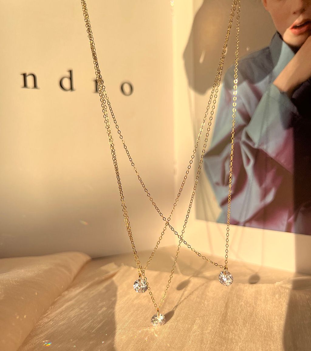 設計款極簡閃亮水鑽14K包金項鍊鎖骨鍊*圖片色*【S0323-89】