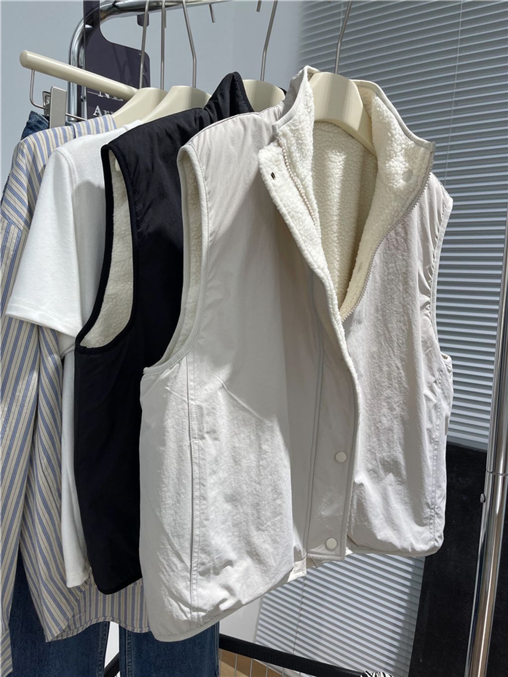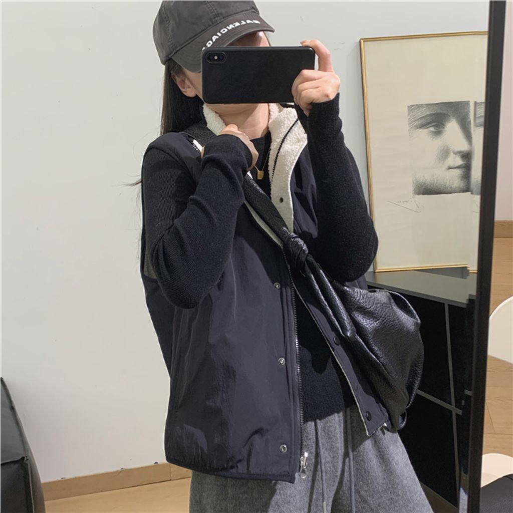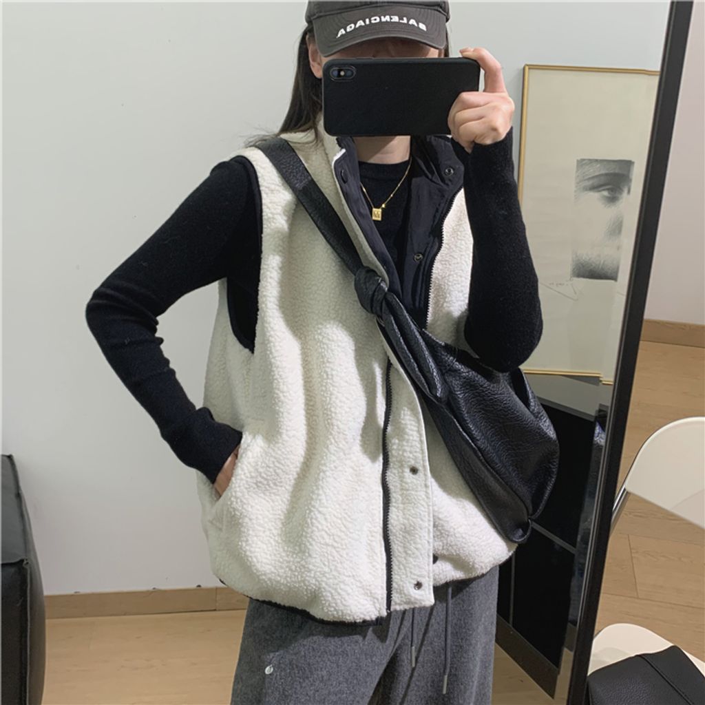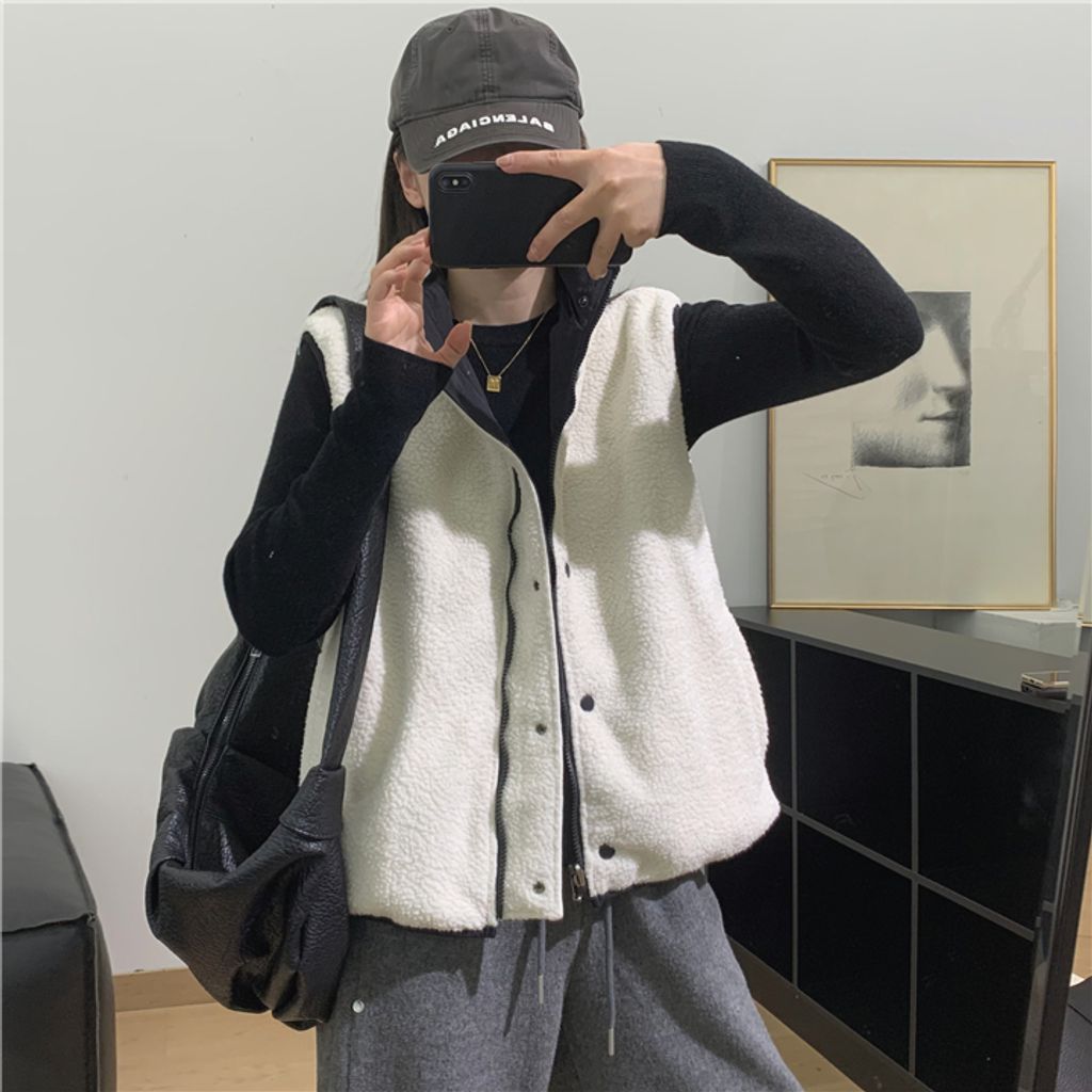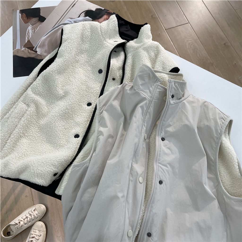 韓系復古兩面穿毛毛保暖背心*黑灰白*【S1105-31】