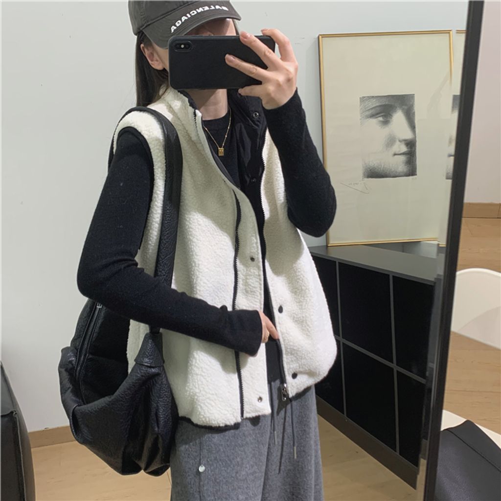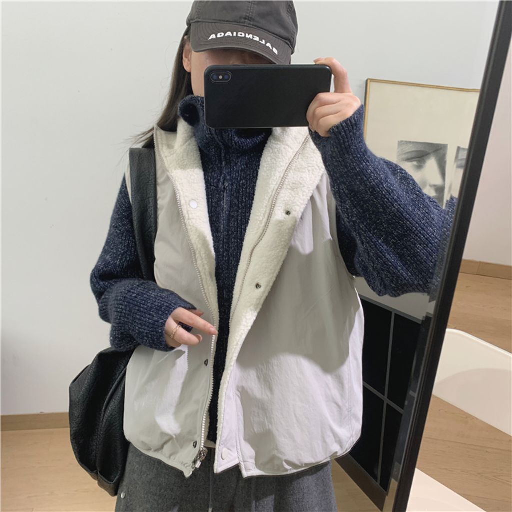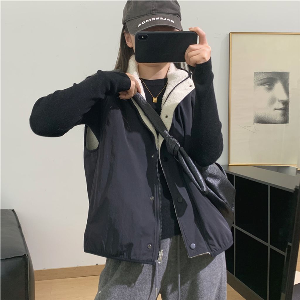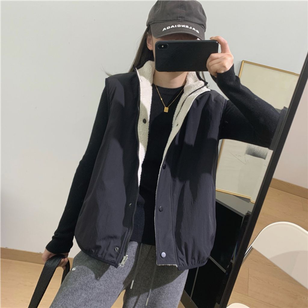 韓系復古兩面穿毛毛保暖背心*黑灰白*【S1105-31】