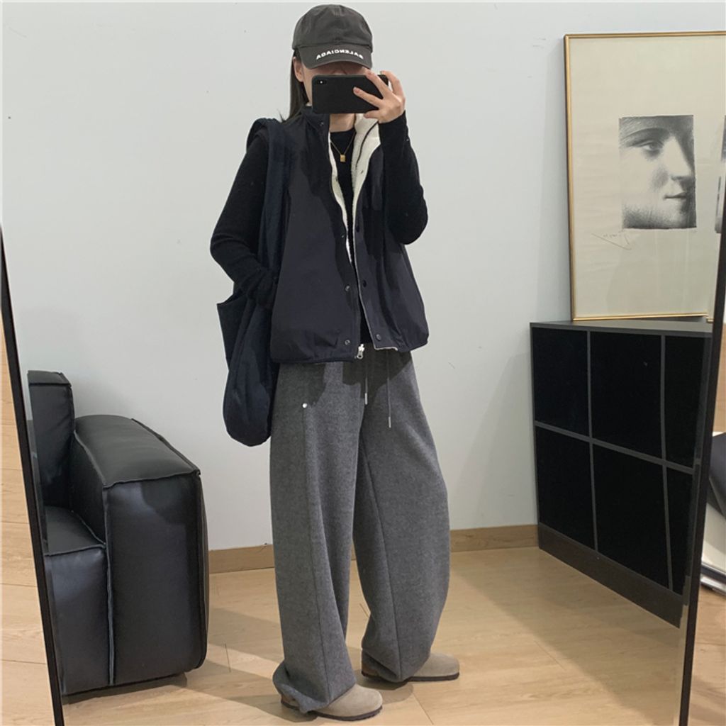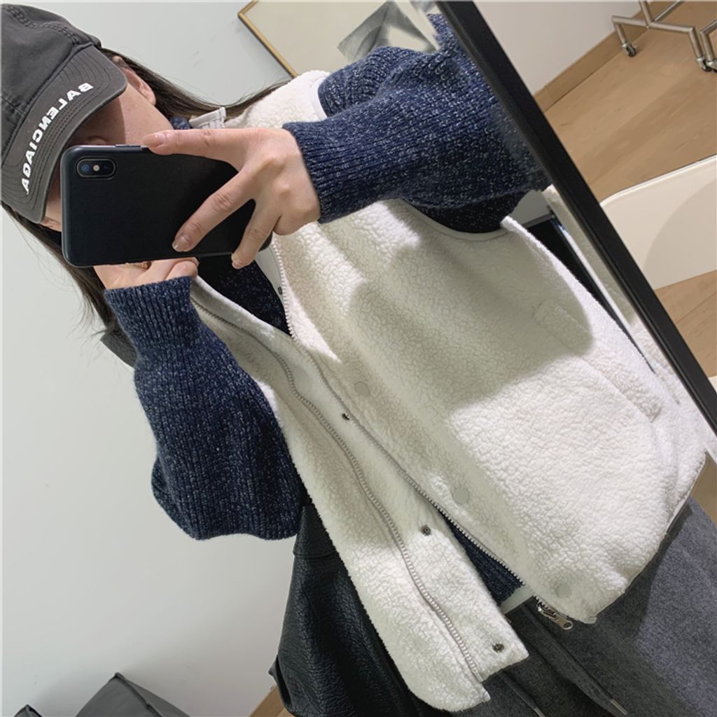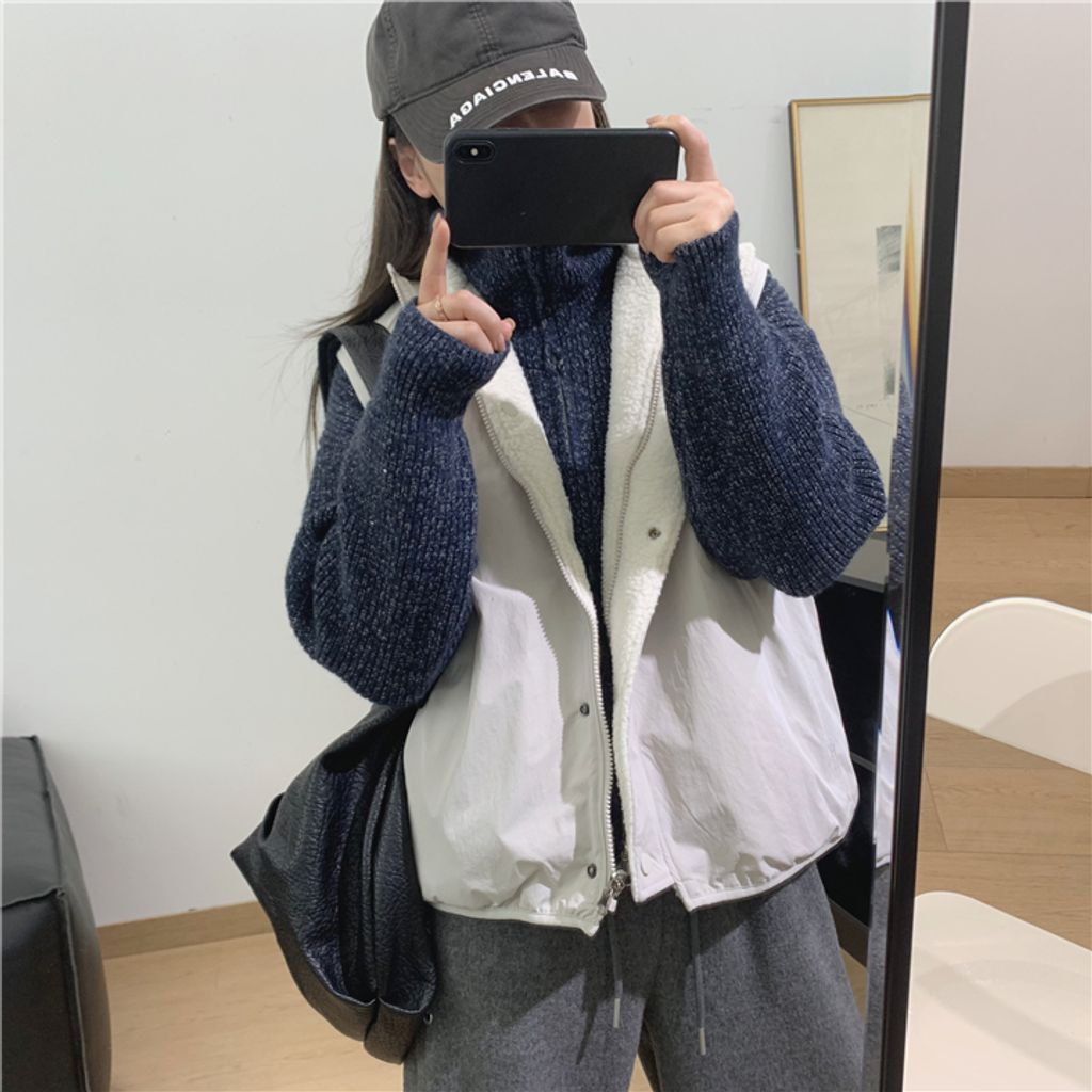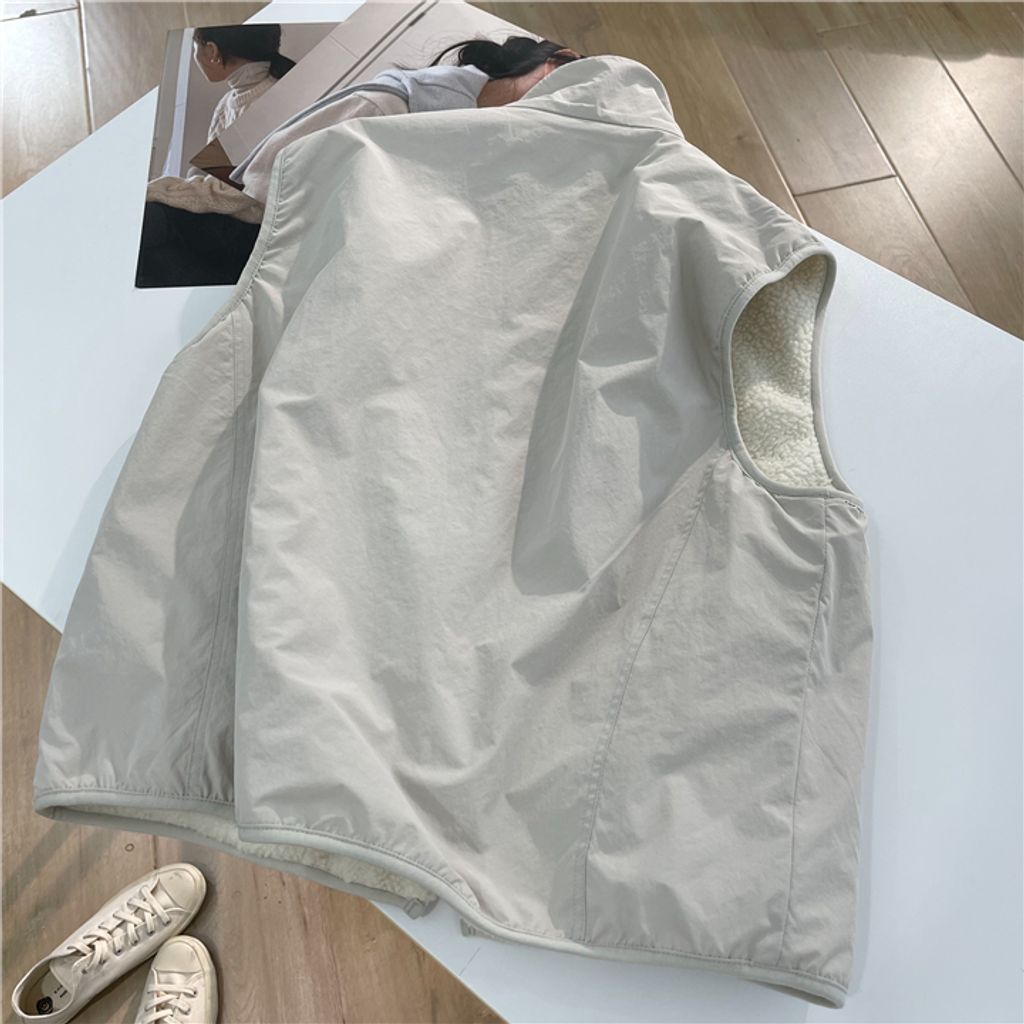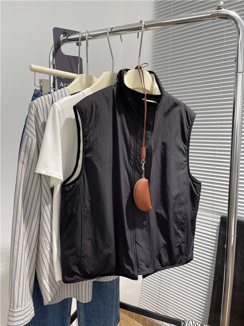 韓系復古兩面穿毛毛保暖背心*黑灰白*【S1105-31】