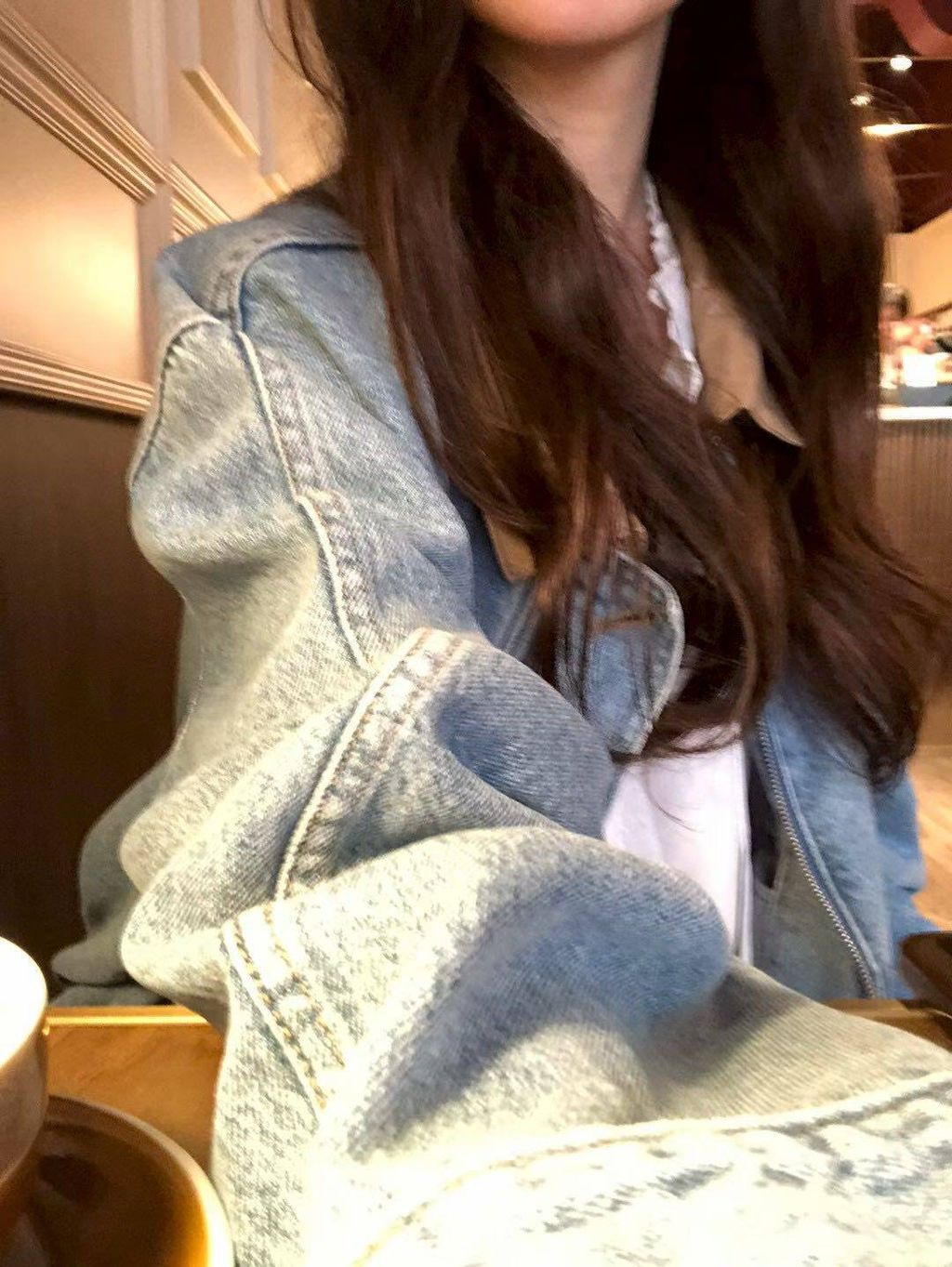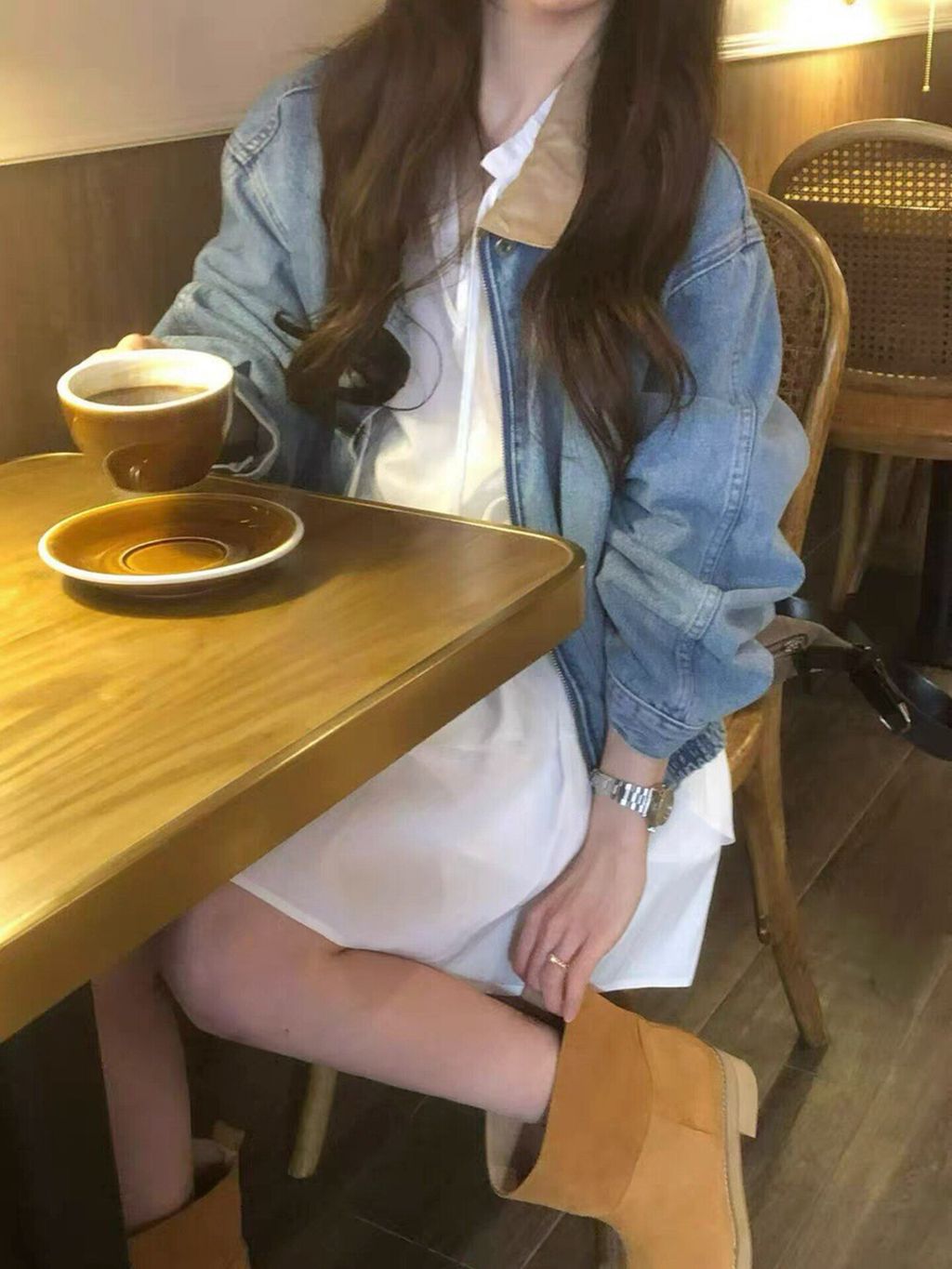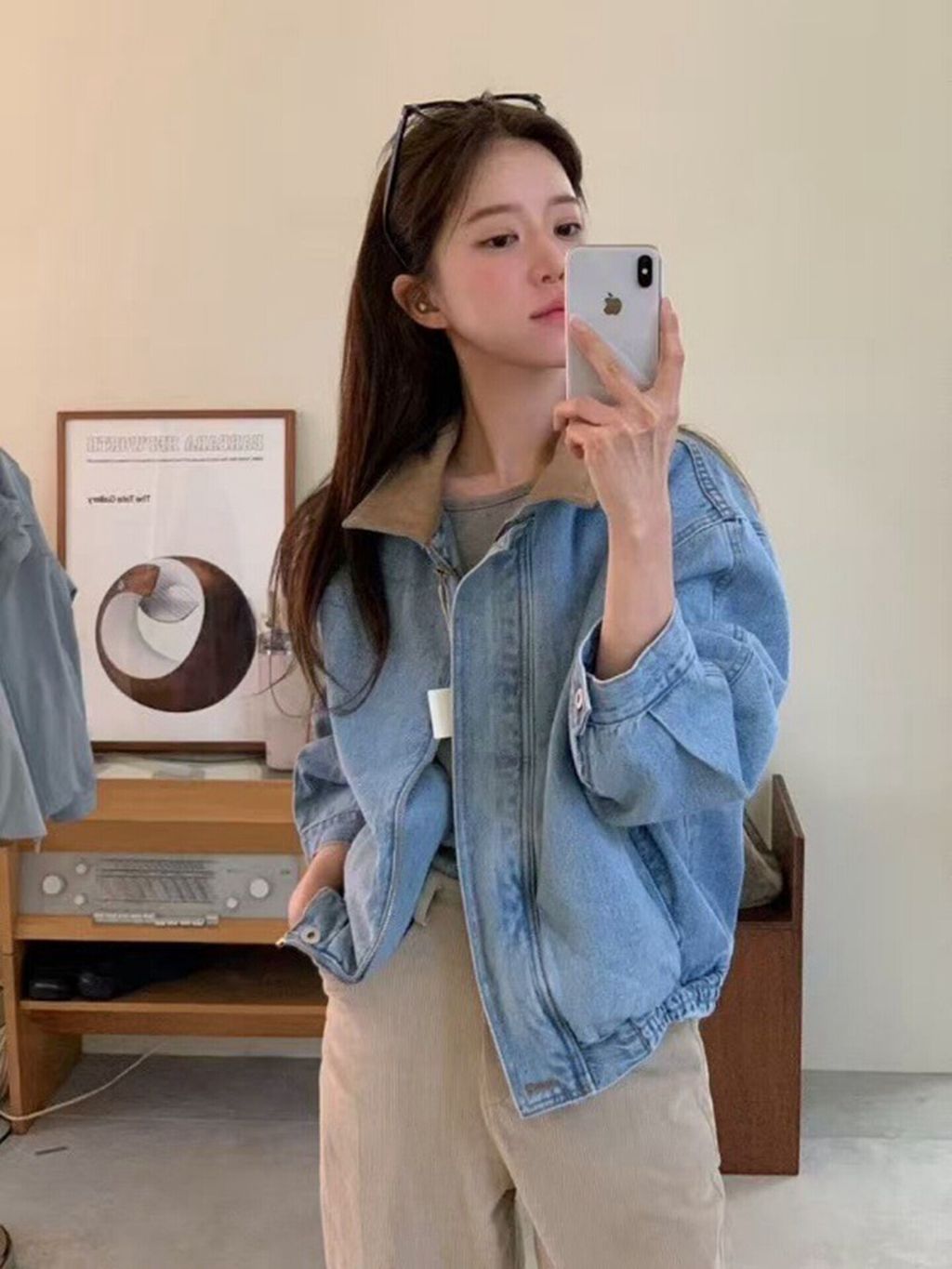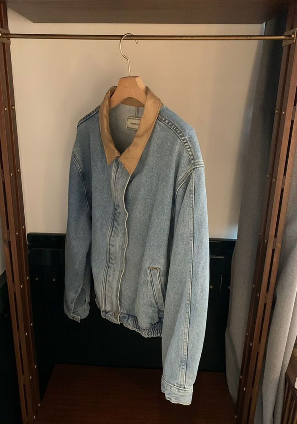 韓 復古率性拼接領復古牛仔外套*淺藍*【S0323-05】