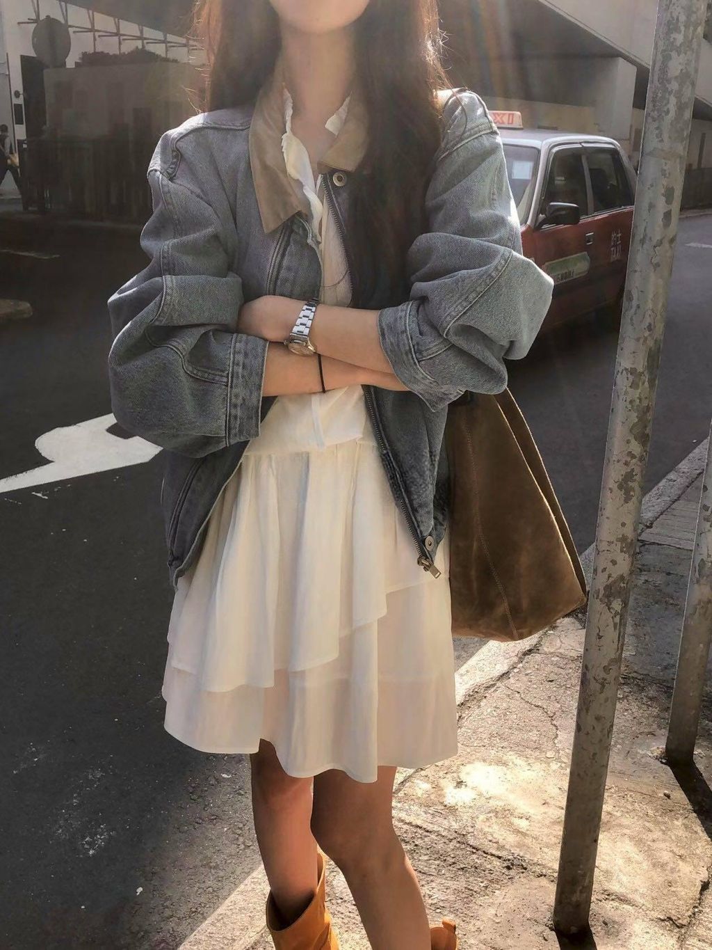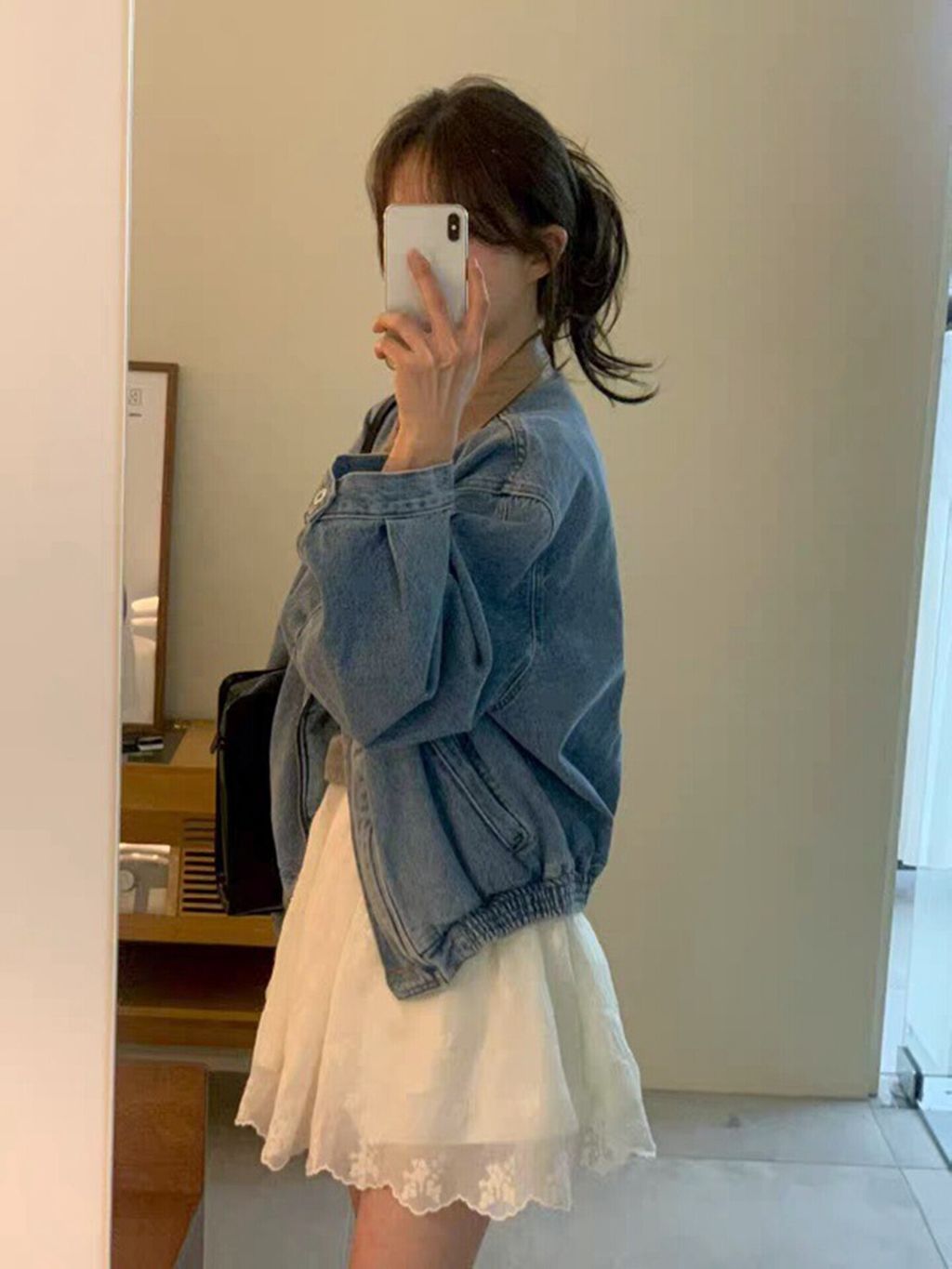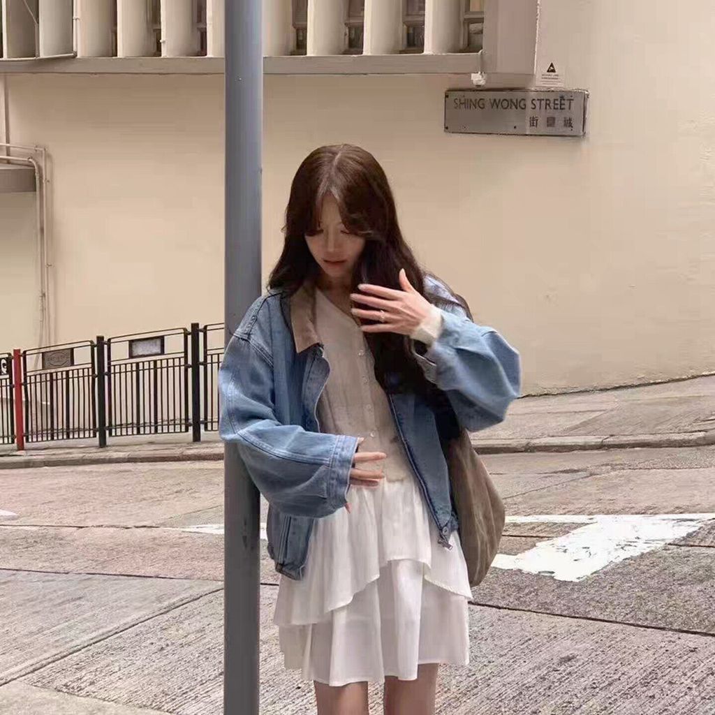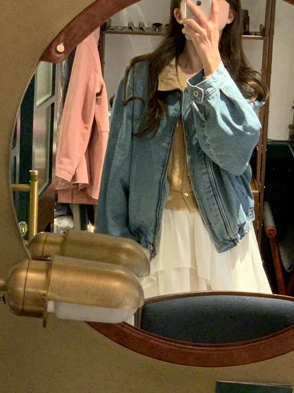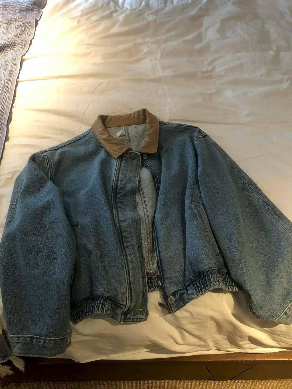 韓 復古率性拼接領復古牛仔外套*淺藍*【S0323-05】