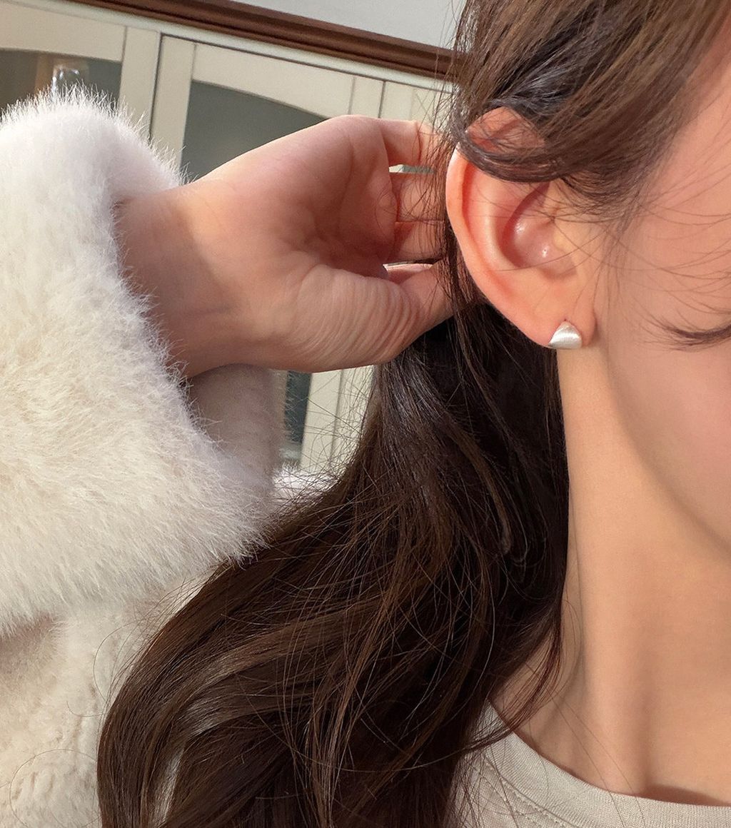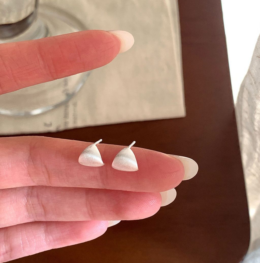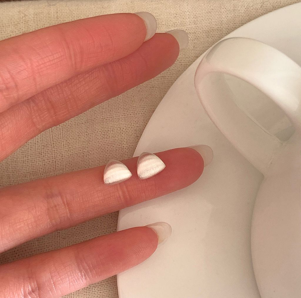 韓 簡約設計感幾何絲紋999純銀耳針*圖片色*【S0323-97】
